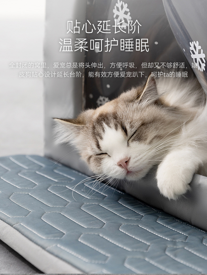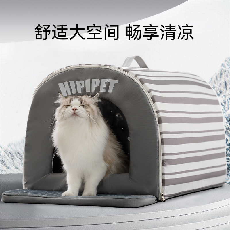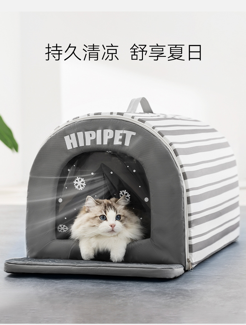 여름 시원한 줄무늬 곡선 집 개집 에어컨 아이스 하우스 고양이 개집 개와 고양이 냉각 개집 애완 동물 고양이 개집스토어 가기