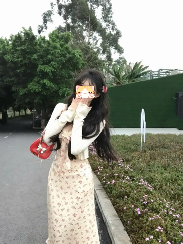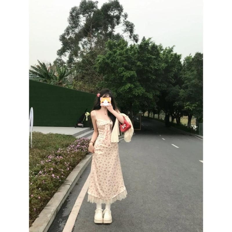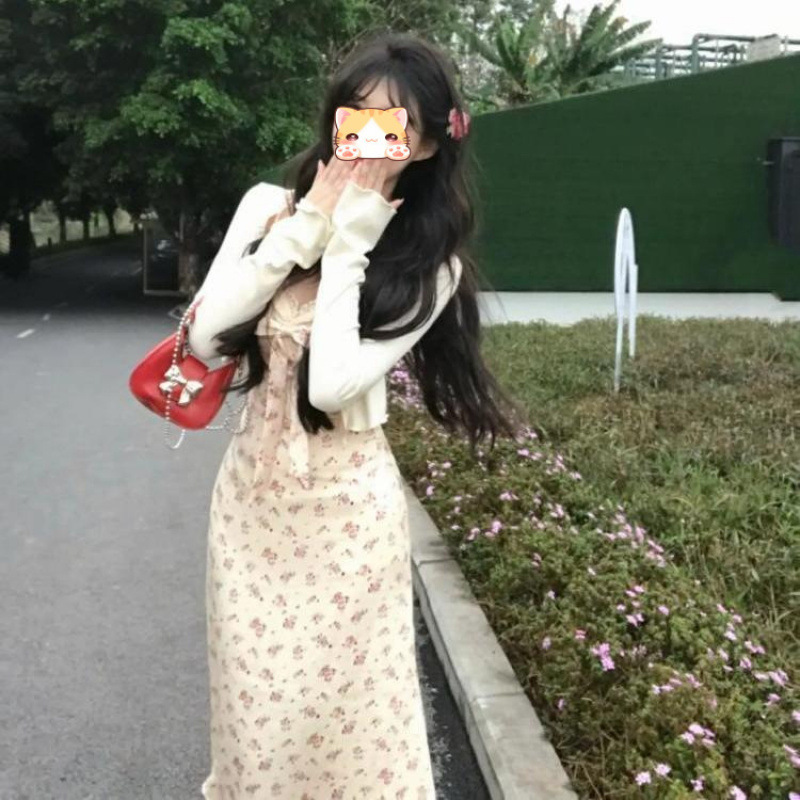 안개 꽃 바다 꽉 허리 슬리밍 달콤한 꽃 슬링 원피스 카디건 투피스 세트 여성의 봄과 여름스토어 가기