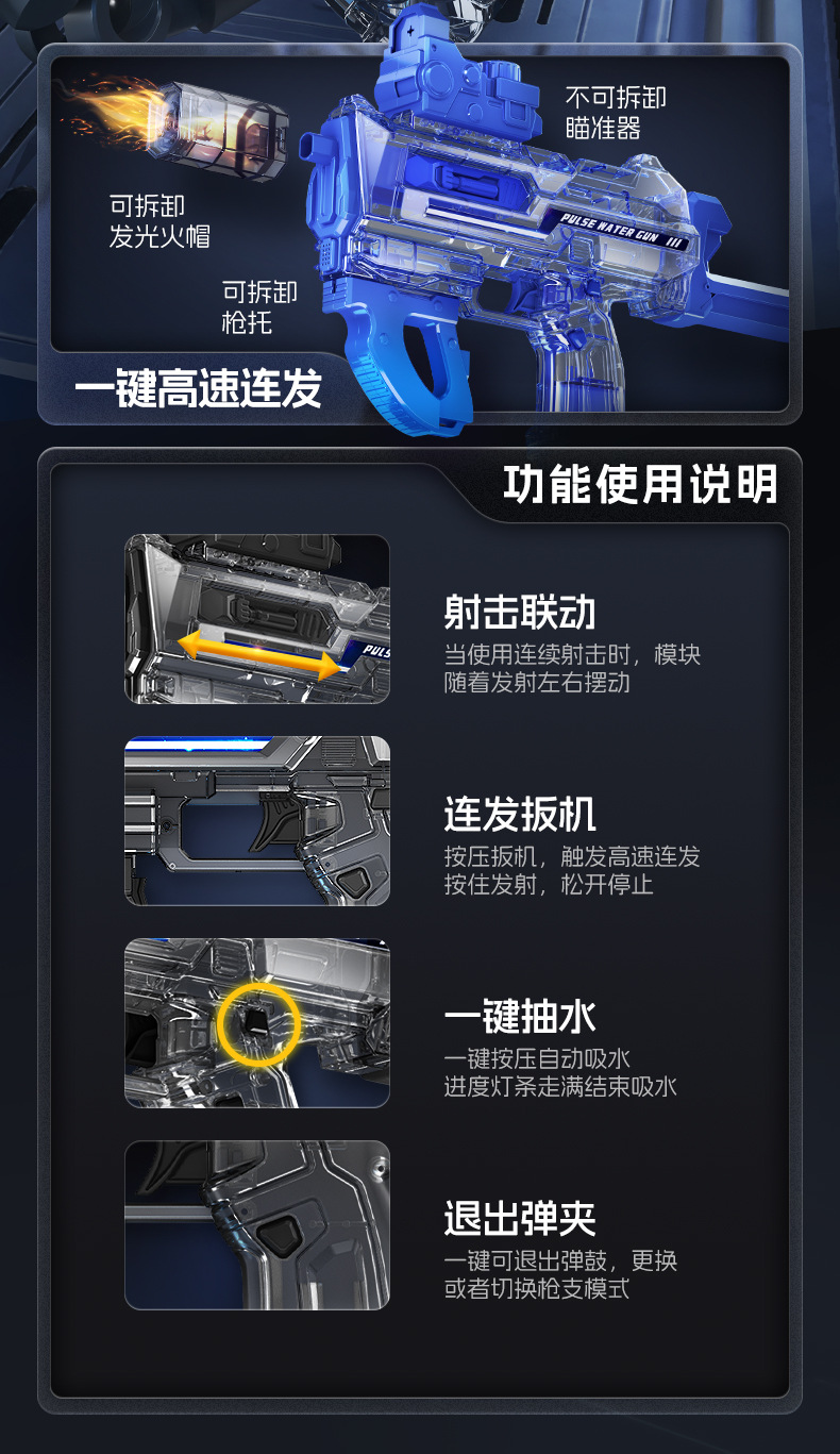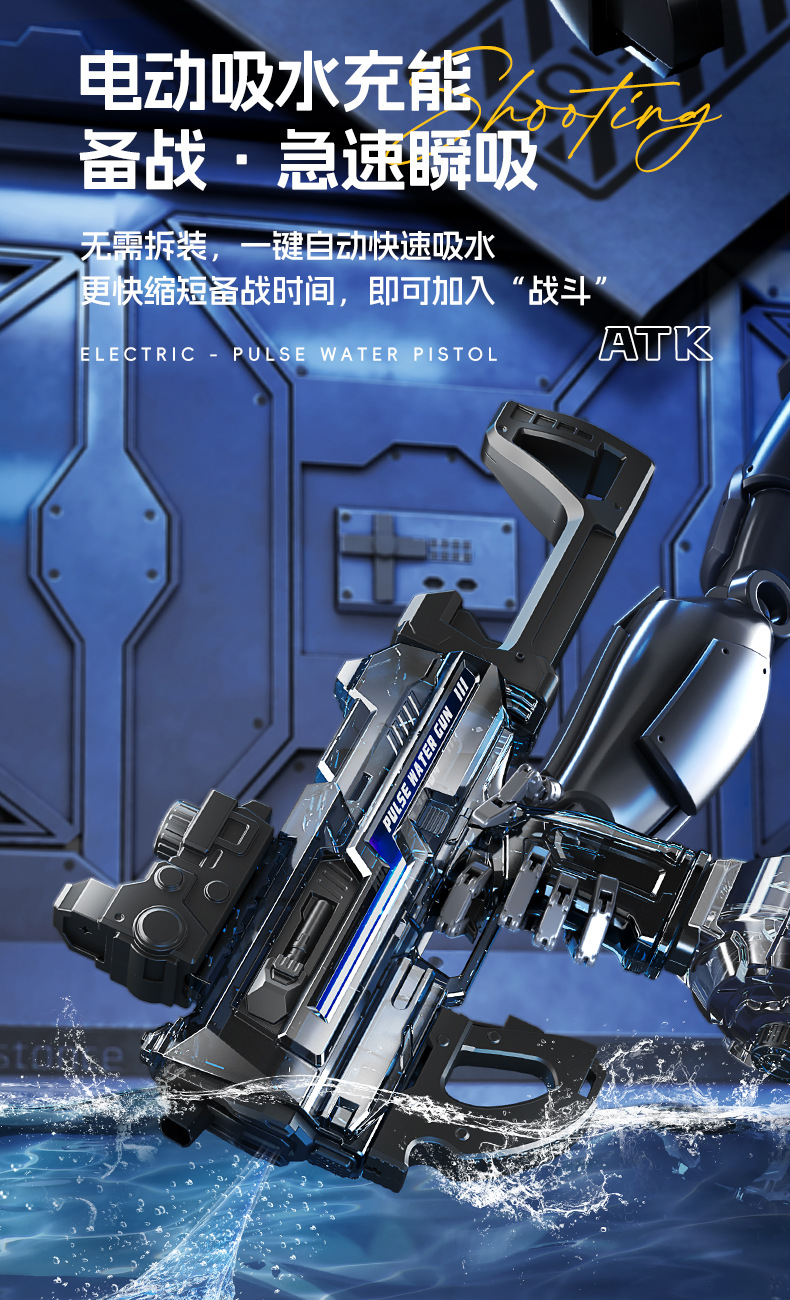 국경 간 전기 물 총 장난감 플래시 화재 대용량 자동 물 흡수 물 스플래쉬 축제 물 총 어린이 물 잡아