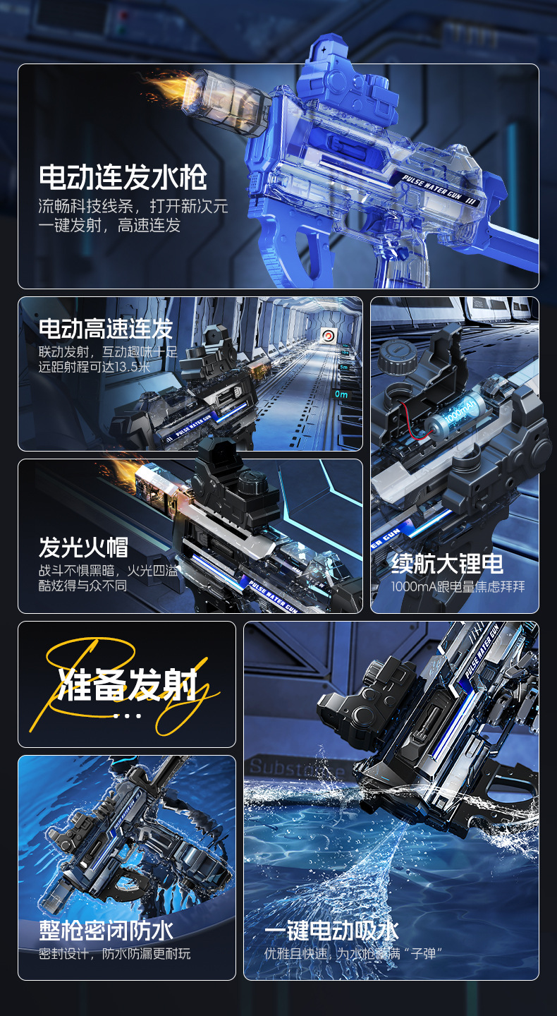 국경 간 전기 물 총 장난감 플래시 화재 대용량 자동 물 흡수 물 스플래쉬 축제 물 총 어린이 물 잡아스토어 가기