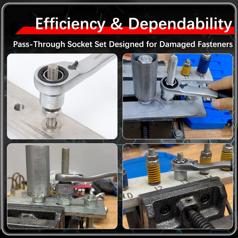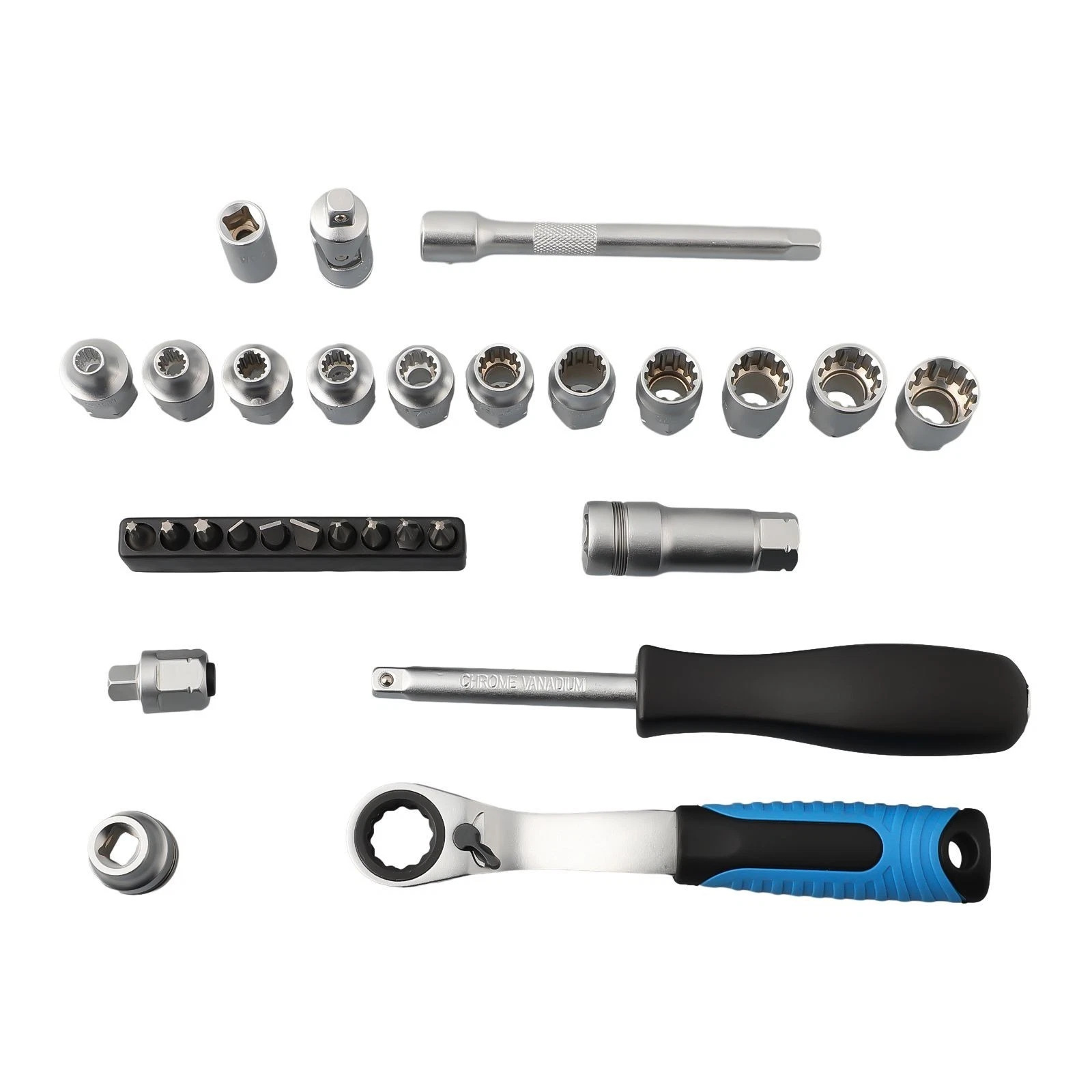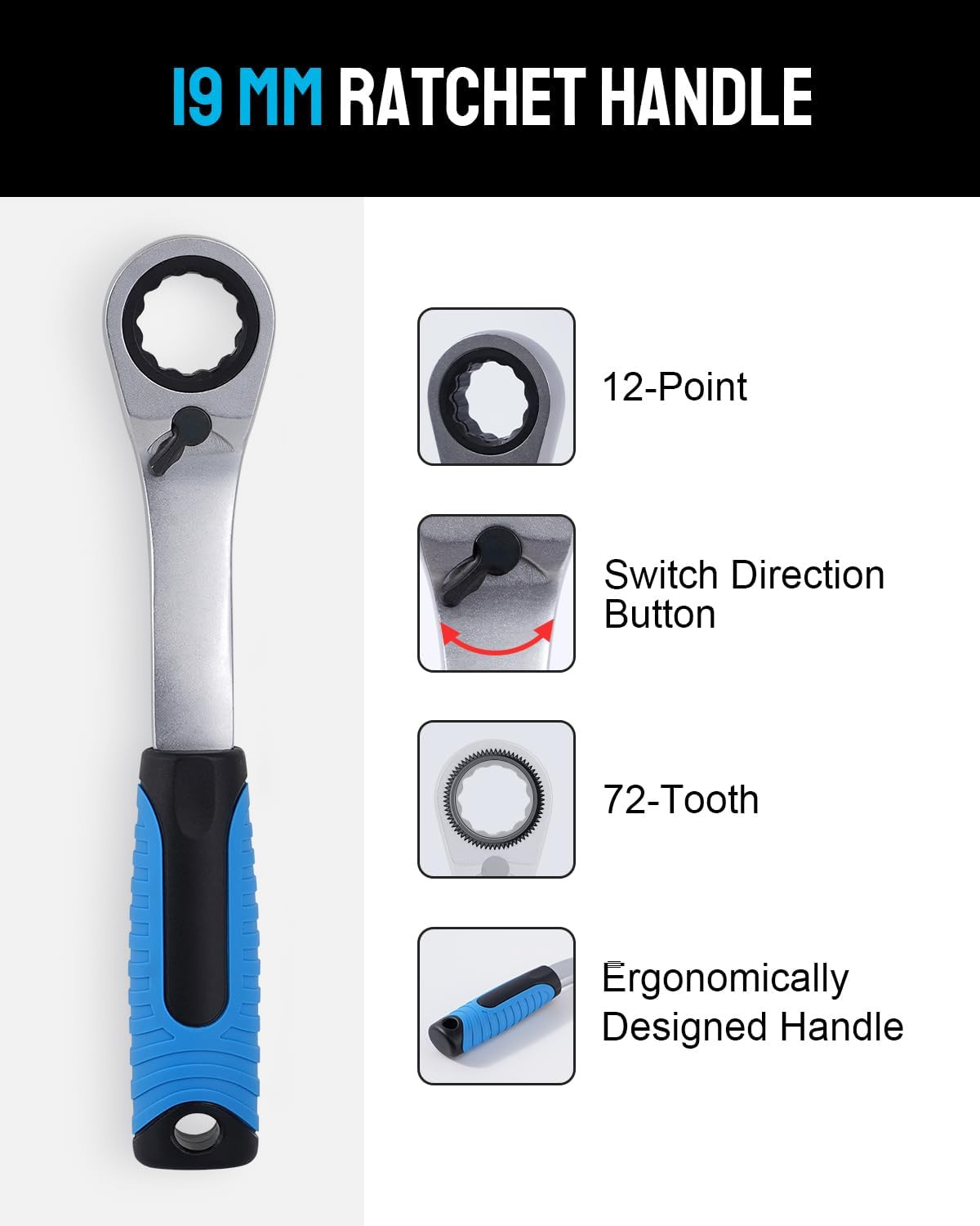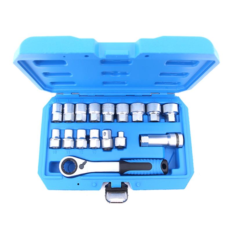 该套件由优质铬钒钢材料制成,使其能够承受极高的扭矩。该套件包括多种尺寸的各种套筒,因此您可以轻松处理任何螺钉,如六角、方形、其他类型的异形螺钉。棘轮手柄的设计旨在实现最大的舒适效率,使您可以在不同的插座之间轻松切换。