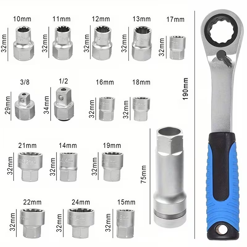 29件套棘轮套筒扳手套件是家庭维修、汽车维修和其他DIY项目的完美工具。
