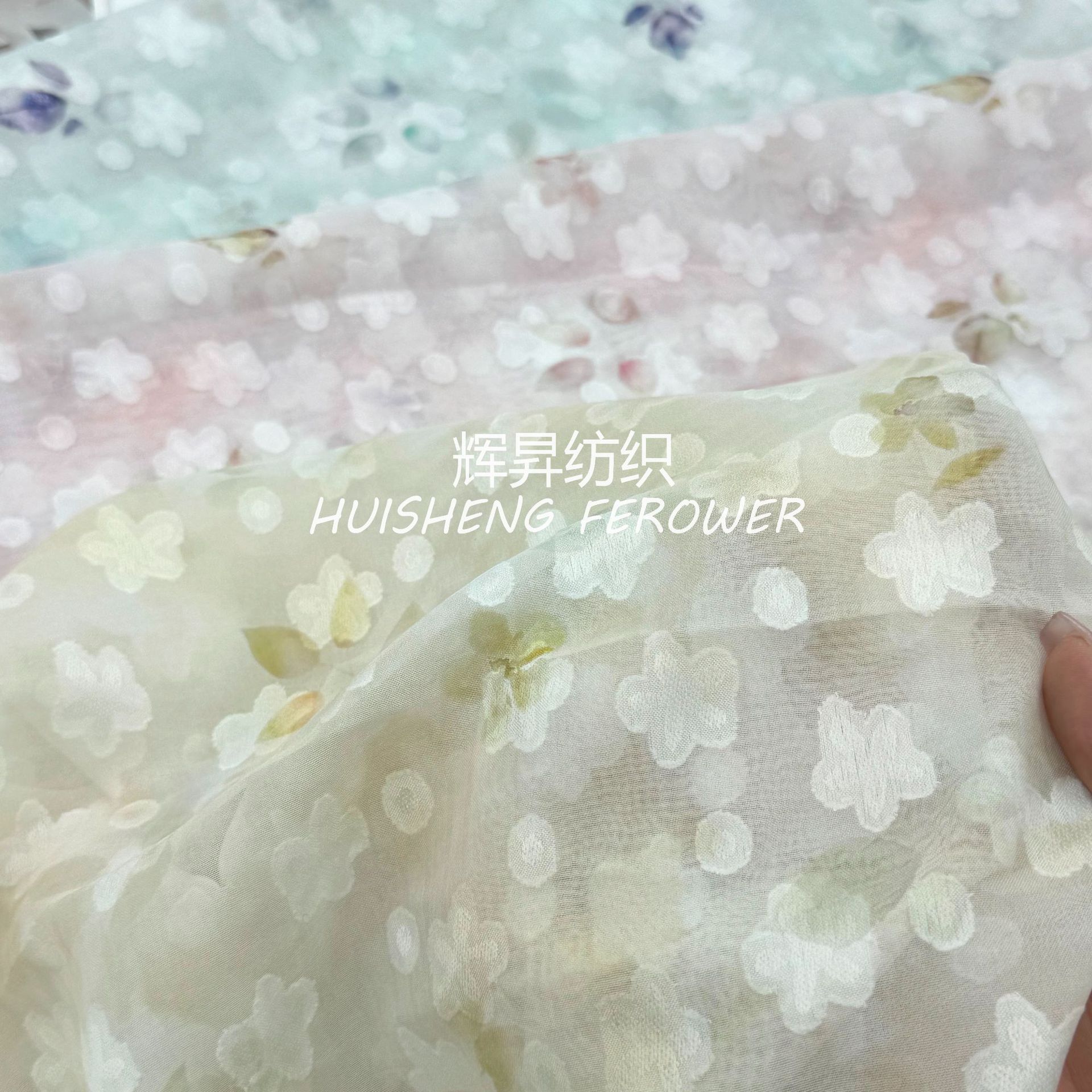 봄과 여름 새로운 컷 꽃 자카드 인쇄 신선한 예술적 새로운 스타일 부드러운 서스펜더 드레스 자카드 원단 도매