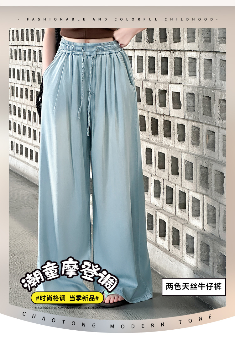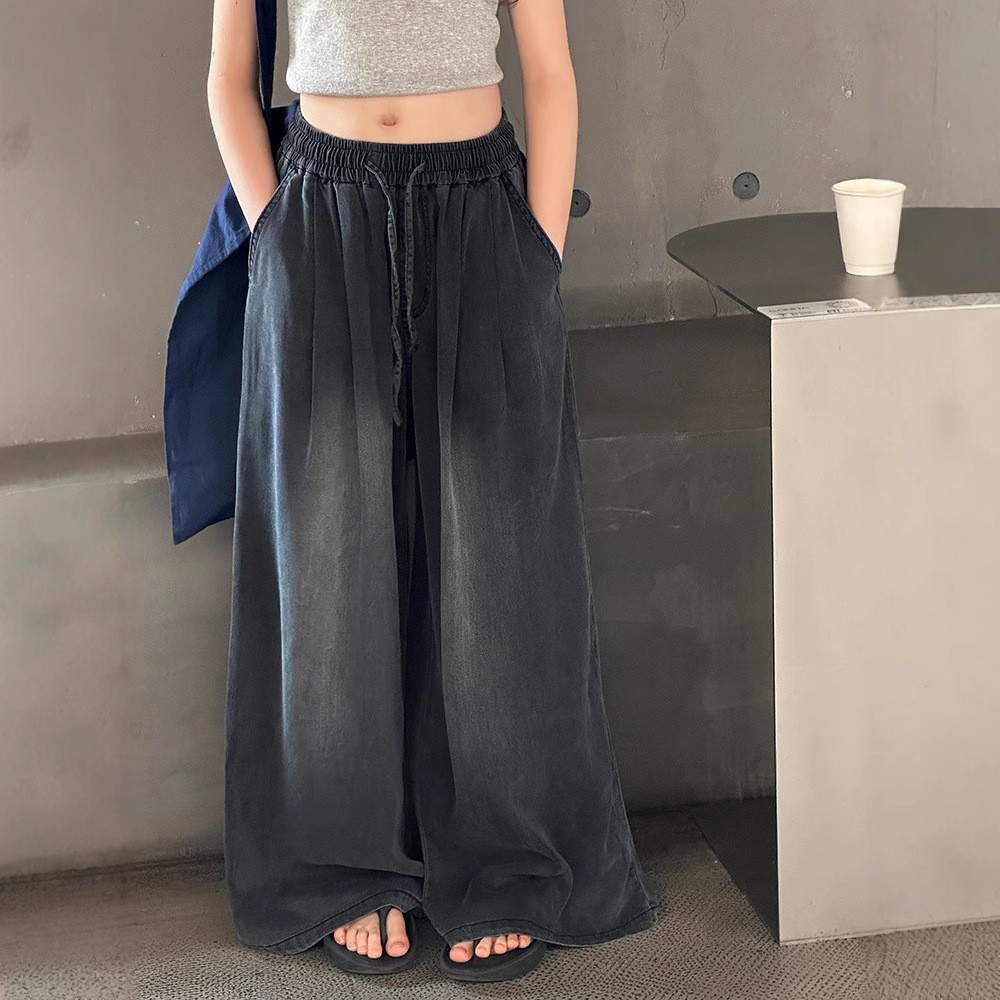 여아 텐셀 청바지 여름 2025 신작 아동 여름 얇은 루즈 와이드 팬츠 스트레이트 스타일 바지스토어 가기