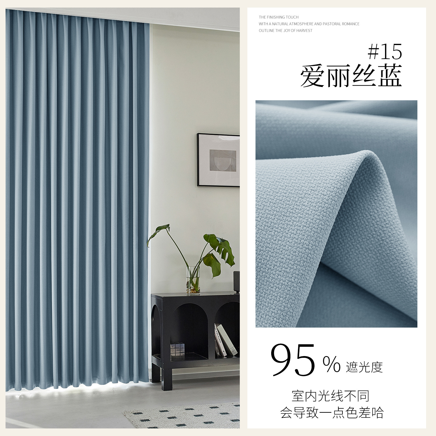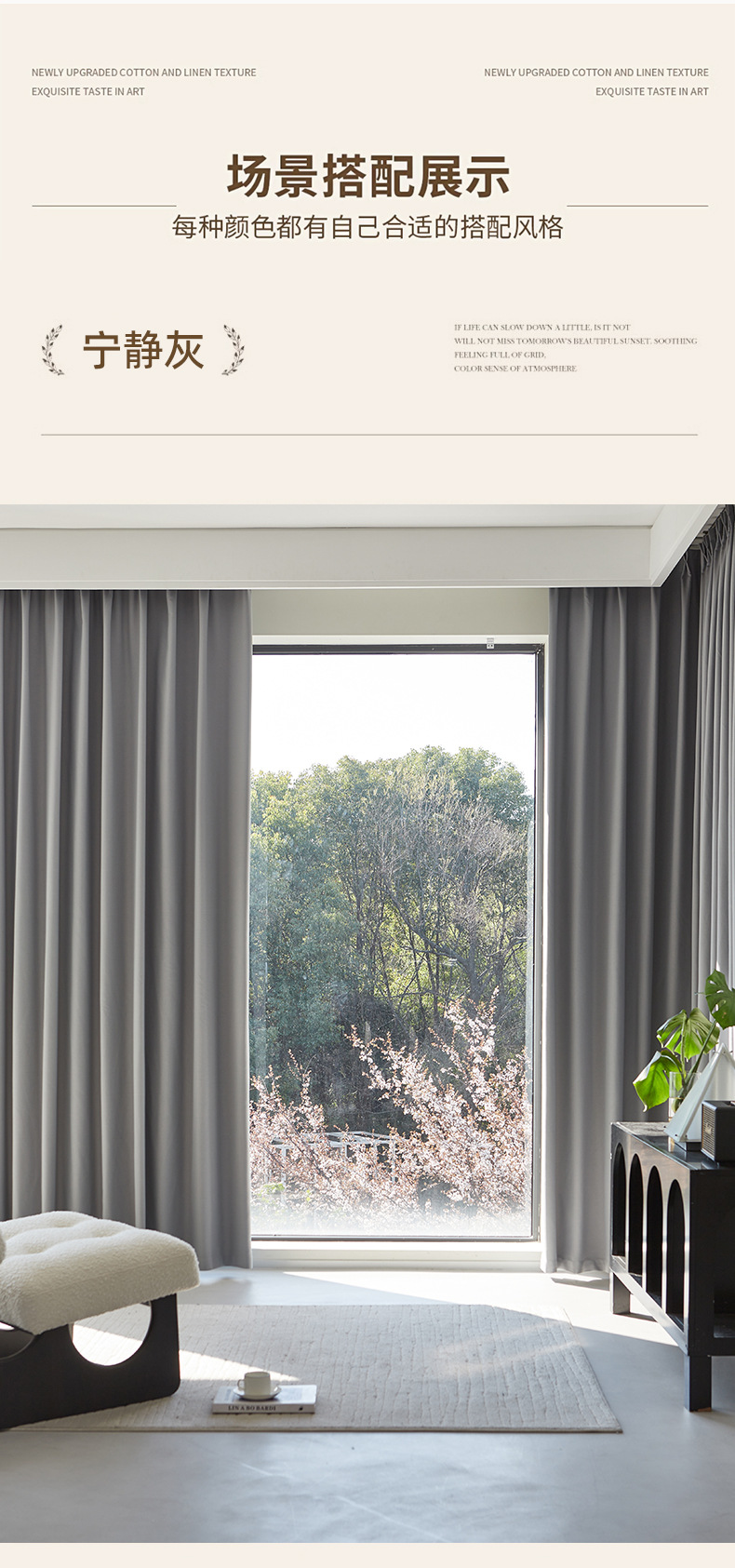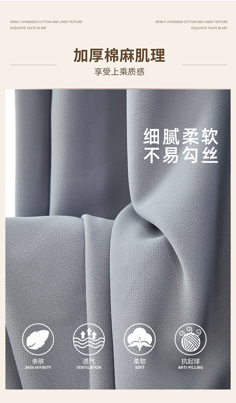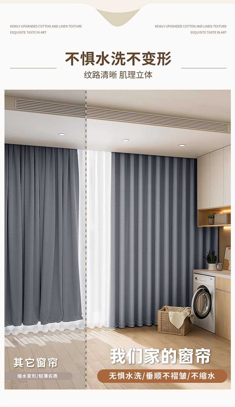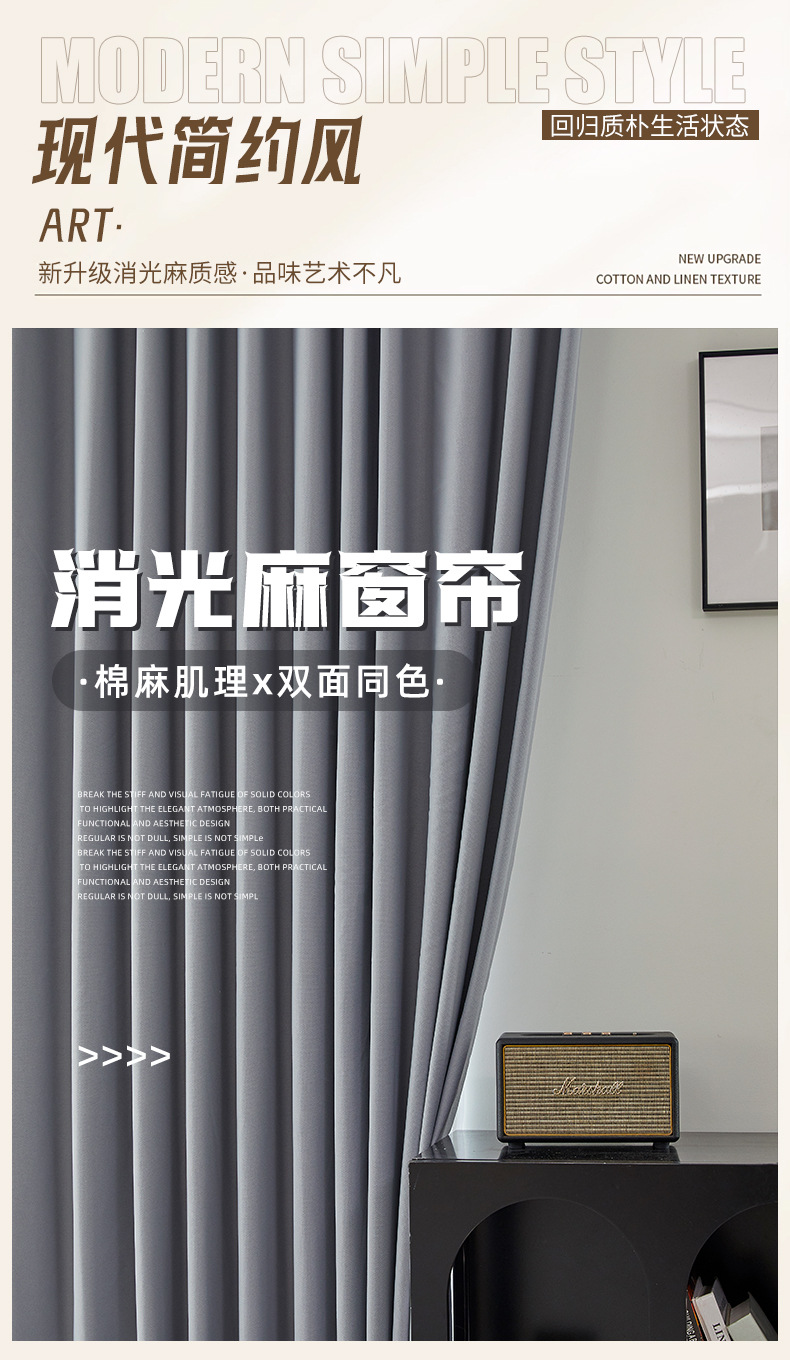 새로운 양면 모조 면 및 린넨 컬러 커튼, 높은 차광성, Shaoxing Keqiao 거실 및 침실 플로어 창 완제품 커튼스토어 가기
