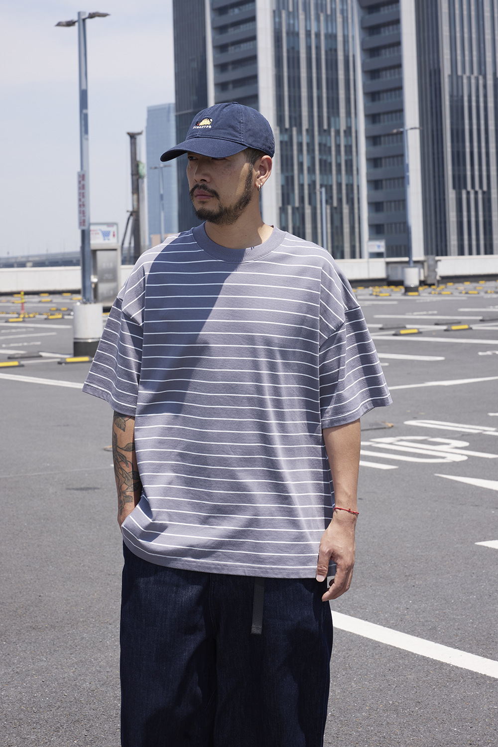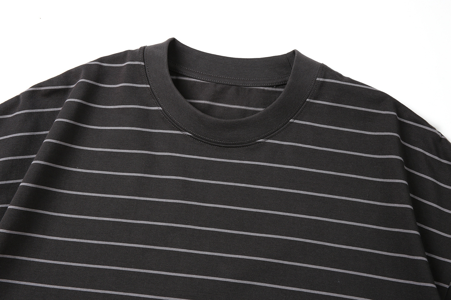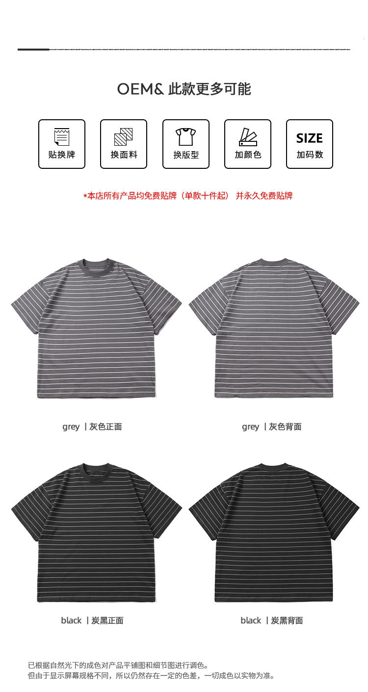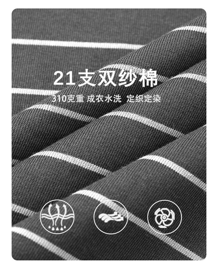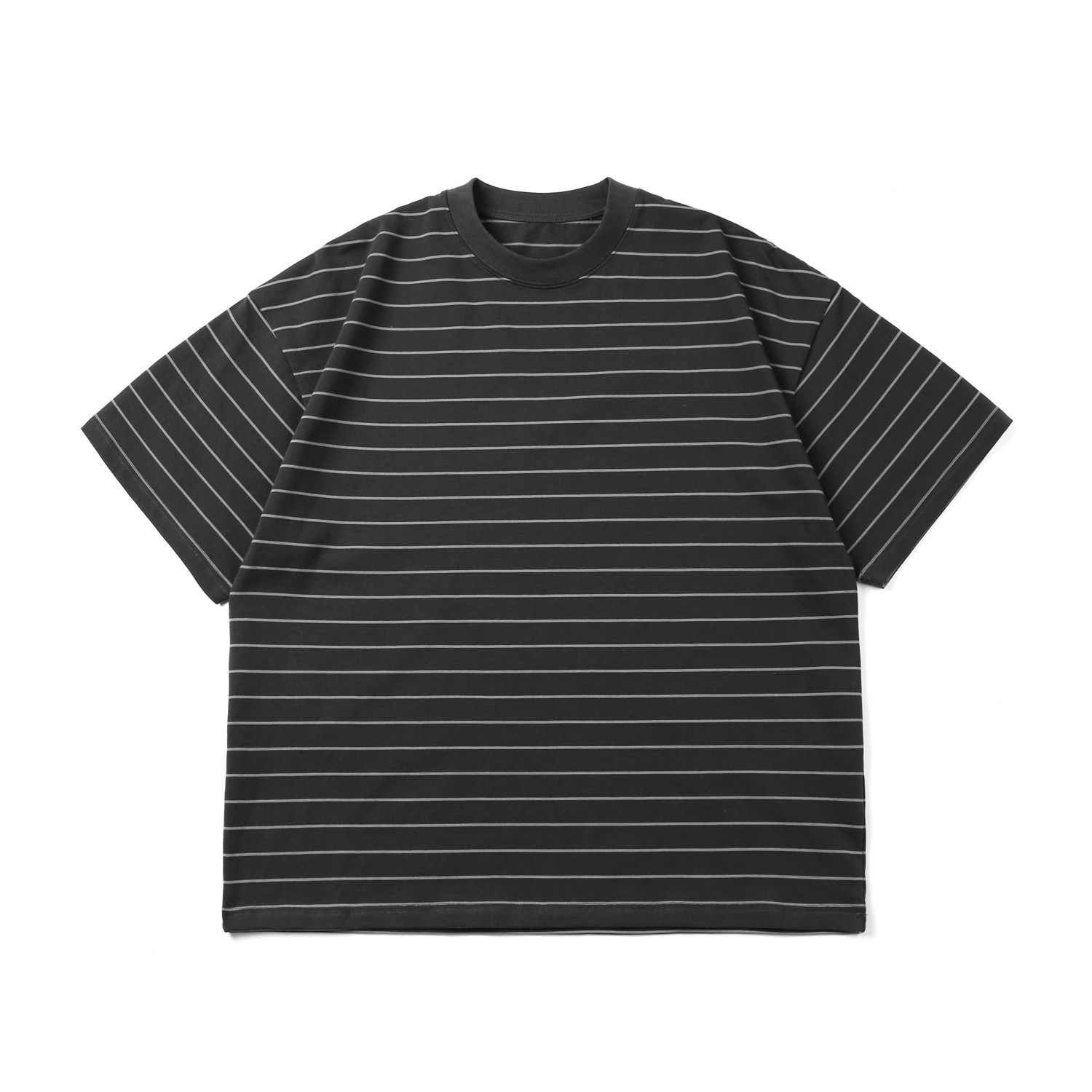 TRS 일본 패션 시리즈 | 26SS 맞춤 제작 310G 더블얀 라운드넥 스트라이프 반팔 루즈핏 드롭숄더 5부소매 티셔츠 남성용스토어 가기