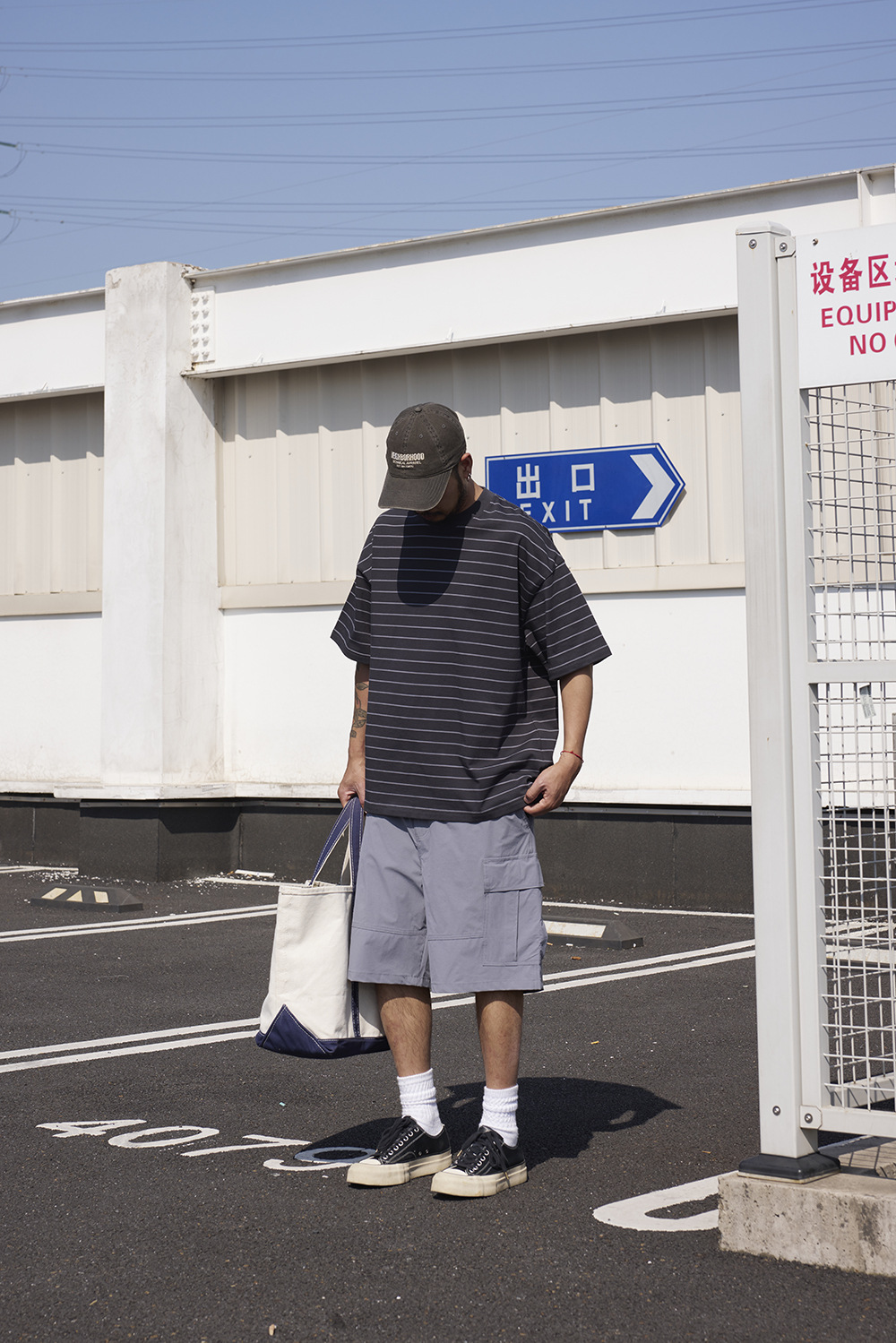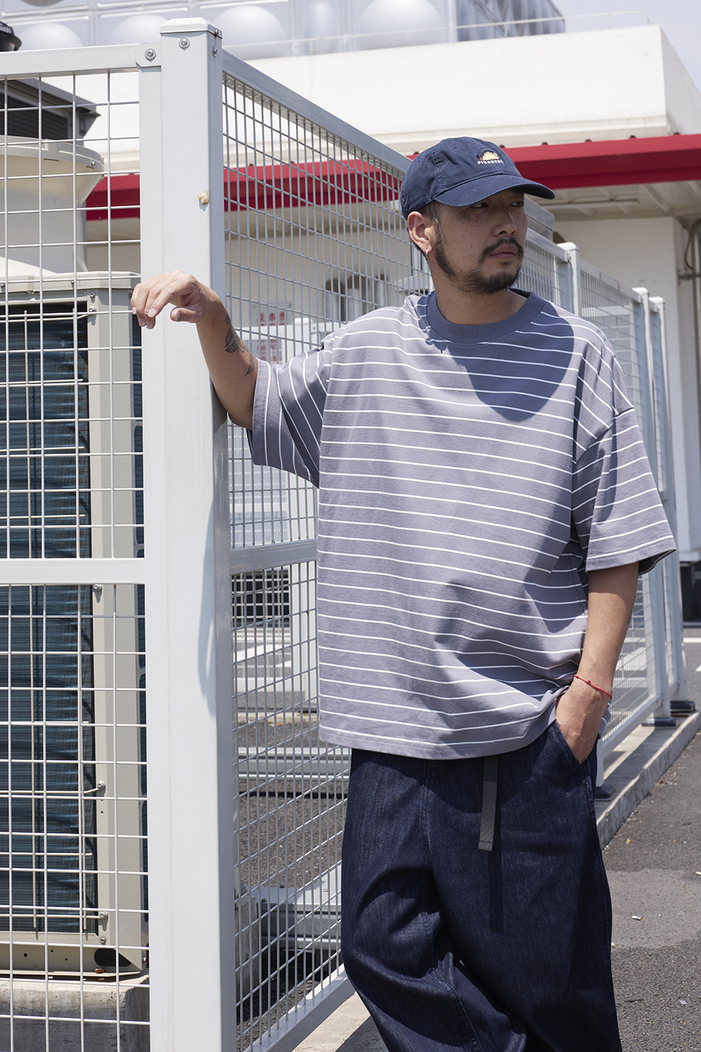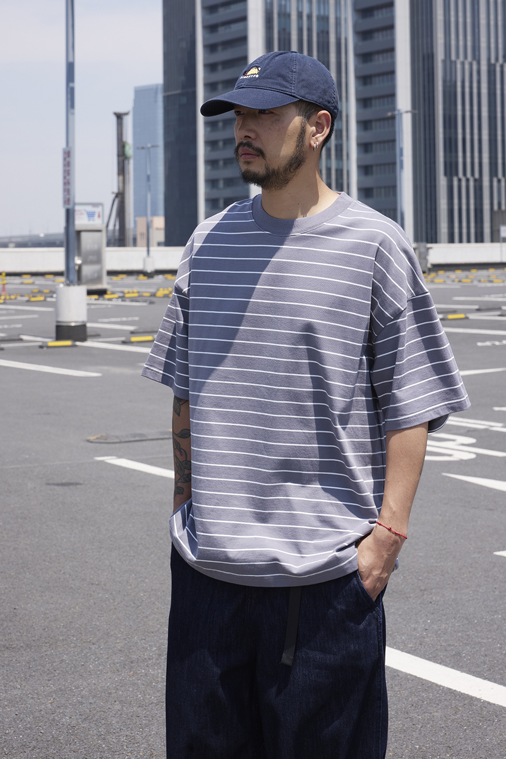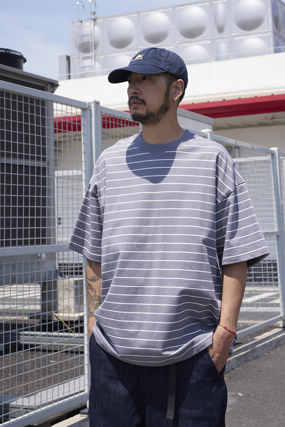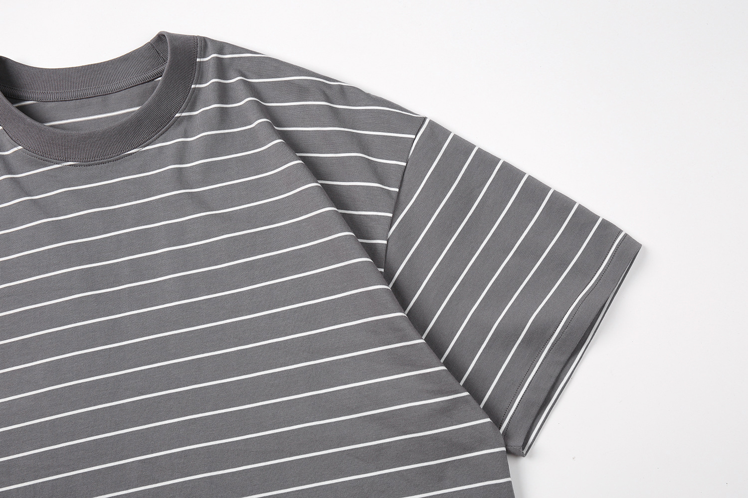 TRS 일본 패션 시리즈 | 26SS 맞춤 제작 310G 더블얀 라운드넥 스트라이프 반팔 루즈핏 드롭숄더 5부소매 티셔츠 남성용스토어 가기