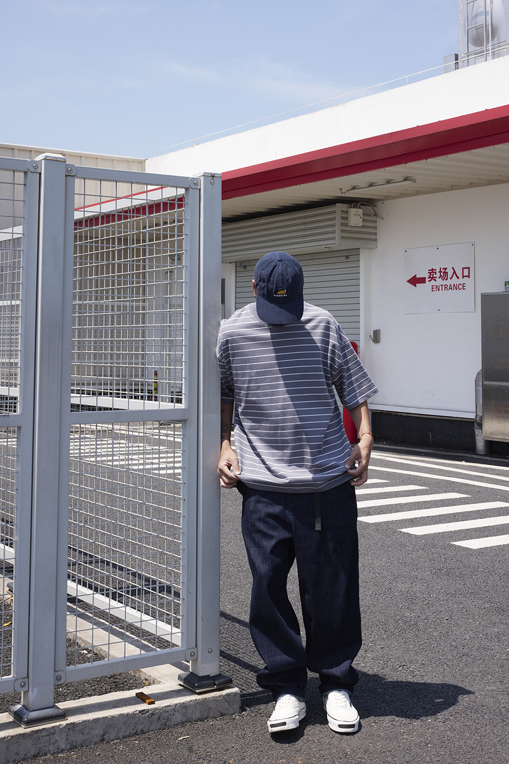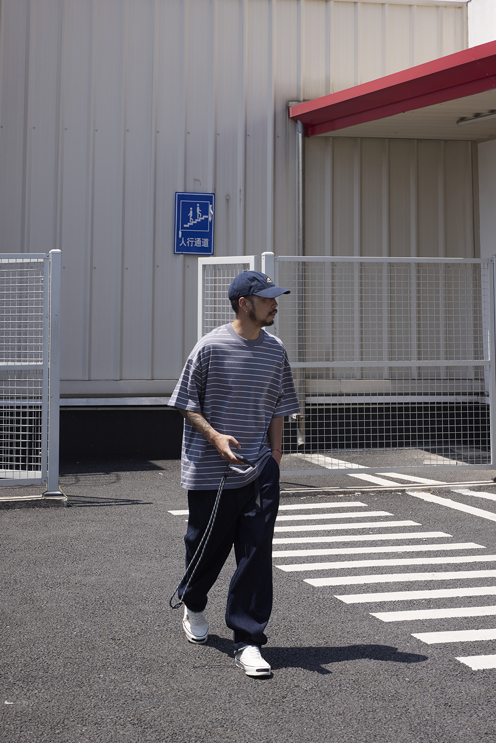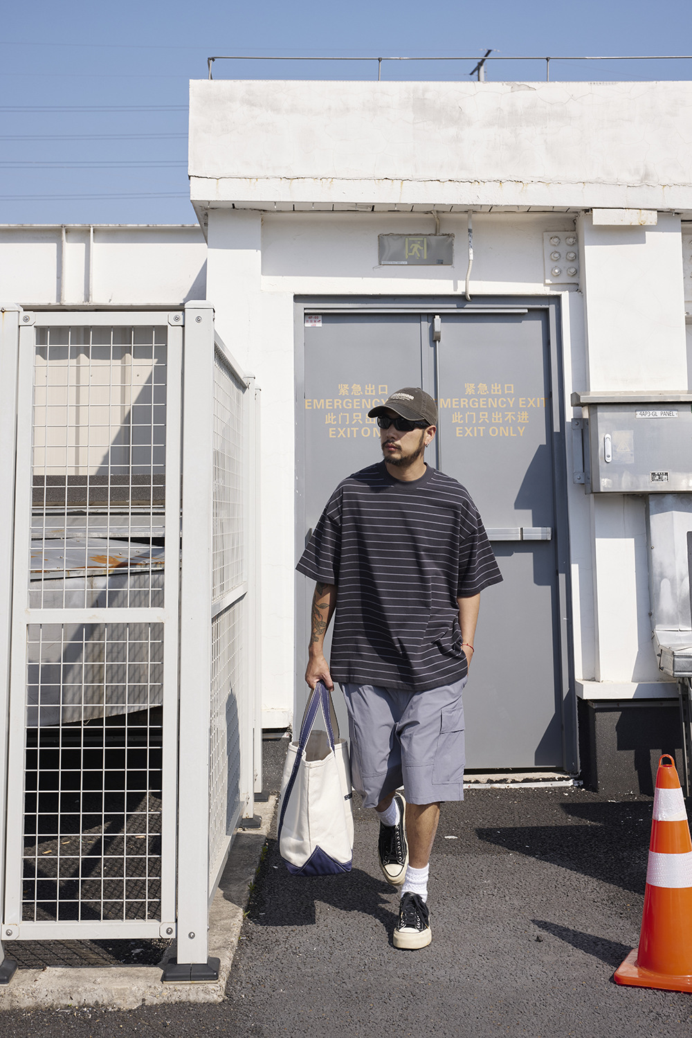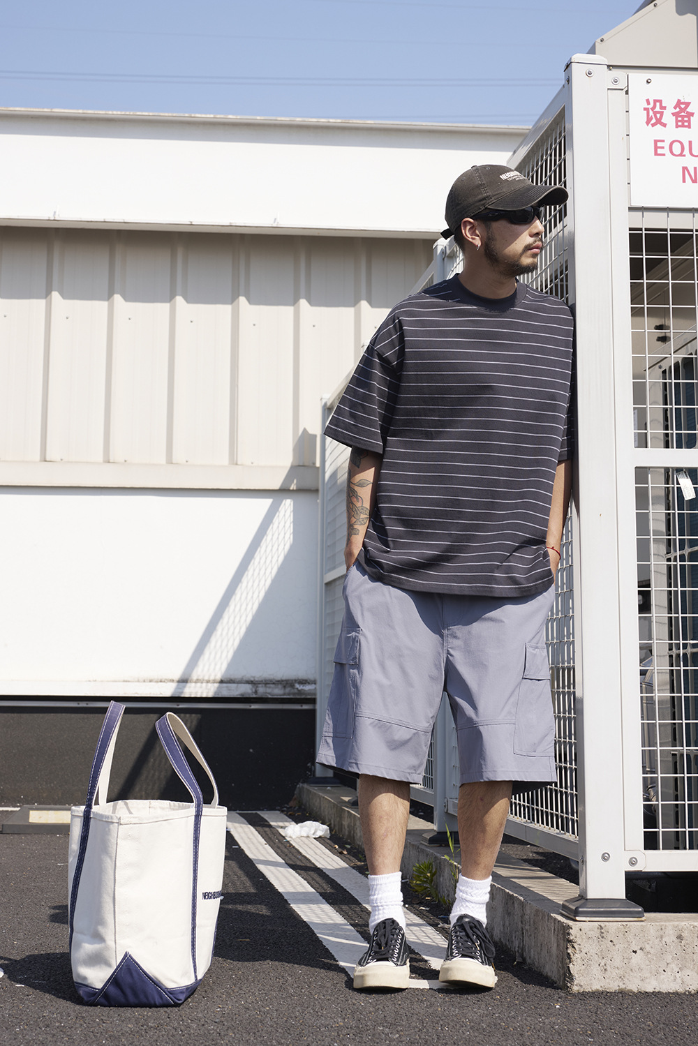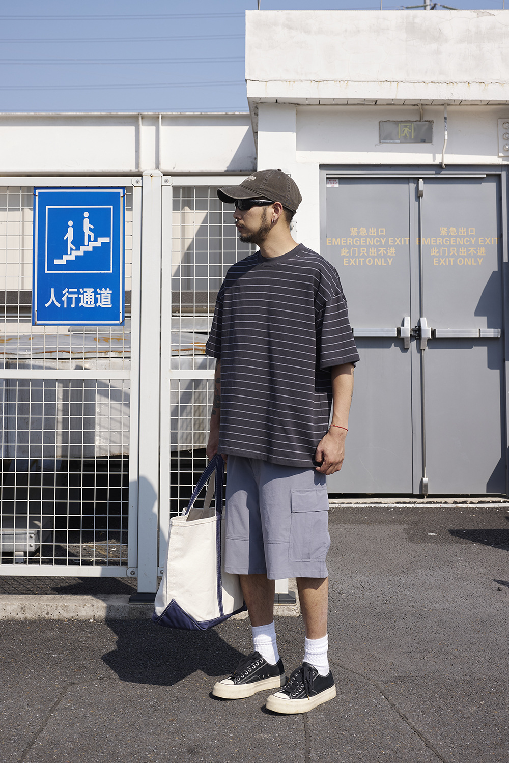 TRS 일본 패션 시리즈 | 26SS 맞춤 제작 310G 더블얀 라운드넥 스트라이프 반팔 루즈핏 드롭숄더 5부소매 티셔츠 남성용스토어 가기