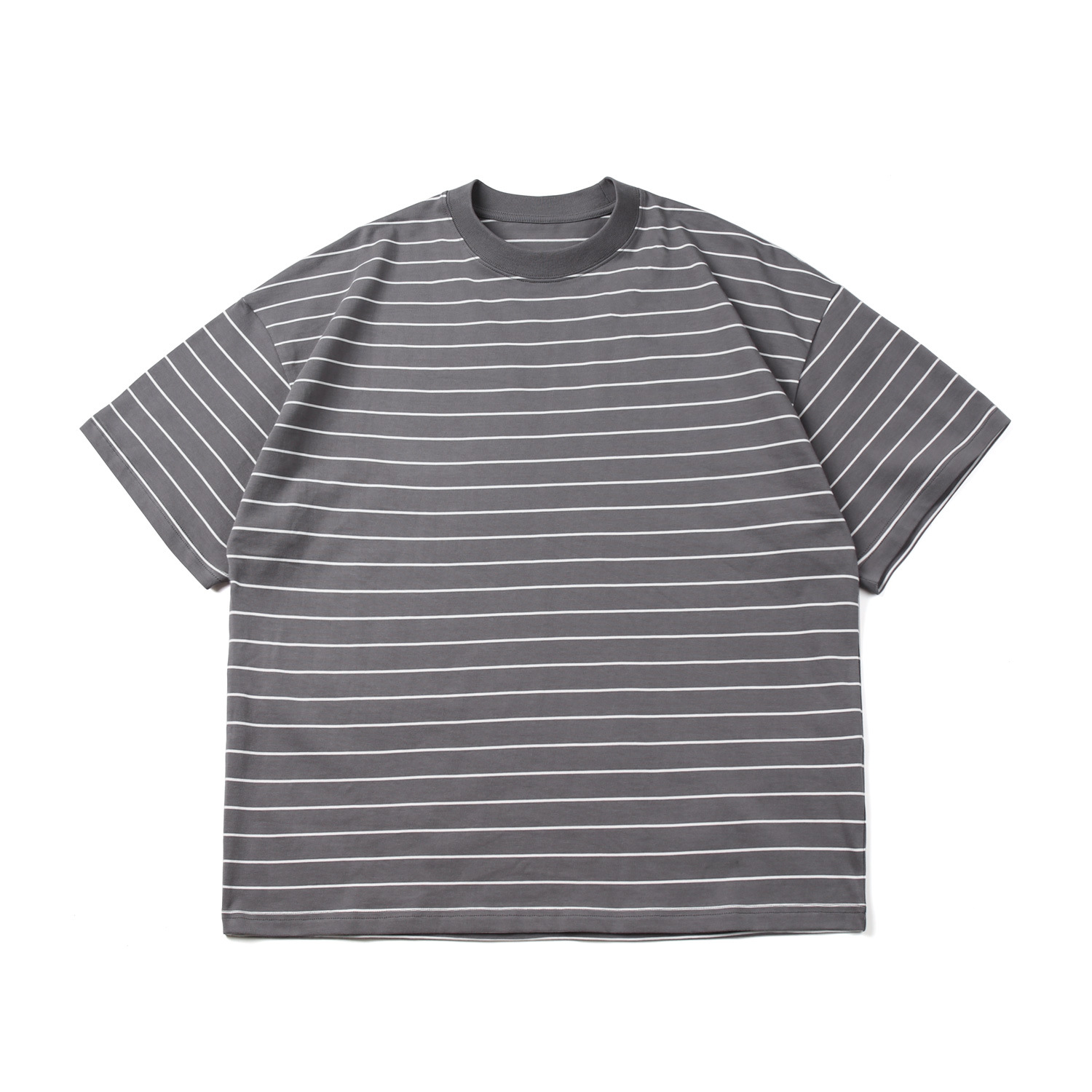 TRS 일본 패션 시리즈 | 26SS 맞춤 제작 310G 더블얀 라운드넥 스트라이프 반팔 루즈핏 드롭숄더 5부소매 티셔츠 남성용