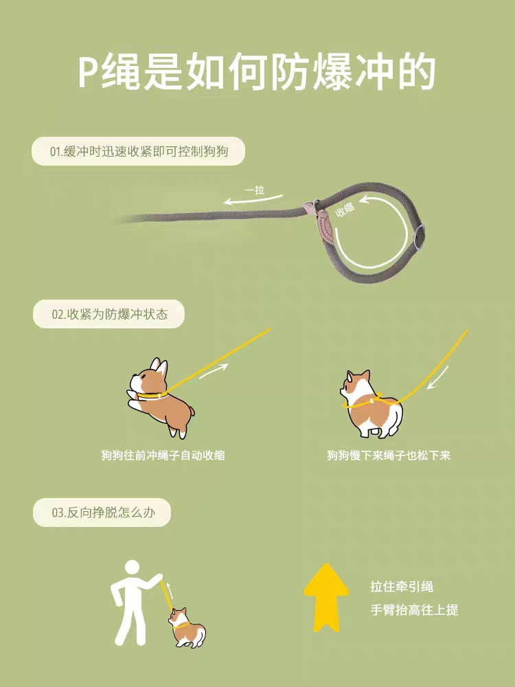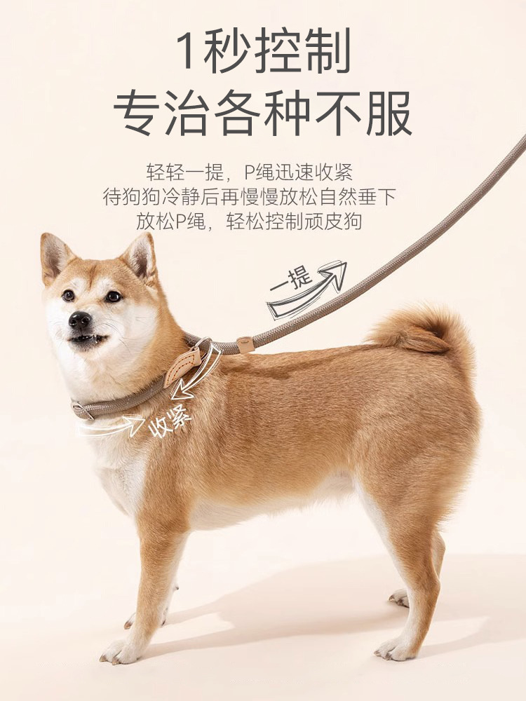 강아지 가죽끈 P로프 소형견 및 중형견용 방폭형 강아지 산책용 체인, 길고 두꺼운 가죽끈 P체인 Douyin Hot Sale스토어 가기