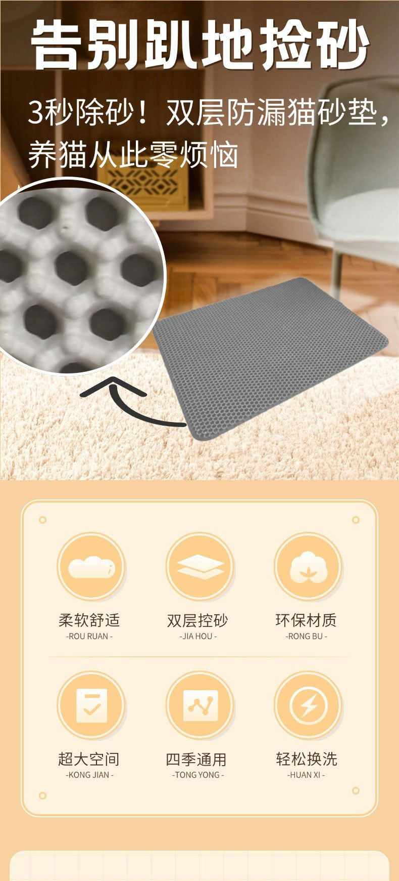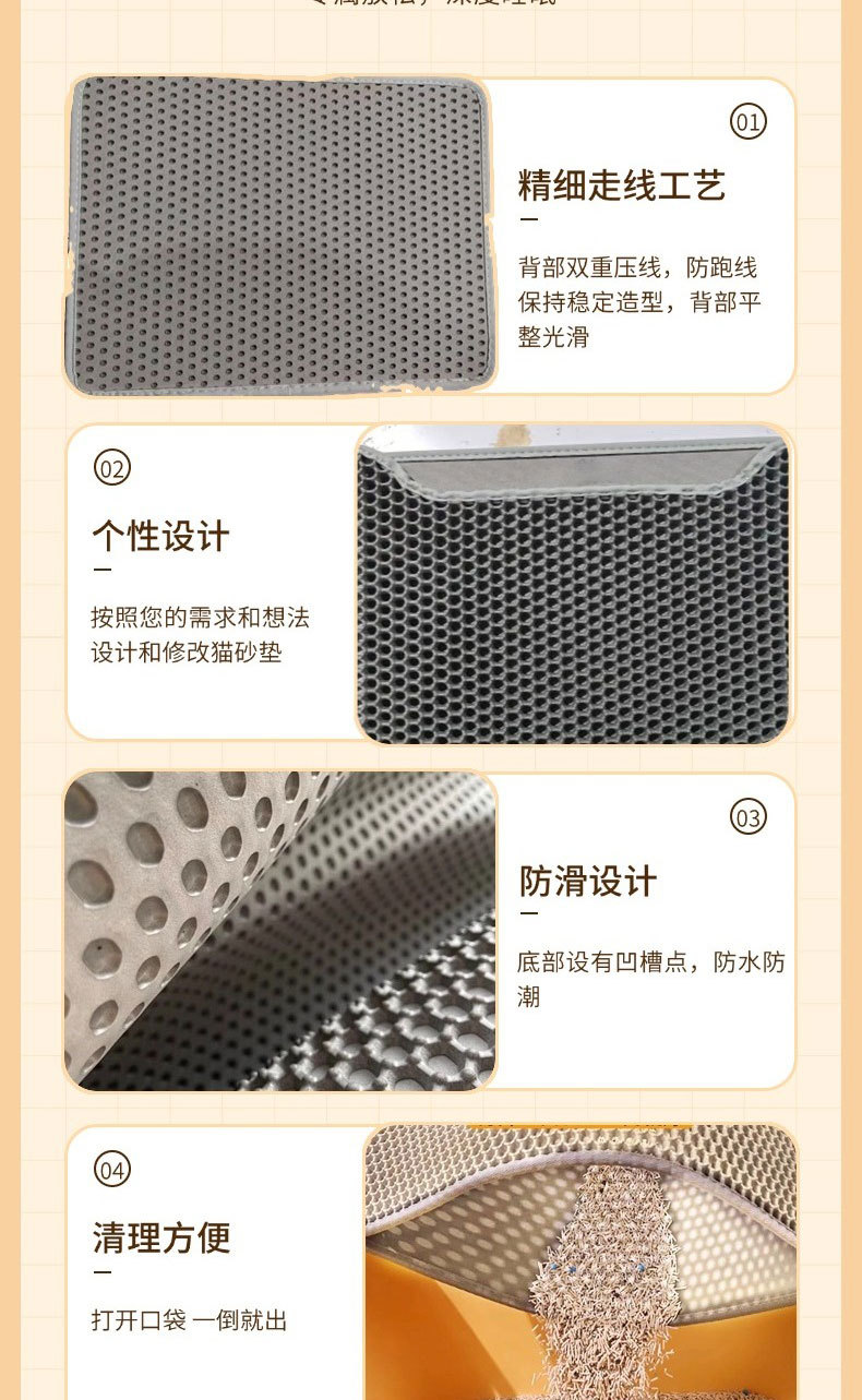 벨크로 스타일 탈부착 및 세척 가능한 EVA 이중층 고양이 모래 매트 방수 모래 제어 고양이 둥지 고양이 모래 상자 필터링 및 휴대 방지