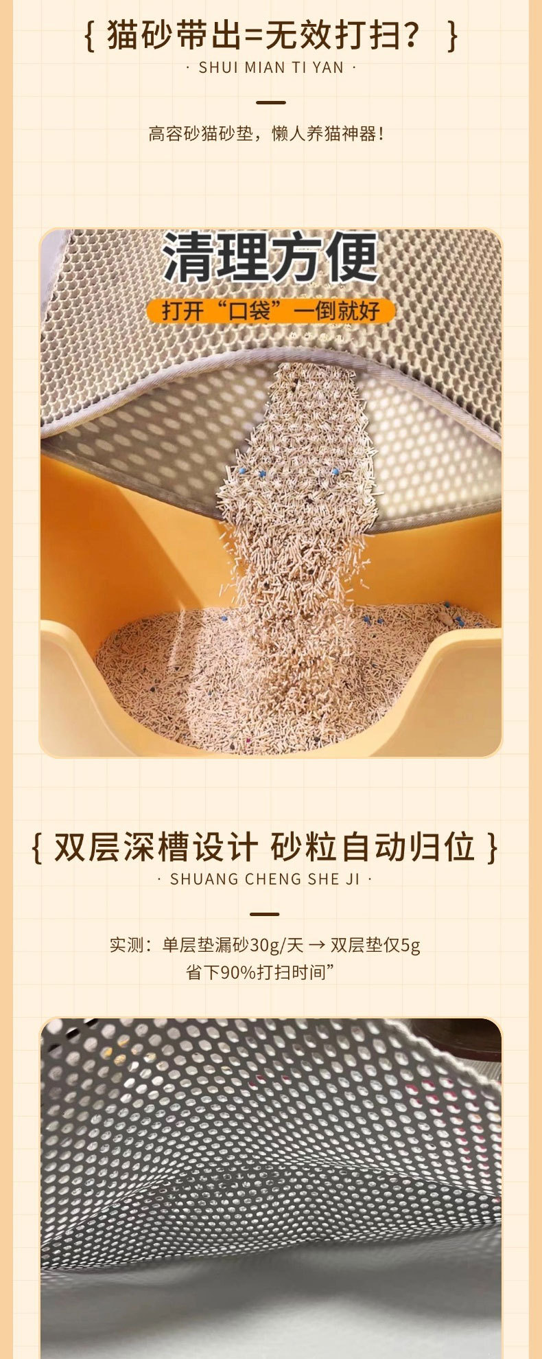 벨크로 스타일 탈부착 및 세척 가능한 EVA 이중층 고양이 모래 매트 방수 모래 제어 고양이 둥지 고양이 모래 상자 필터링 및 휴대 방지스토어 가기