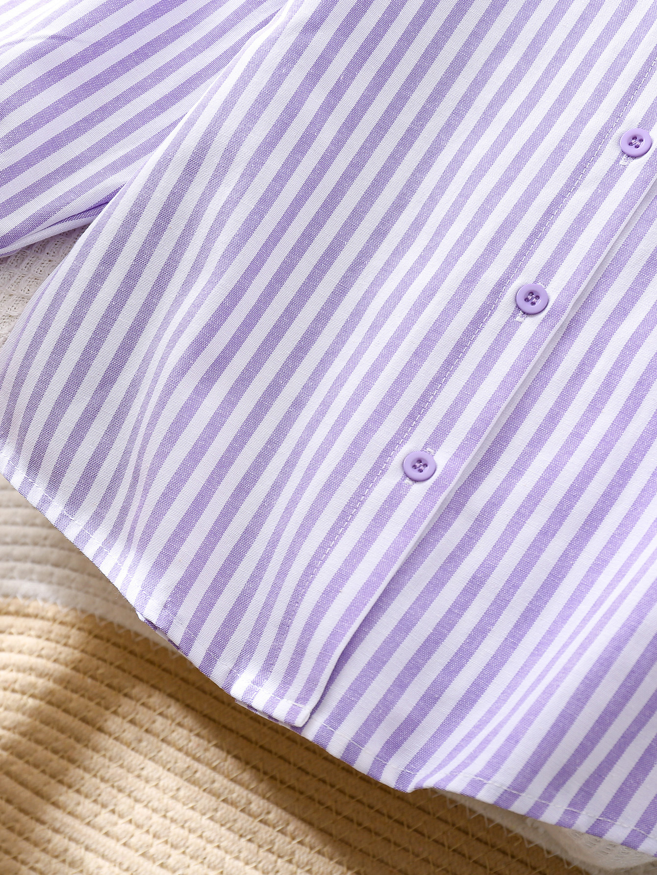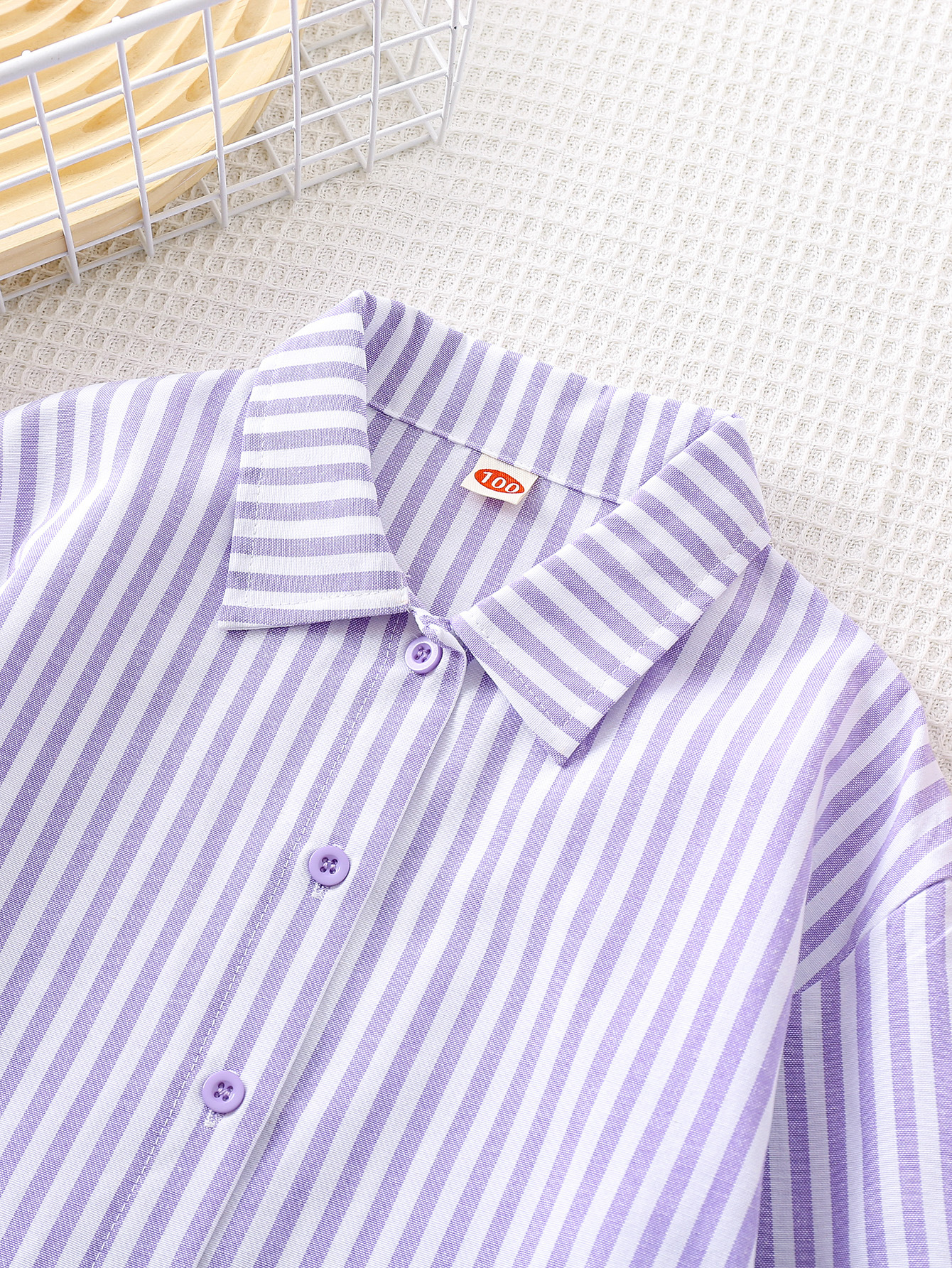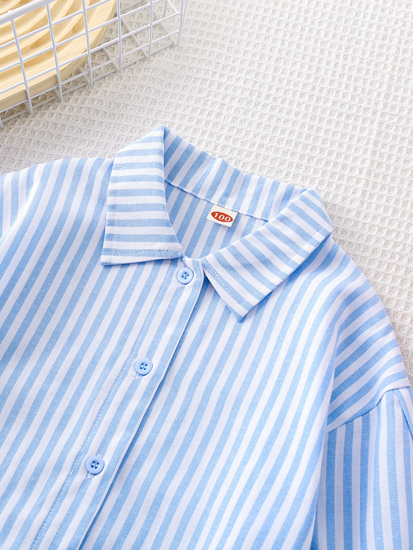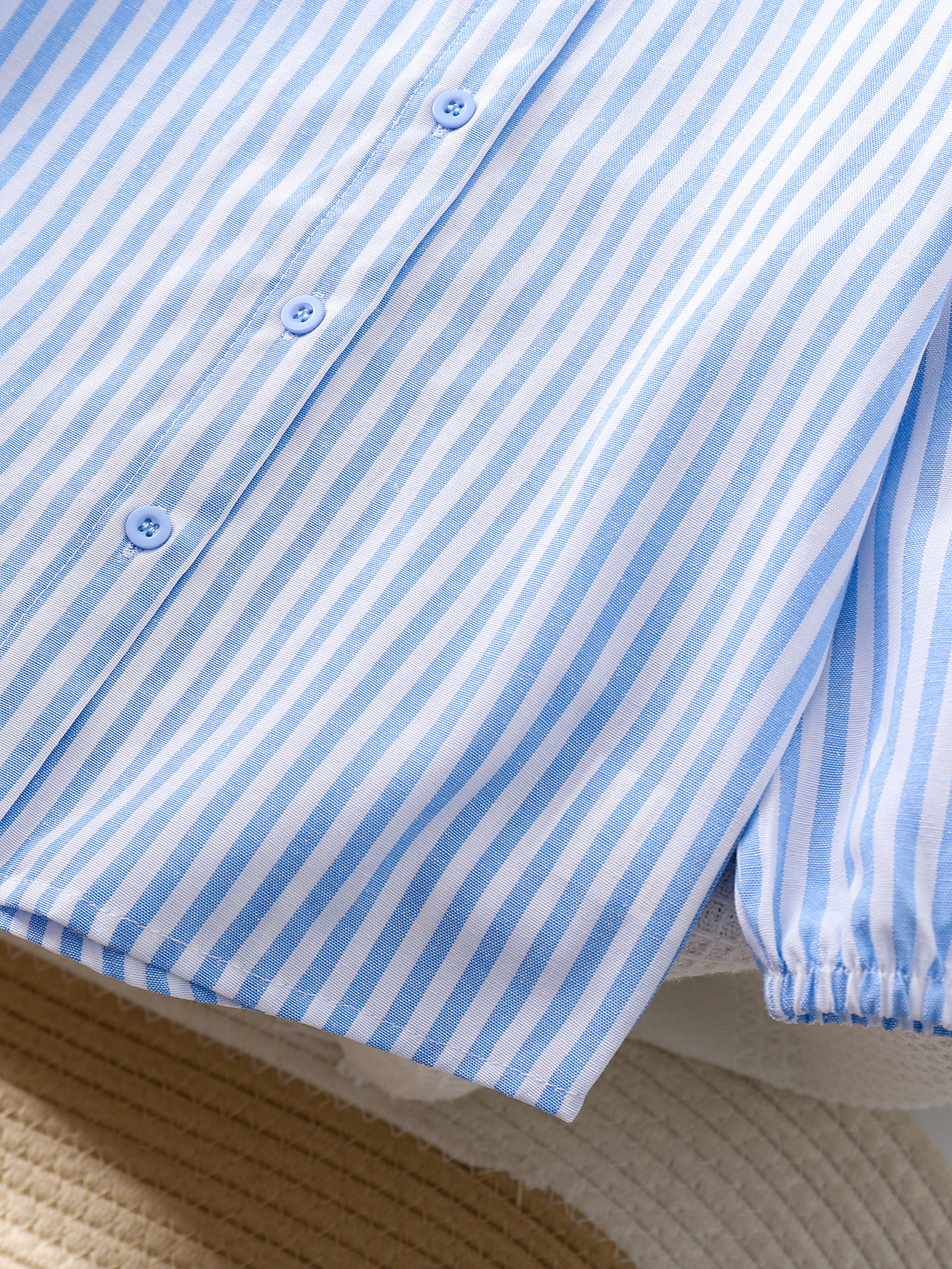 국경 간 대외 무역 소녀 봄, 가을 긴팔 핑크 줄무늬 셔츠 오프 숄더 슬리브 버튼 디자인 루즈 탑스토어 가기