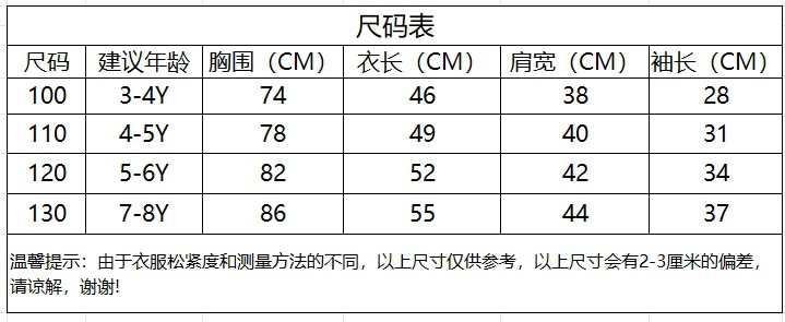 80135粉色条纹衬衫-尺码表