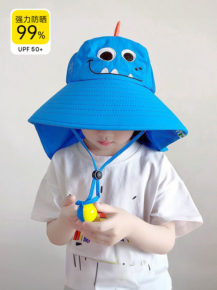 어린이 만화 태양 보호 모자 여름 해변 태양 보호 태양 모자 안티 UV 목 보호 대형 브림 분지 모자의 한국어 버전스토어 가기