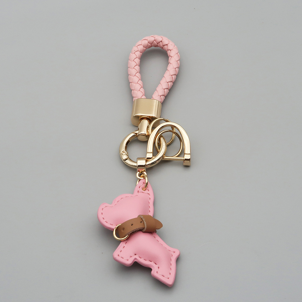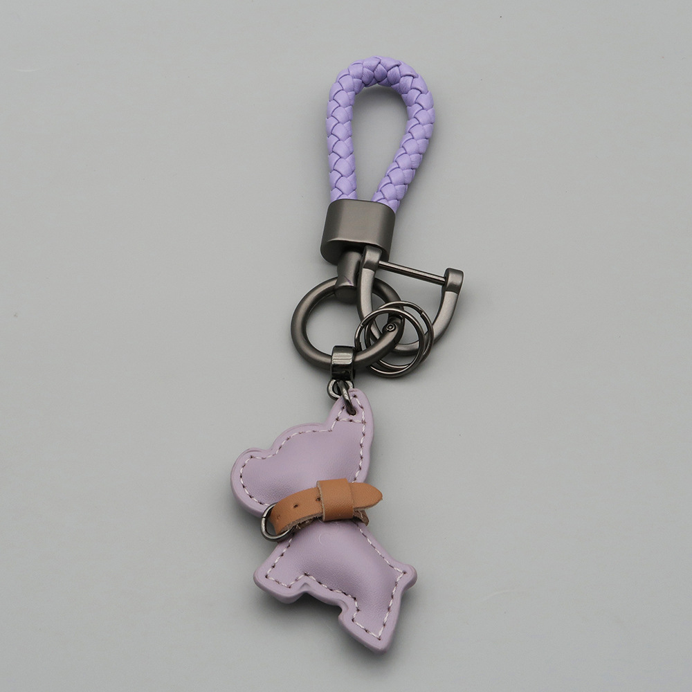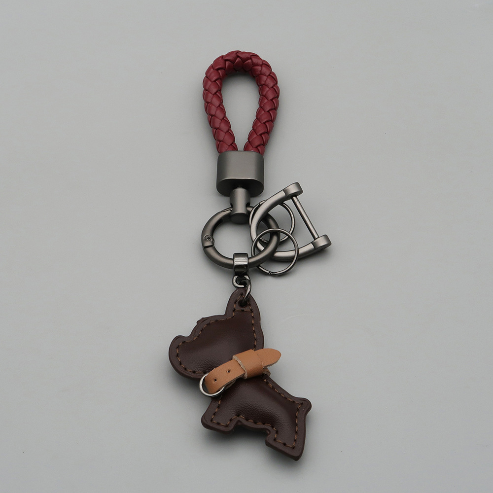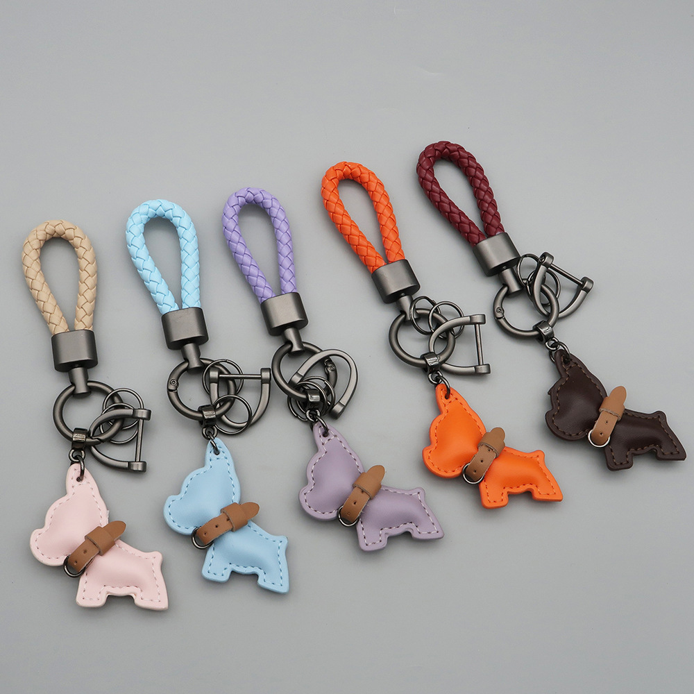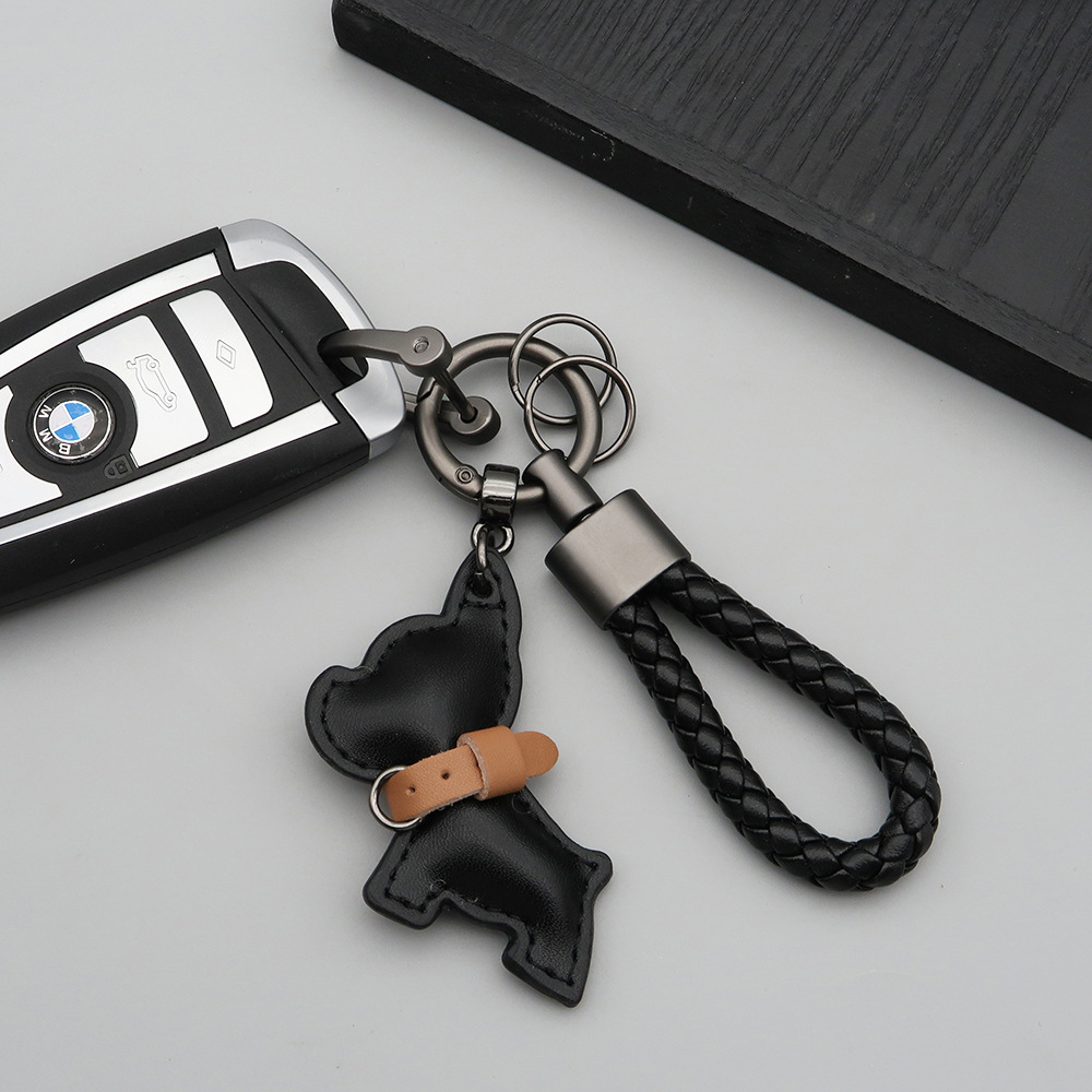 국경 간 재고 귀여운 미니 방법 공중전 자동차 키 체인 가죽 강아지 펜던트 꼰 로프 잃어버린 열쇠 고리