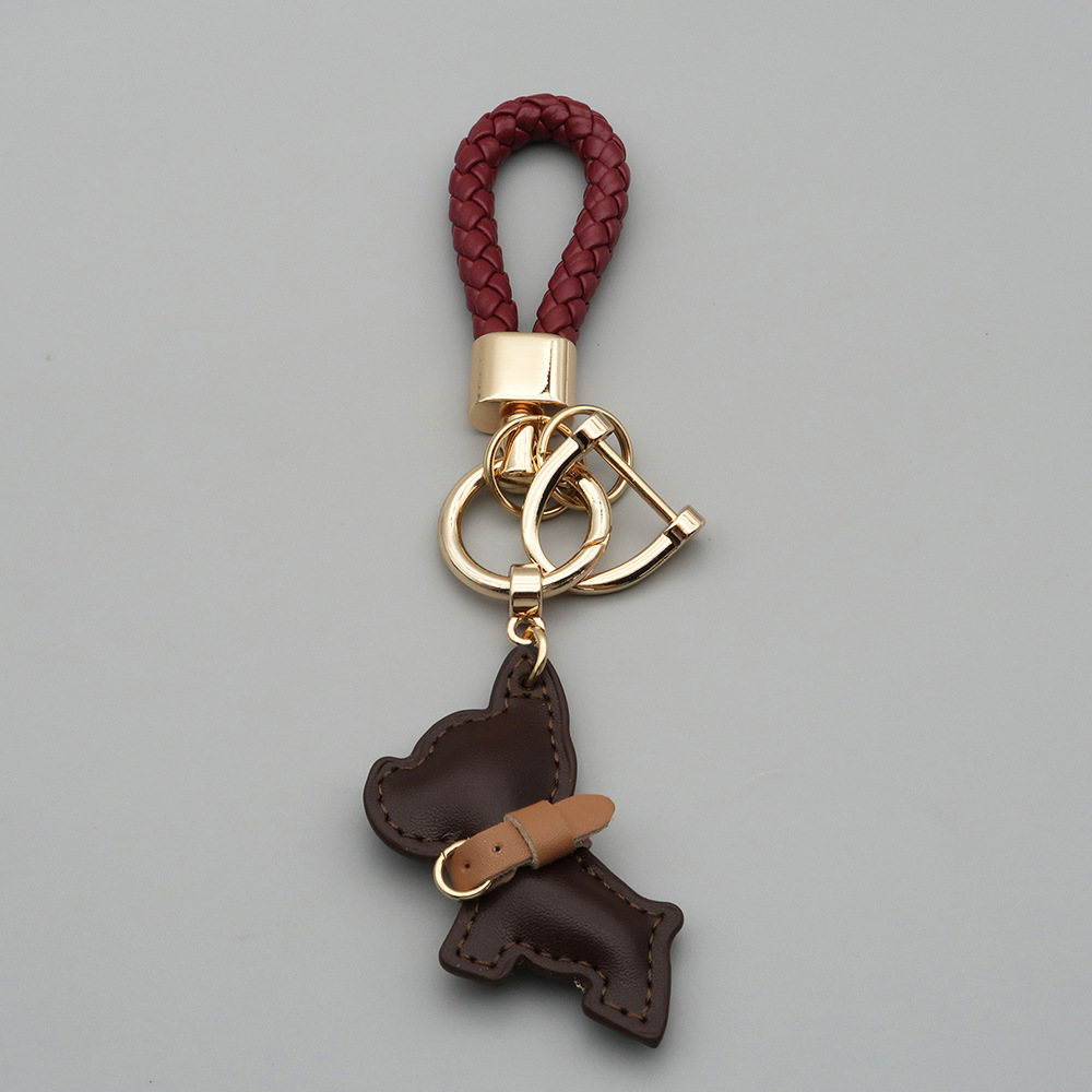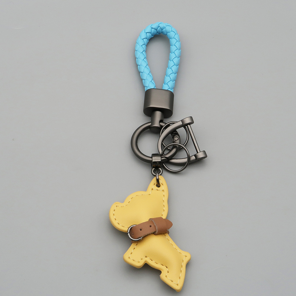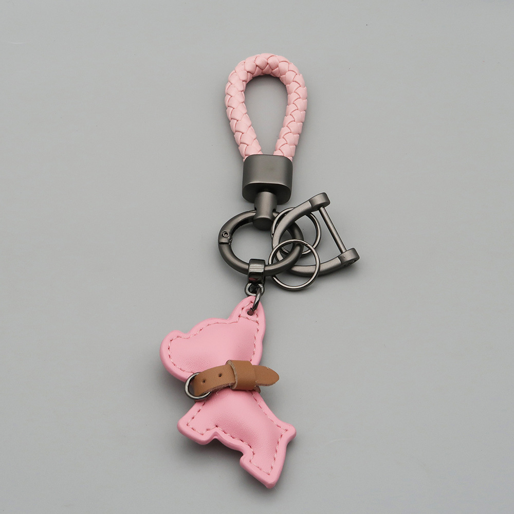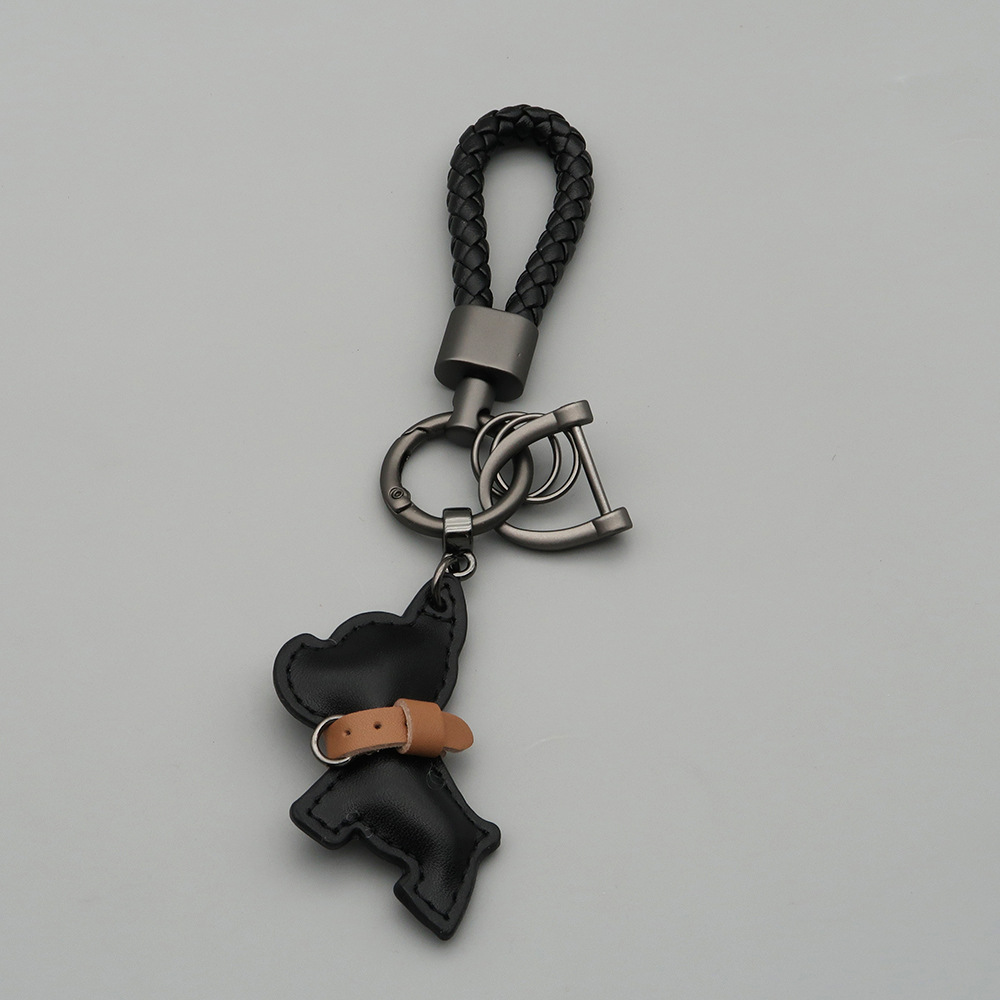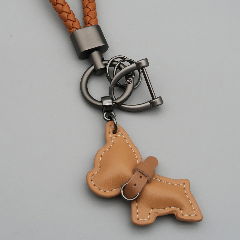 국경 간 재고 귀여운 미니 방법 공중전 자동차 키 체인 가죽 강아지 펜던트 꼰 로프 잃어버린 열쇠 고리