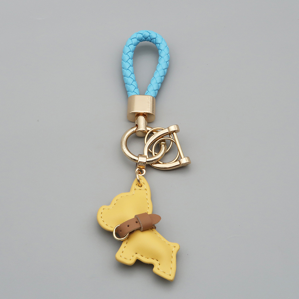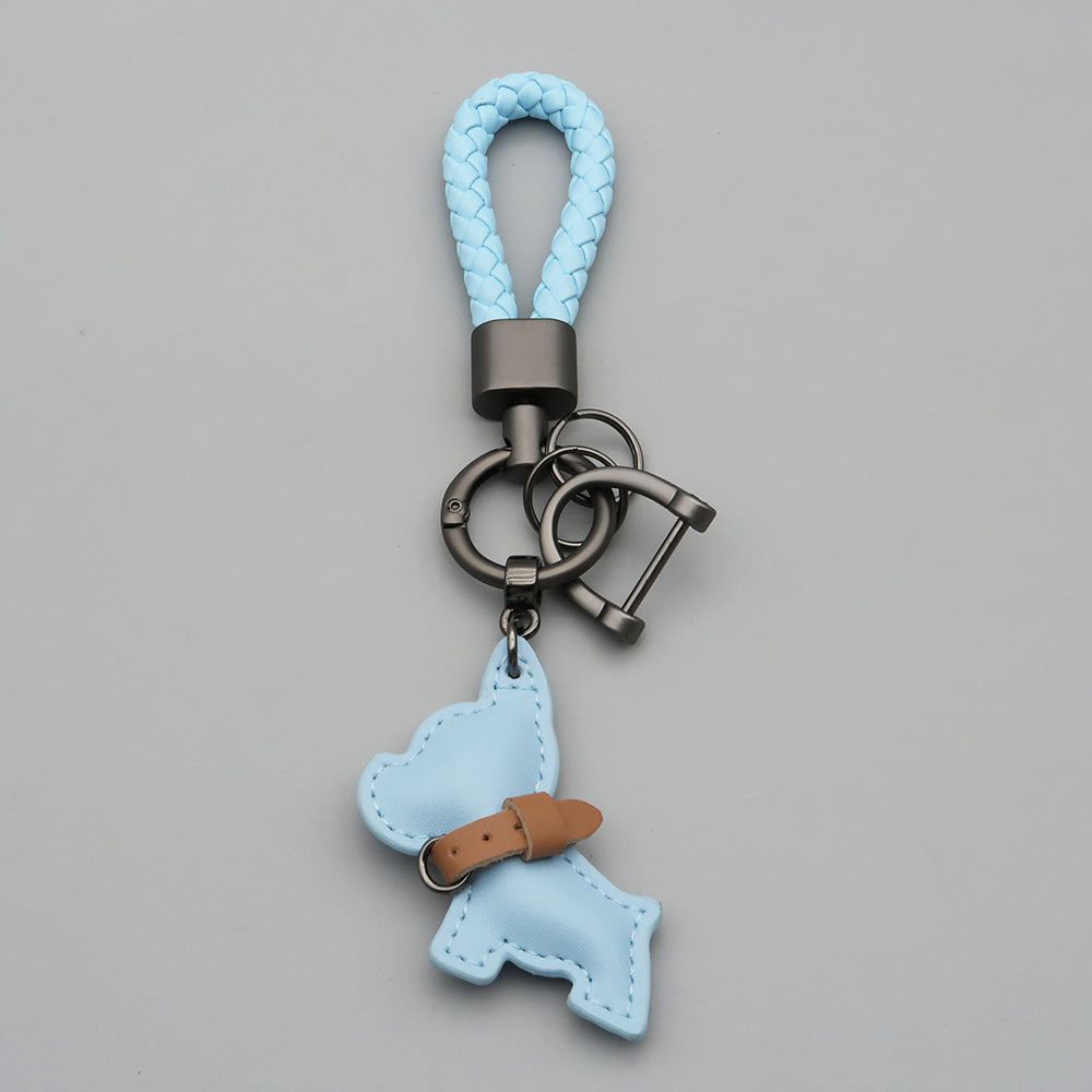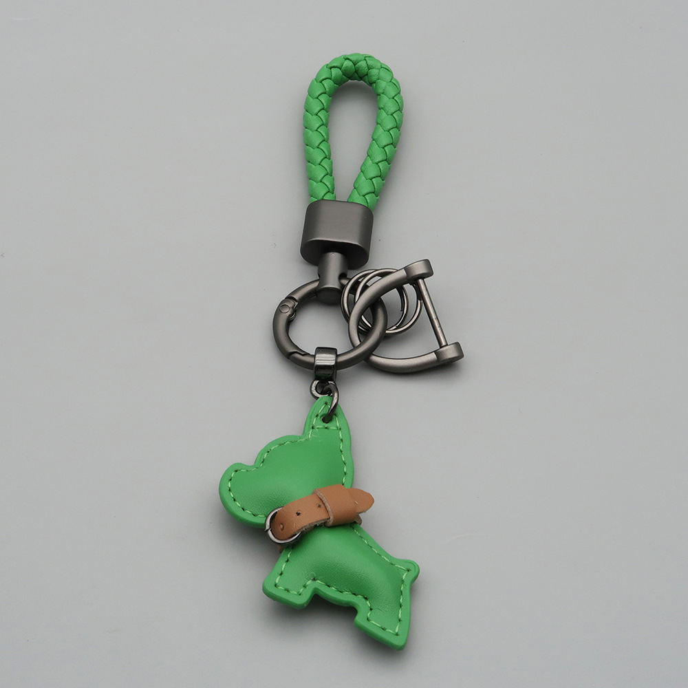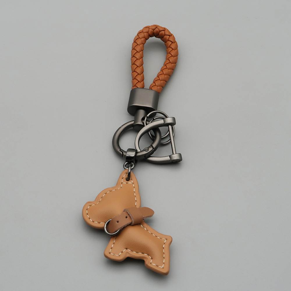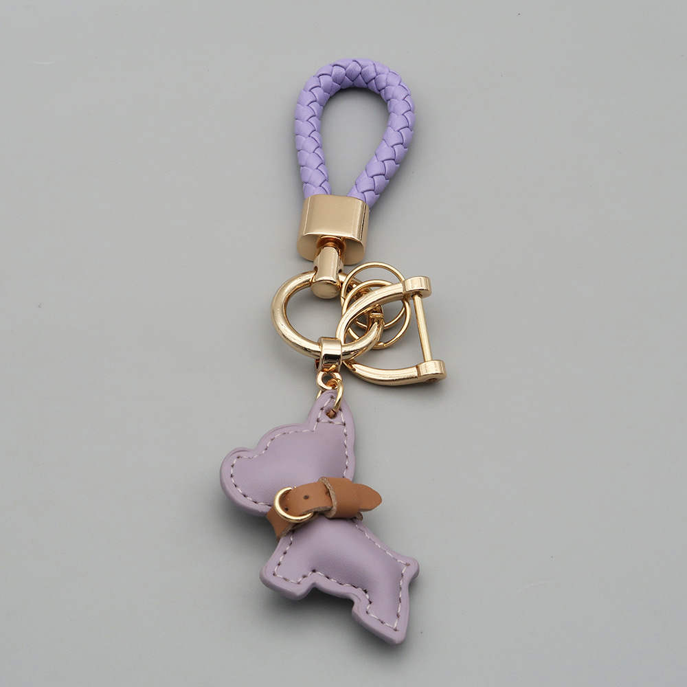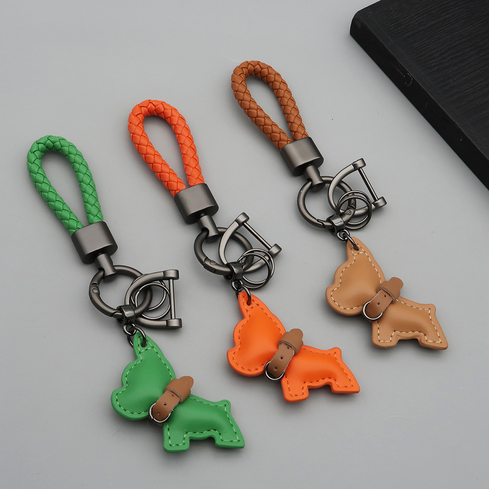 국경 간 재고 귀여운 미니 방법 공중전 자동차 키 체인 가죽 강아지 펜던트 꼰 로프 잃어버린 열쇠 고리
