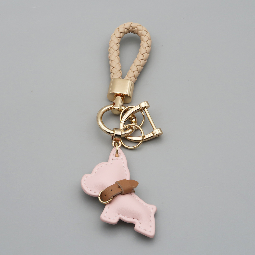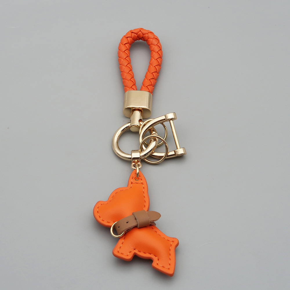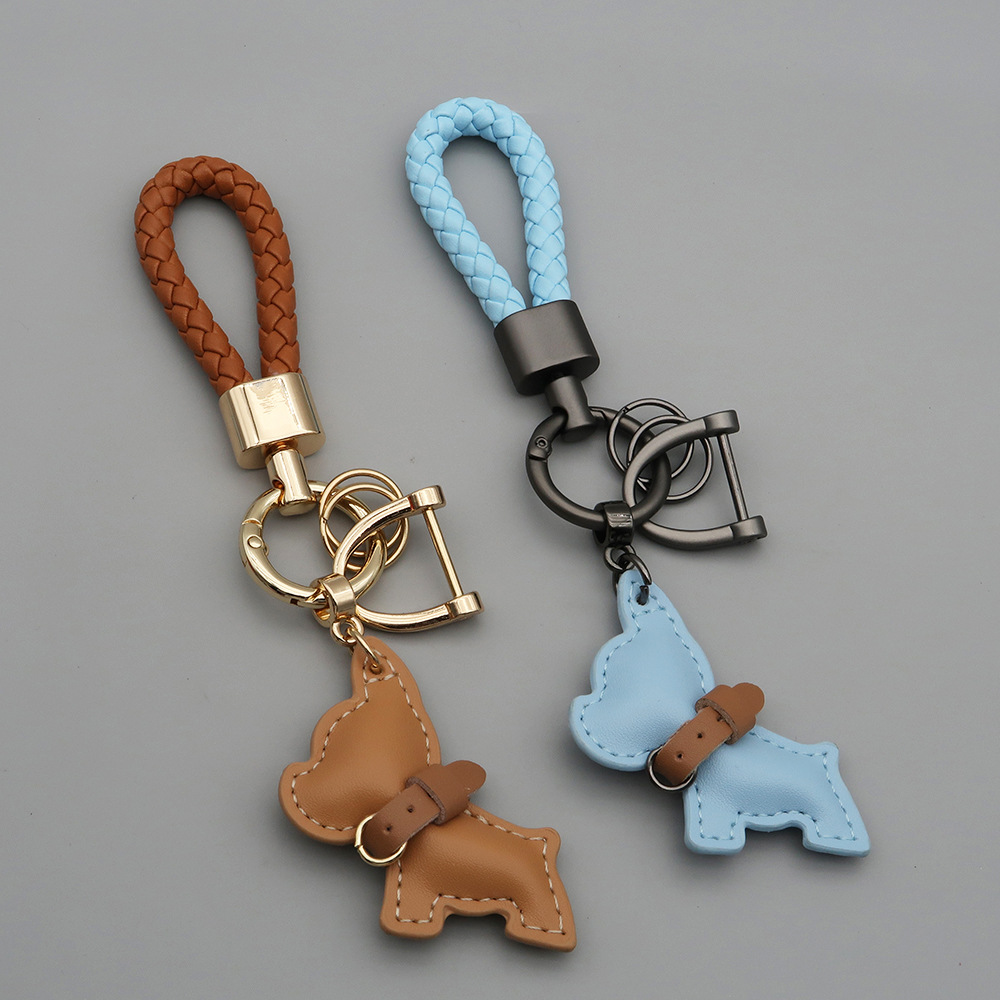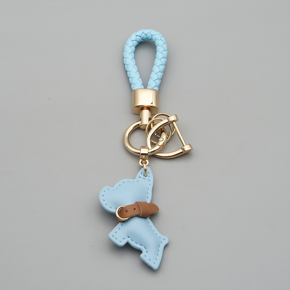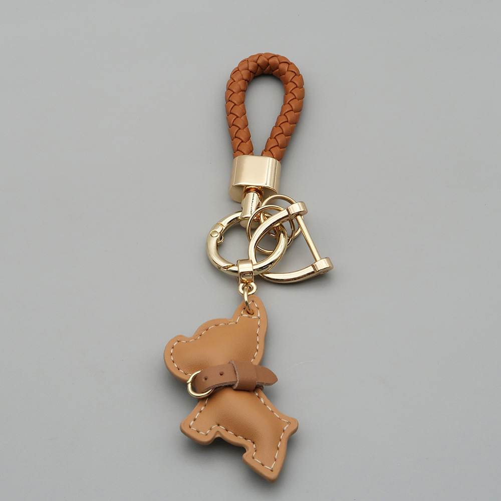 국경 간 재고 귀여운 미니 방법 공중전 자동차 키 체인 가죽 강아지 펜던트 꼰 로프 잃어버린 열쇠 고리
