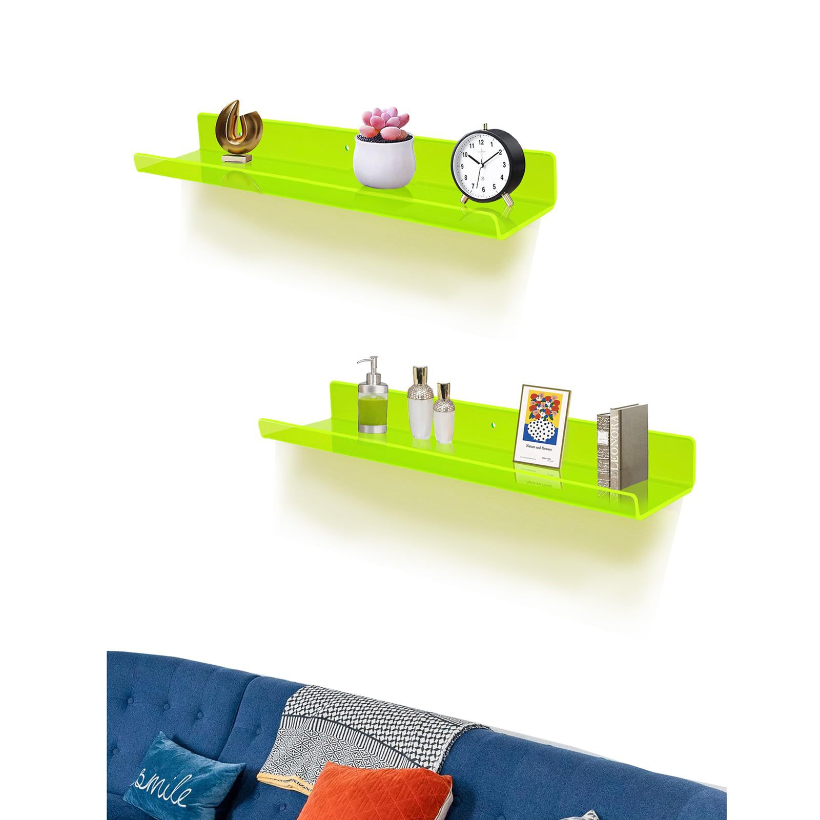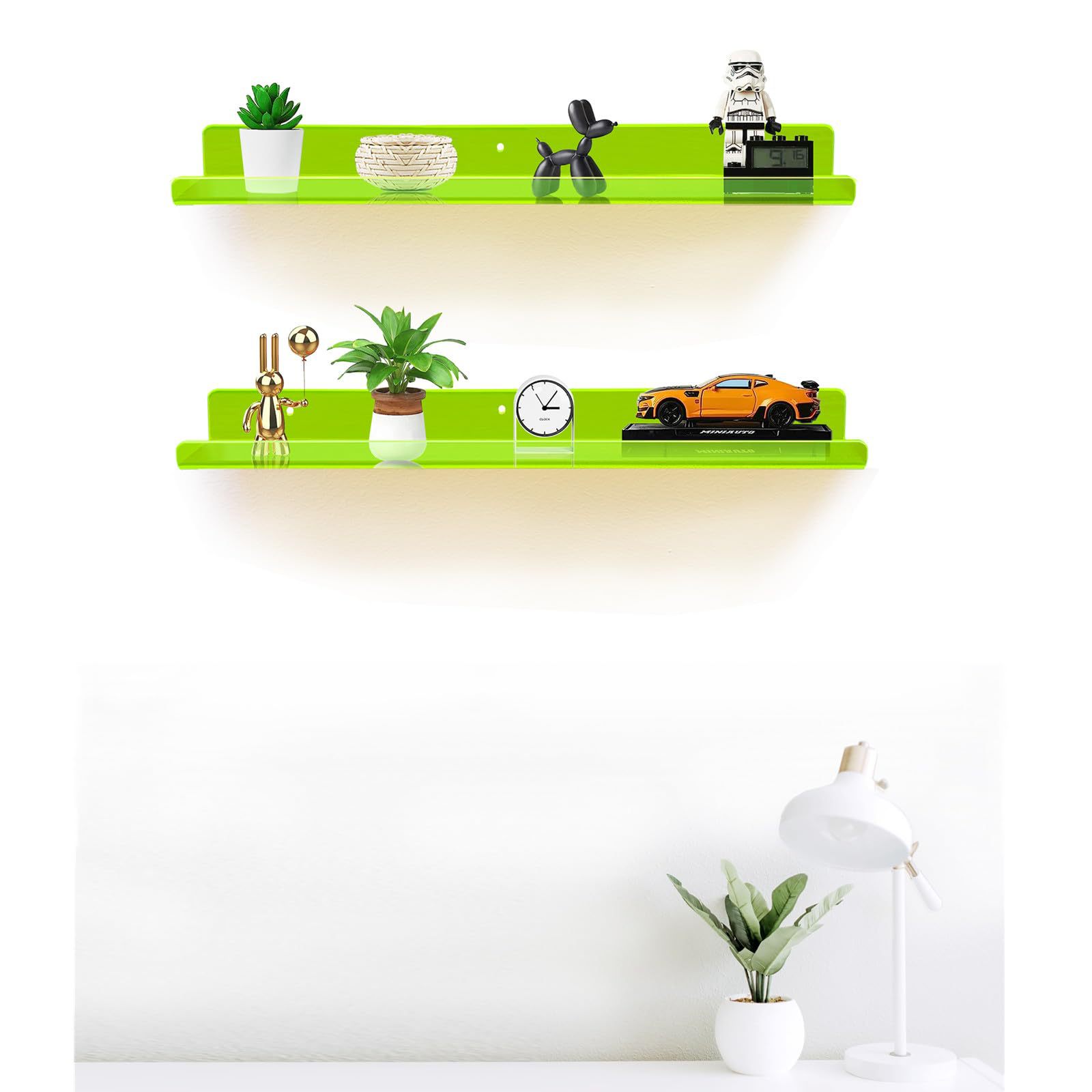 게임룸 침실 거실 사무실용 아크릴 장식 플로팅 책장 룸 그린