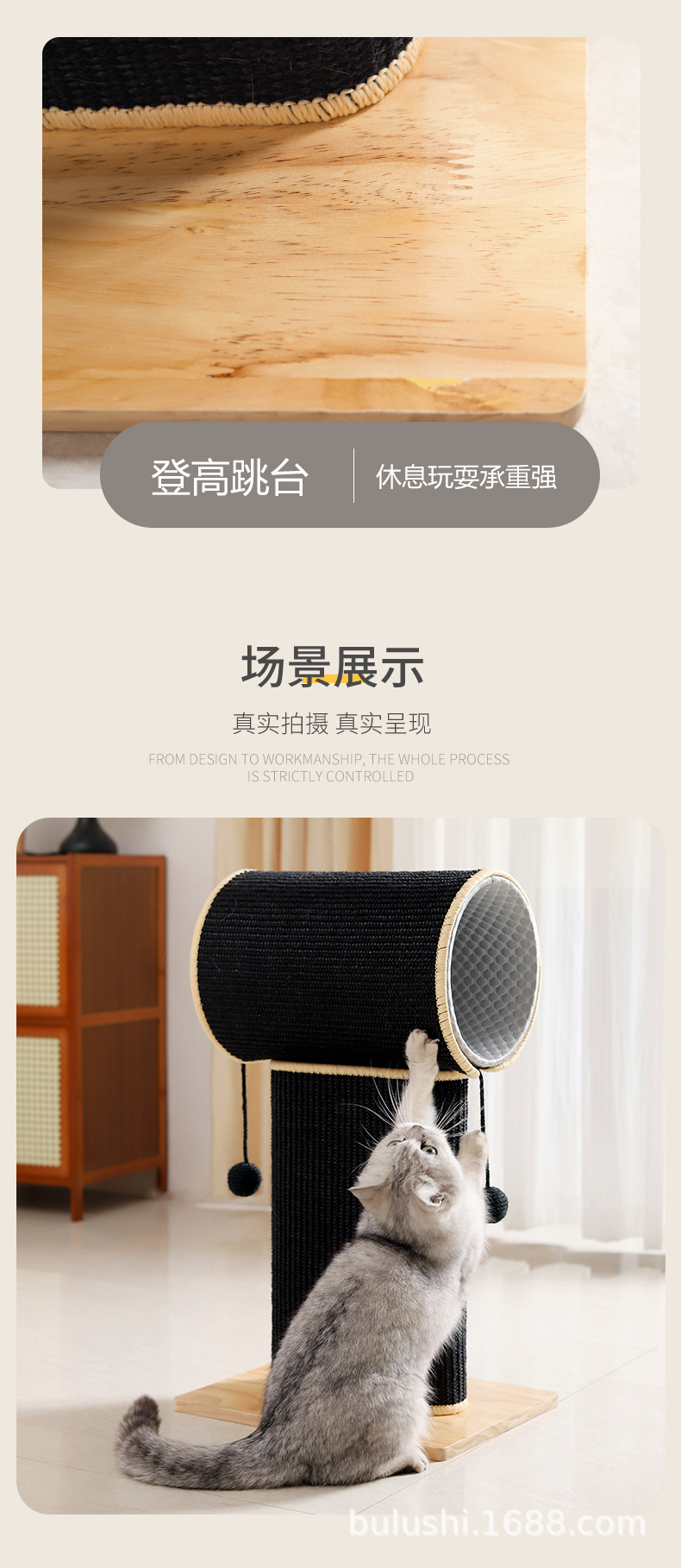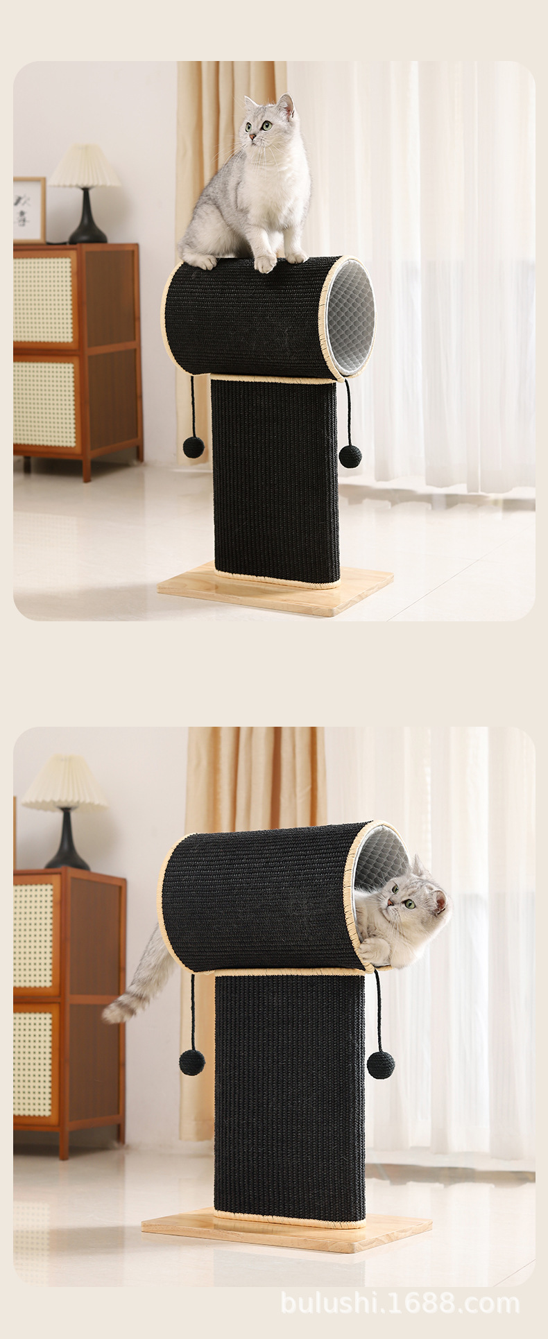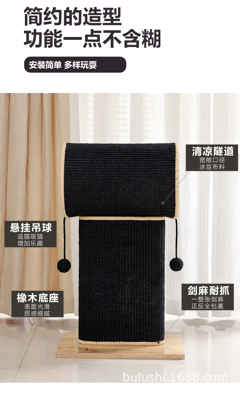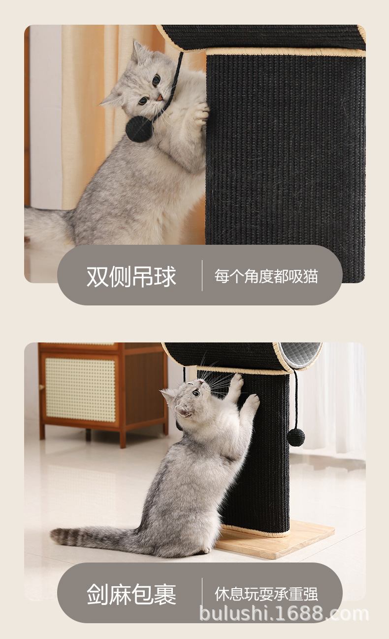 내마모성 고양이 긁는판, 부스러기 잘 안뜨는 고양이 긁는 기둥, 사이잘 원목 고양이 긁는판, 스탠딩형 고양이 클라이밍 프레임, 일체형 고양이 장난감
