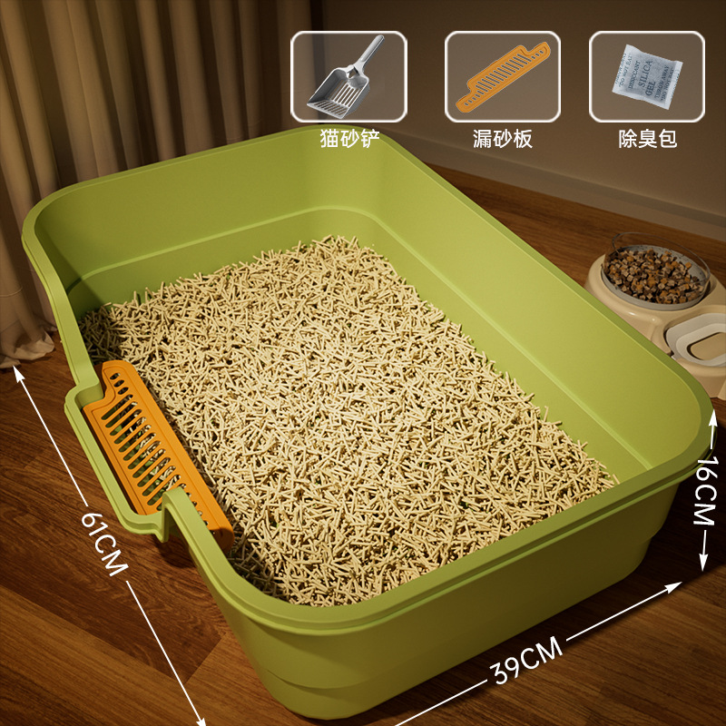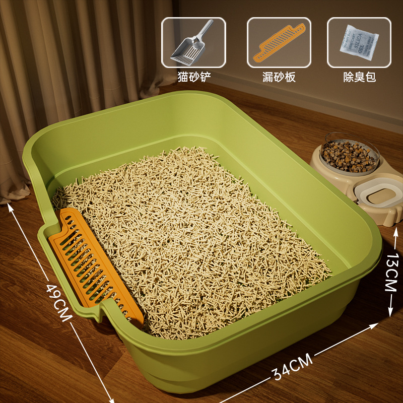 • 민트 그린 대형 사이즈(45*30*17CM) 고양이 배변 국자 포함