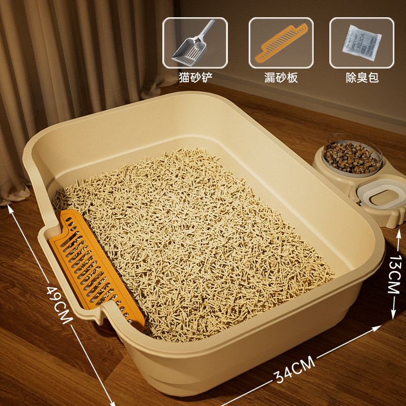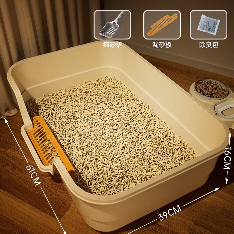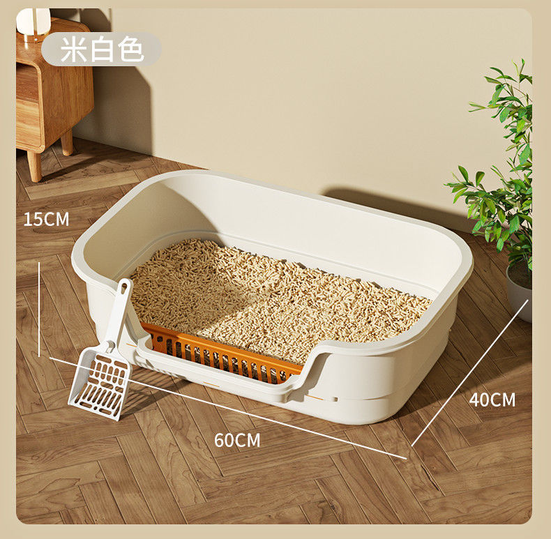 • 크림 화이트 대형 사이즈(45*30*17CM) 고양이 배변 국자 포함
