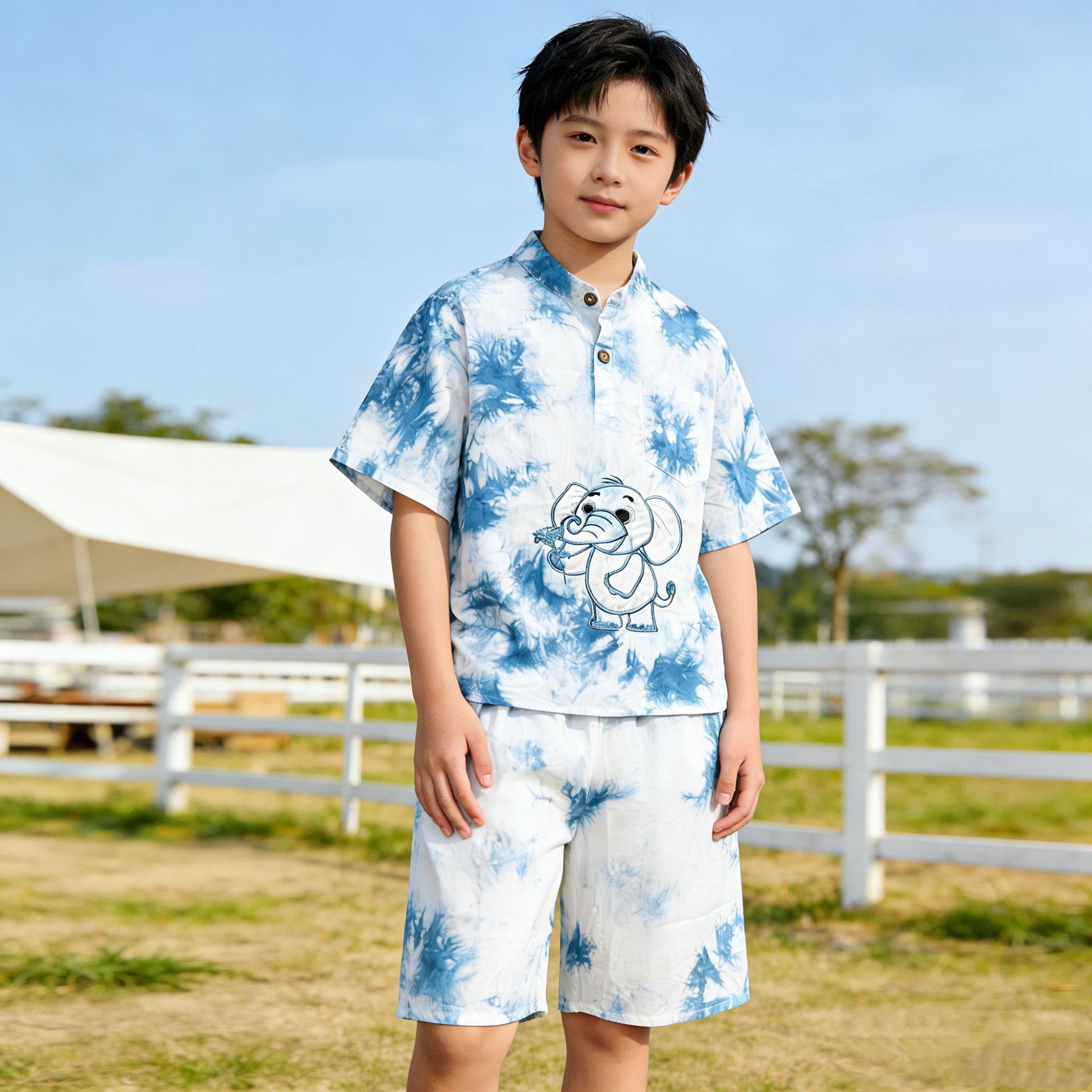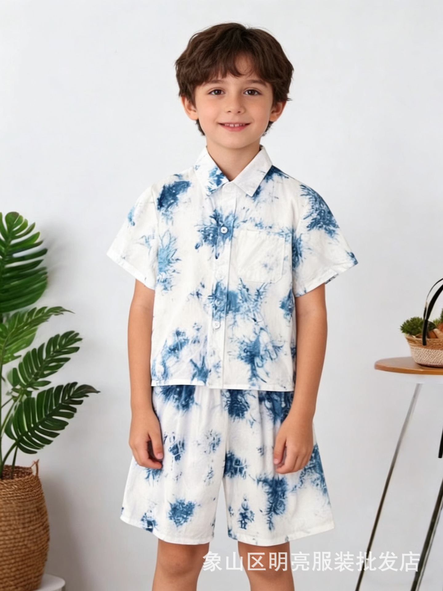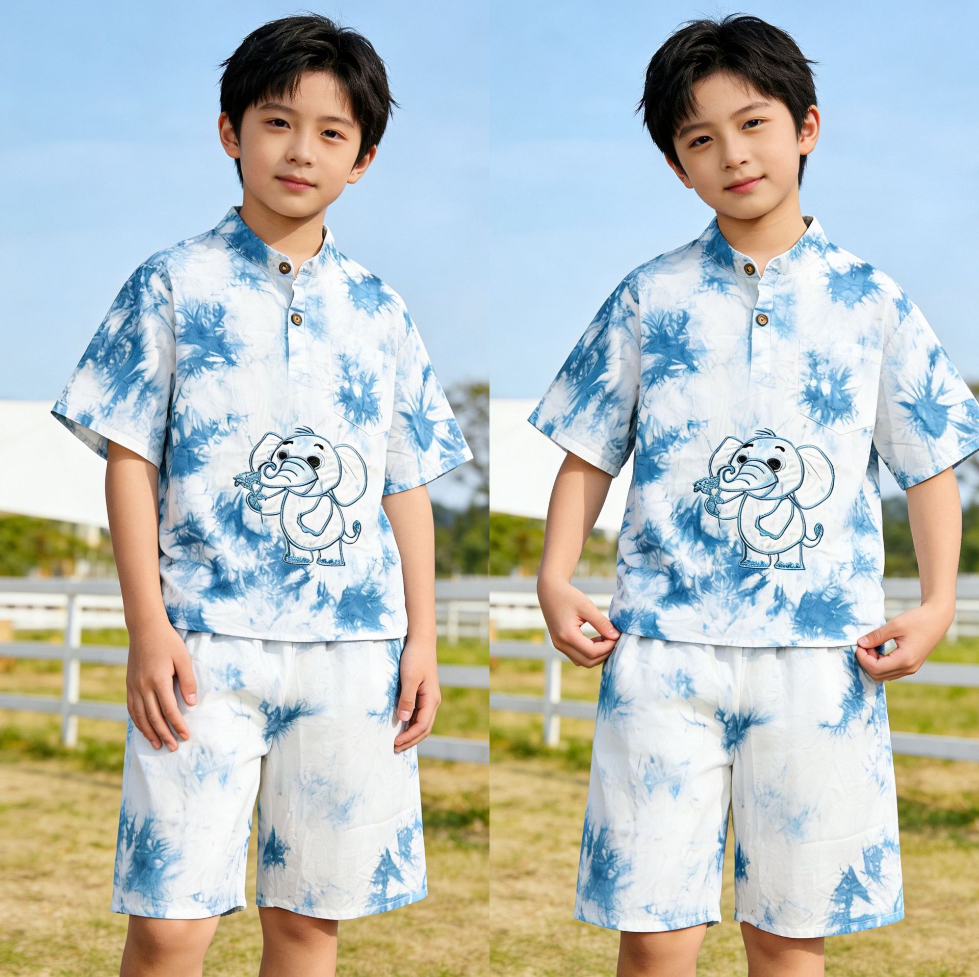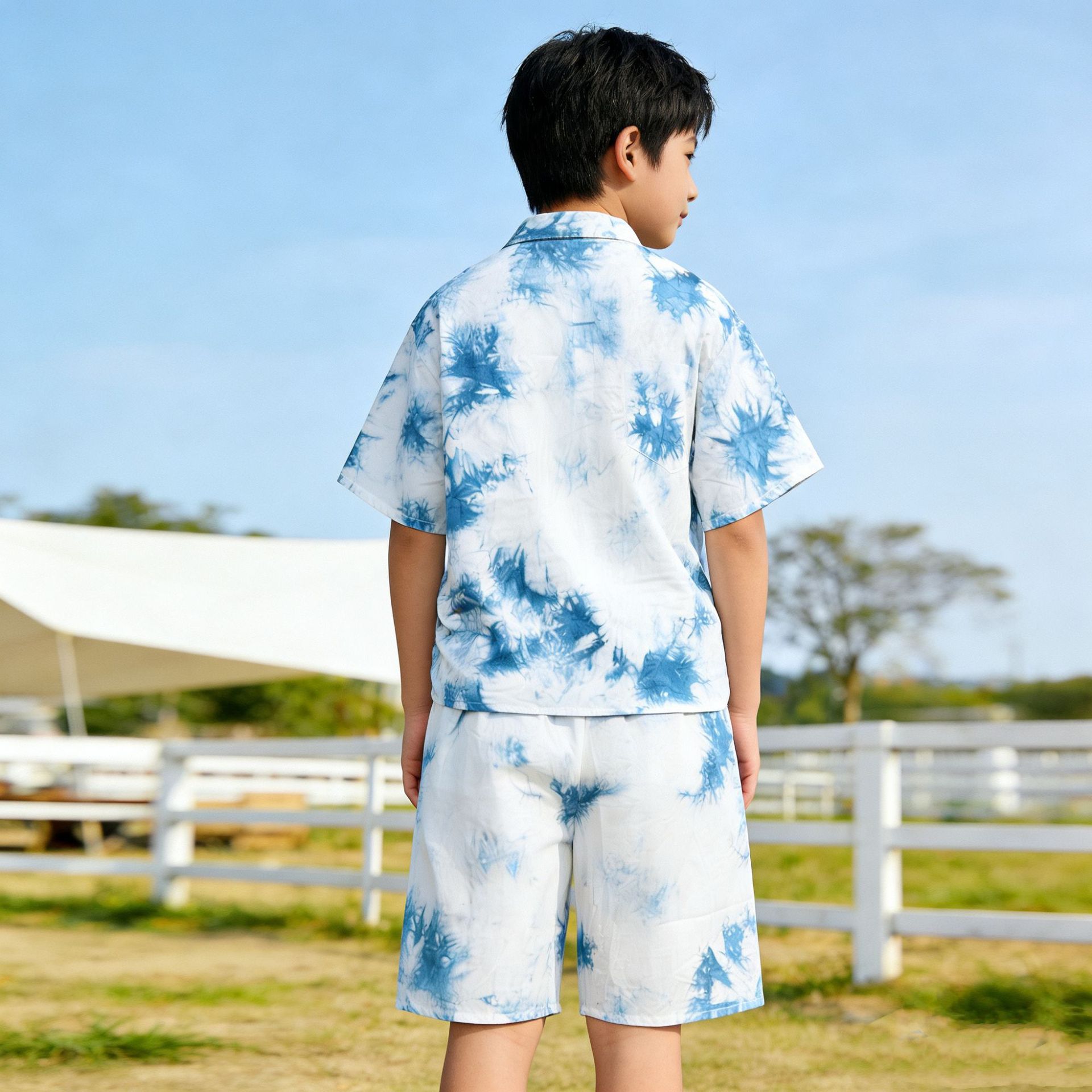 타이 염색 코튼 셔츠 여름 민족 스타일 수제 타이 염색 소년 셔츠 세트 통기성 편안한 여행 레저