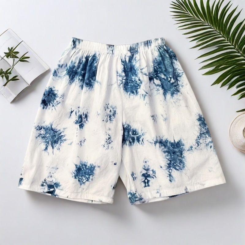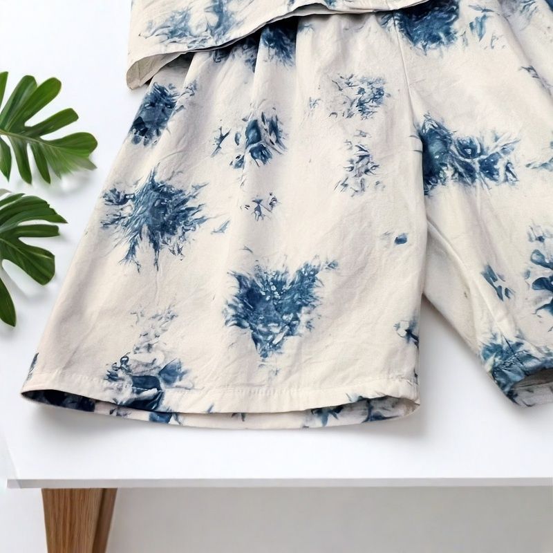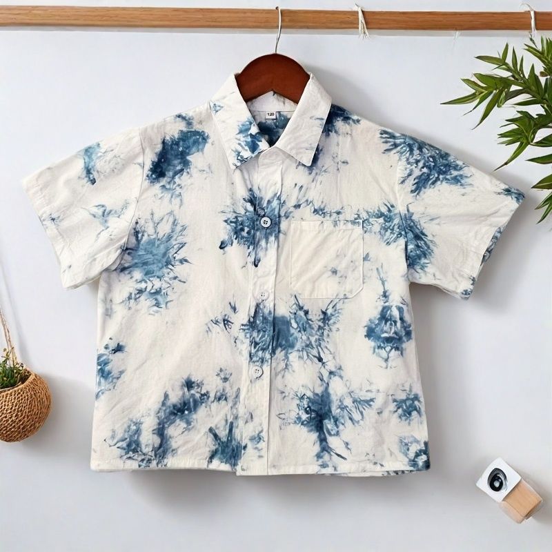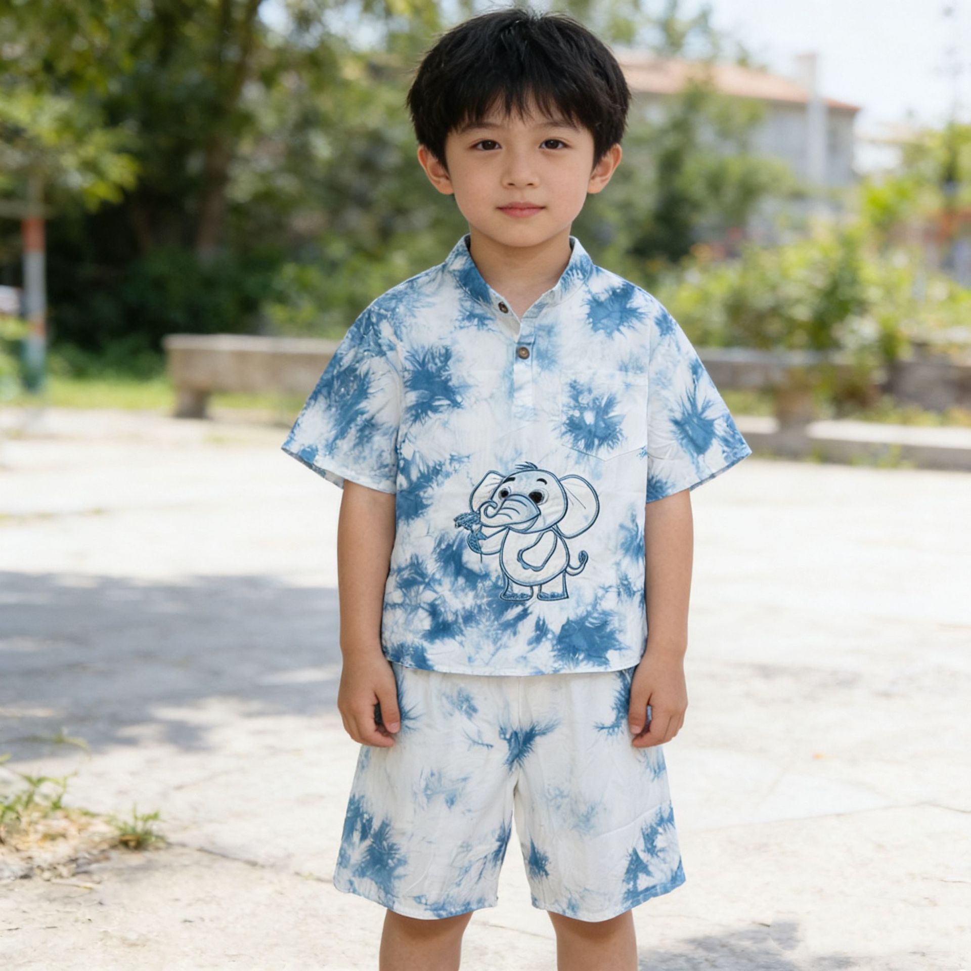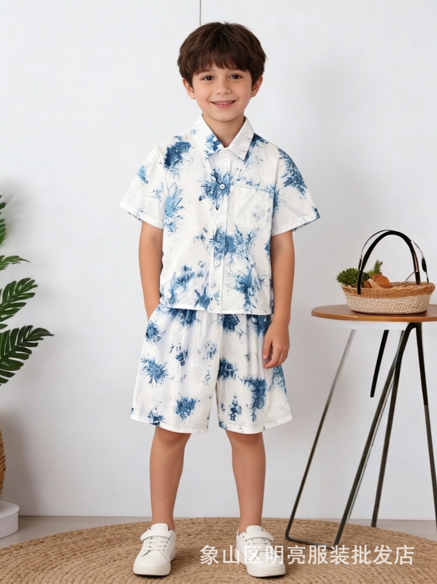 타이 염색 코튼 셔츠 여름 민족 스타일 수제 타이 염색 소년 셔츠 세트 통기성 편안한 여행 레저