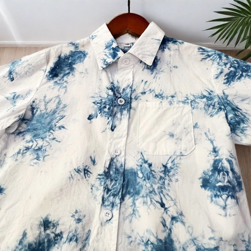 타이 염색 코튼 셔츠 여름 민족 스타일 수제 타이 염색 소년 셔츠 세트 통기성 편안한 여행 레저스토어 가기