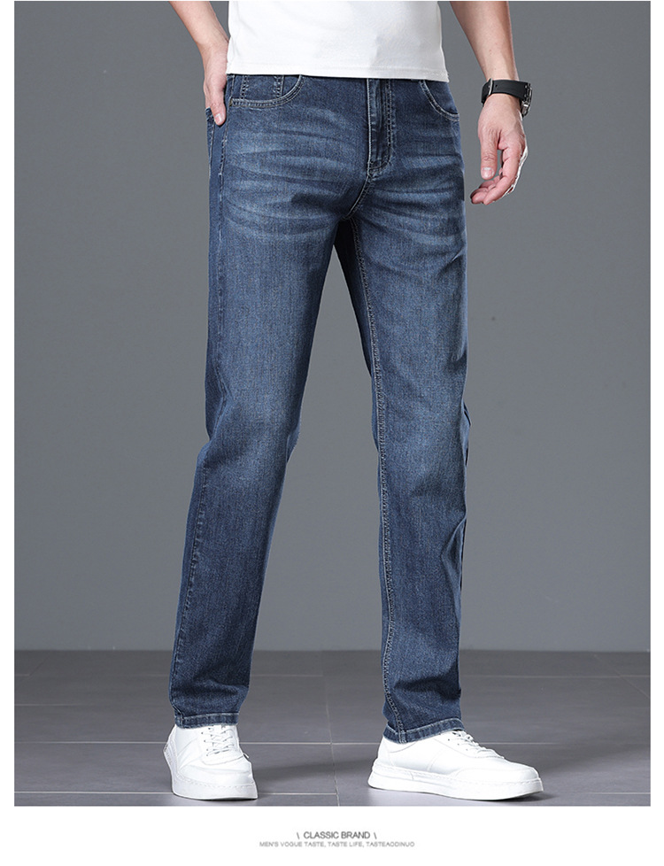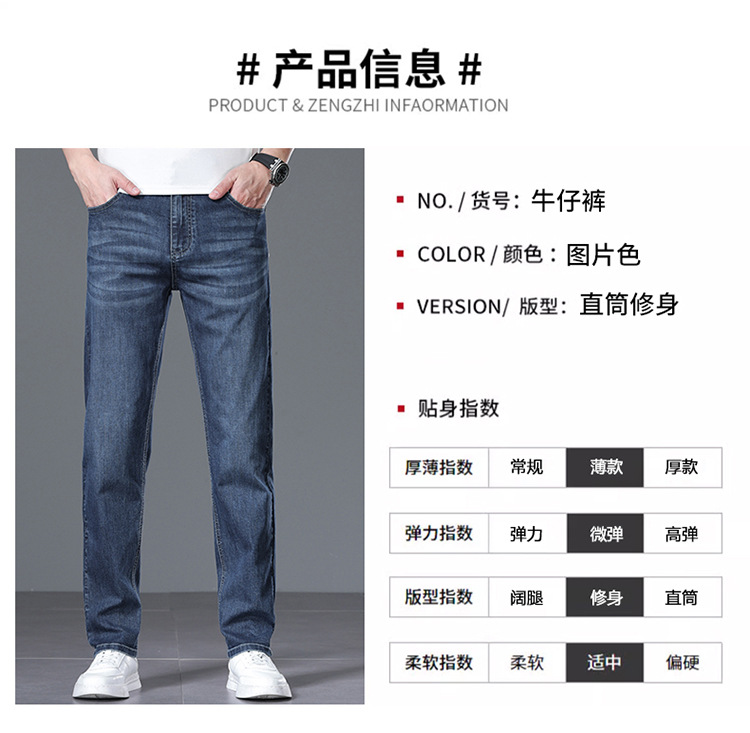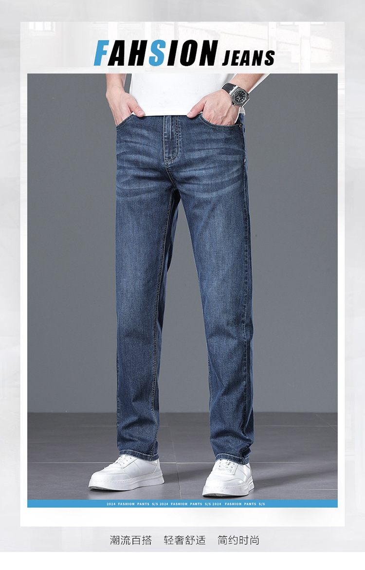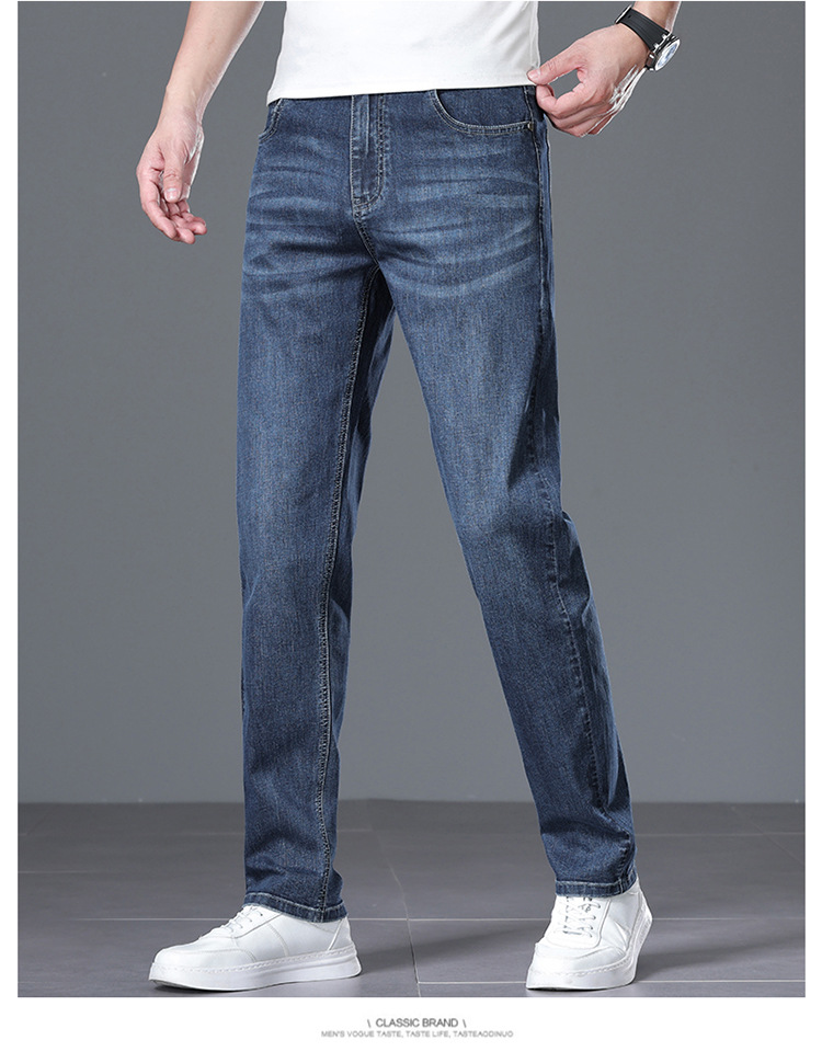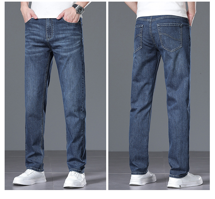 Lee dex 여름 얇은 청바지 남자 슬림 핏 스트레이트 남자 바지 2025 새로운 캐주얼 긴 바지 남자