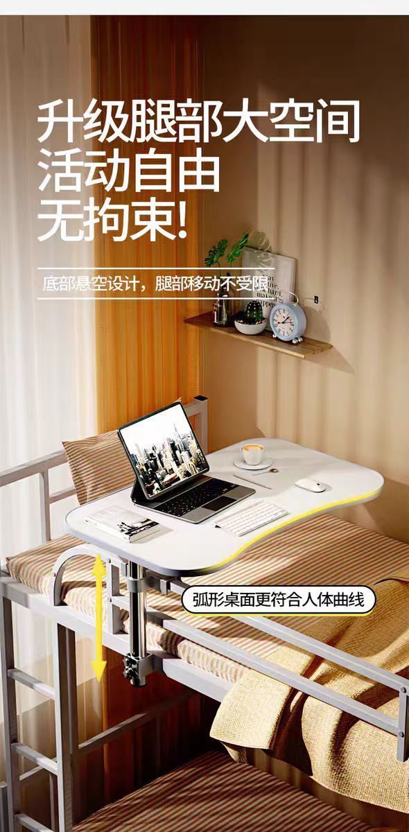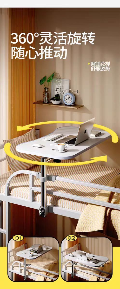 기숙사 침대 테이블 회전 접이식 높이 조절 대학생 리프팅 책상 두꺼운 침대 옆 컴퓨터 책상 L자형스토어 가기