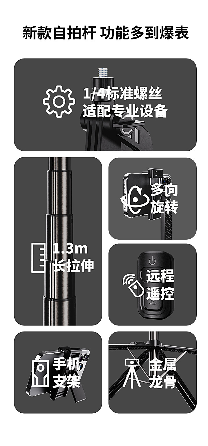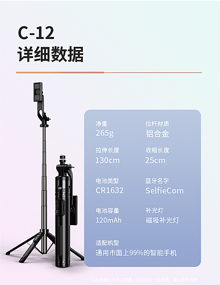 • C12 (130CM+탈착식 휴대폰 홀더+블루투스 리모컨+금속 용골 홀더+