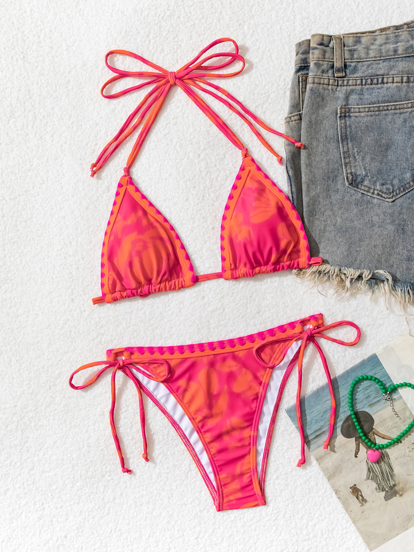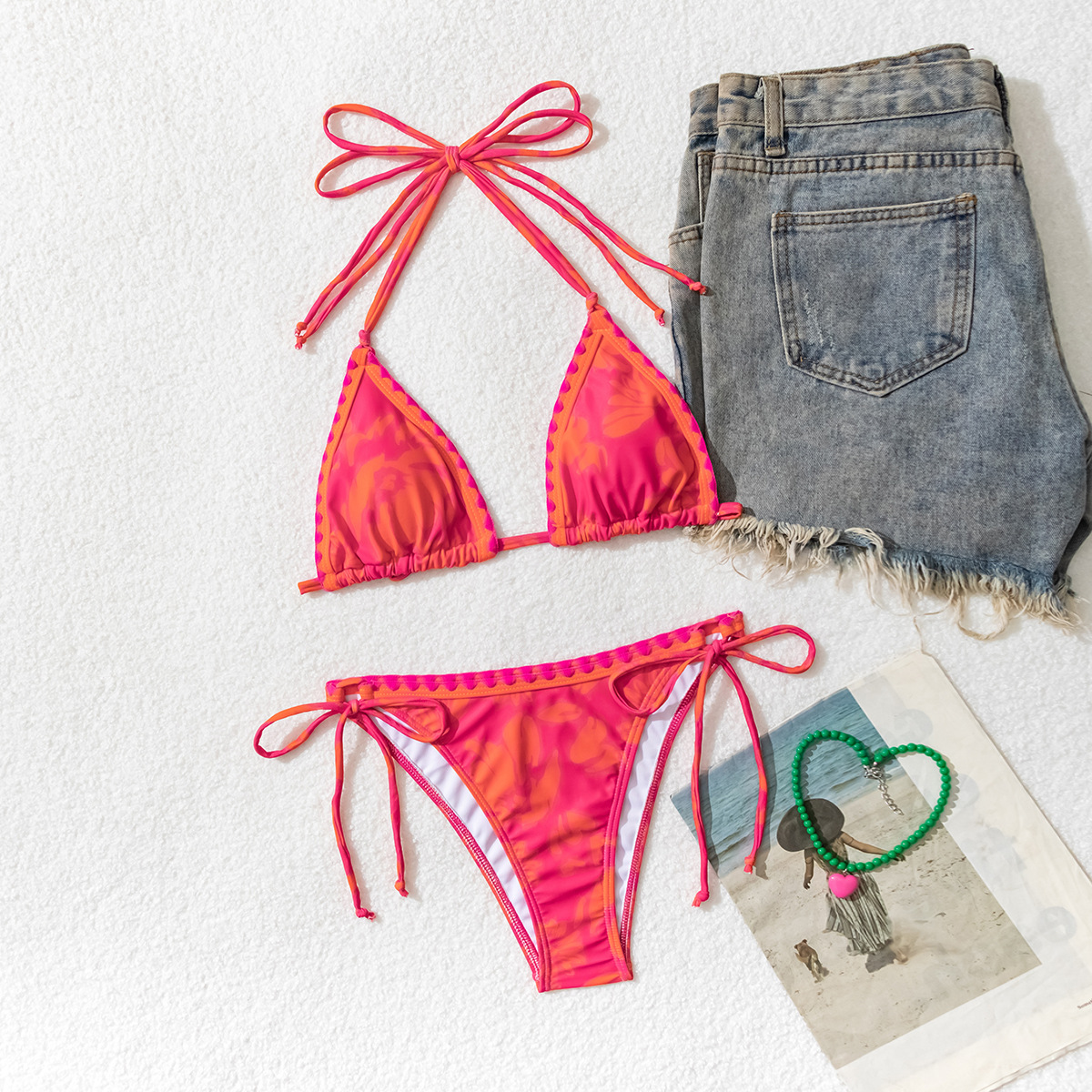 2024 유럽과 미국의 섹시하고 신선한 새로운 꽃무늬 쉘 치아 스플릿 드로스트링 스트랩 수영복 비키니 비키니스토어 가기