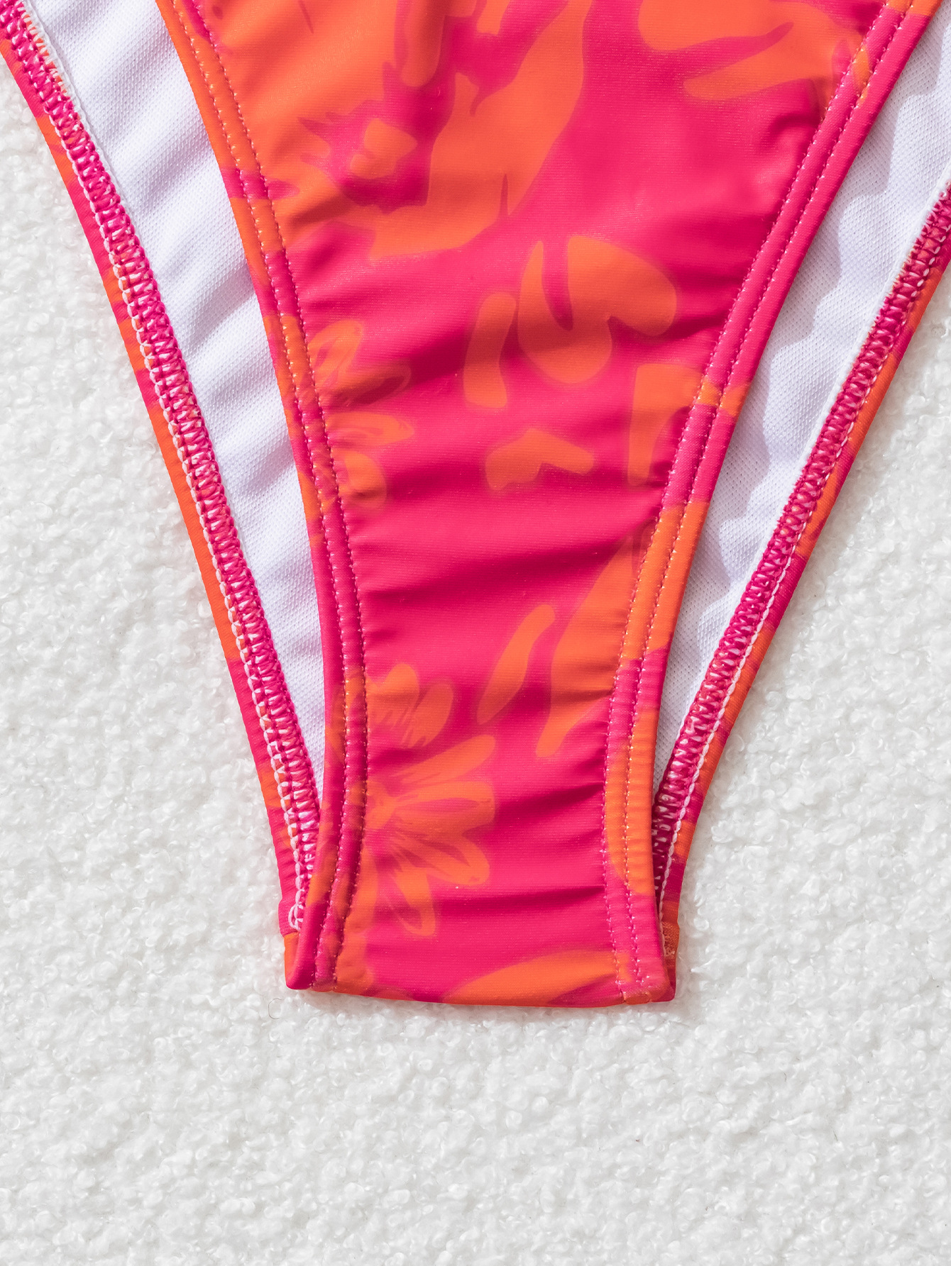2024 유럽과 미국의 섹시하고 신선한 새로운 꽃무늬 쉘 치아 스플릿 드로스트링 스트랩 수영복 비키니 비키니