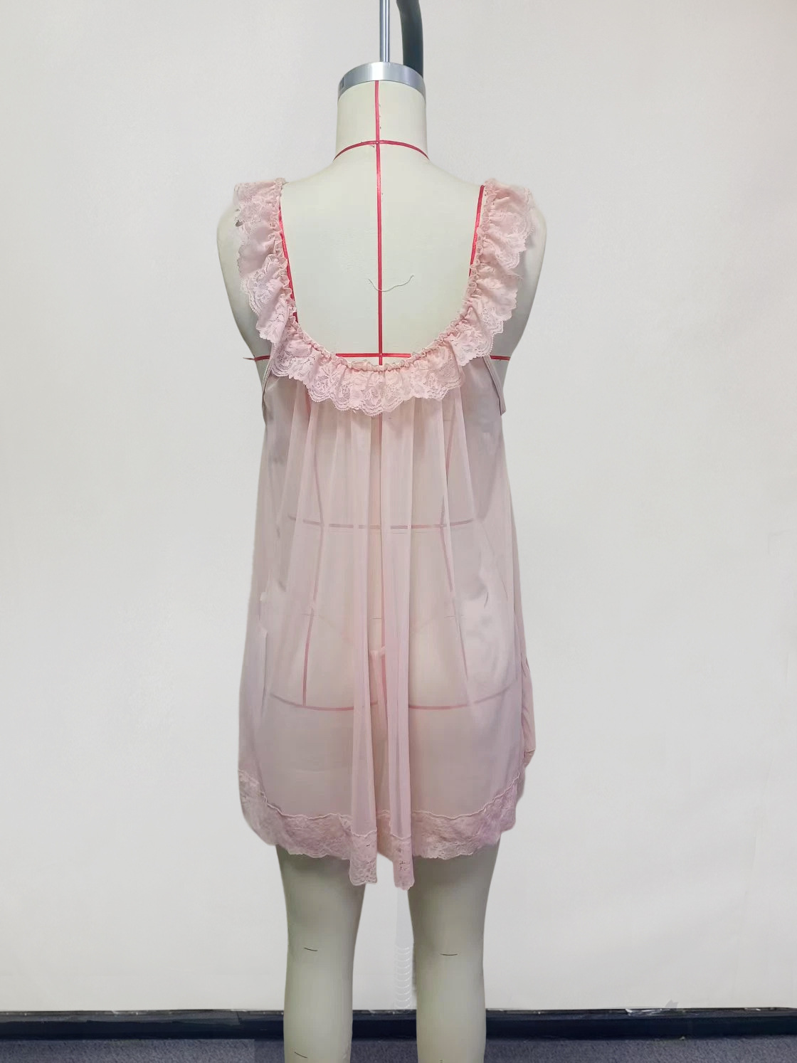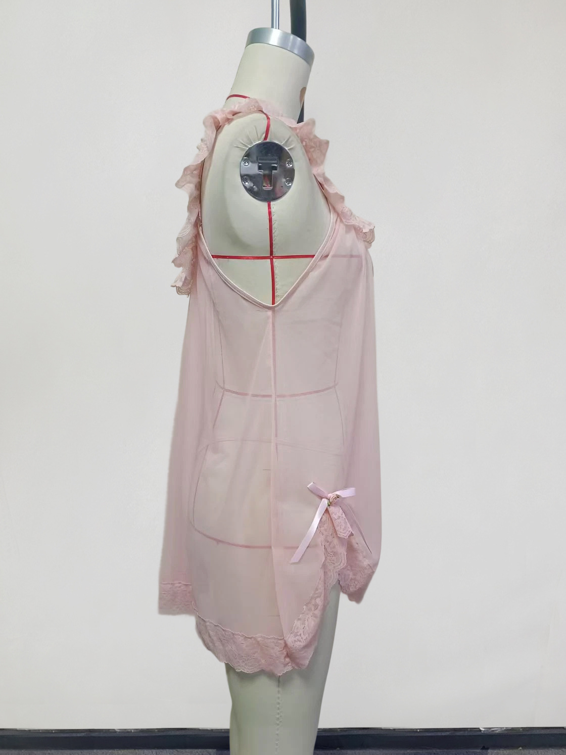2025 아마존 국경 새로운 유럽과 미국 스타일 나이트 가운 여성의 섹시한 레이스 순수한 욕망 메시 관점 섹스 파자마