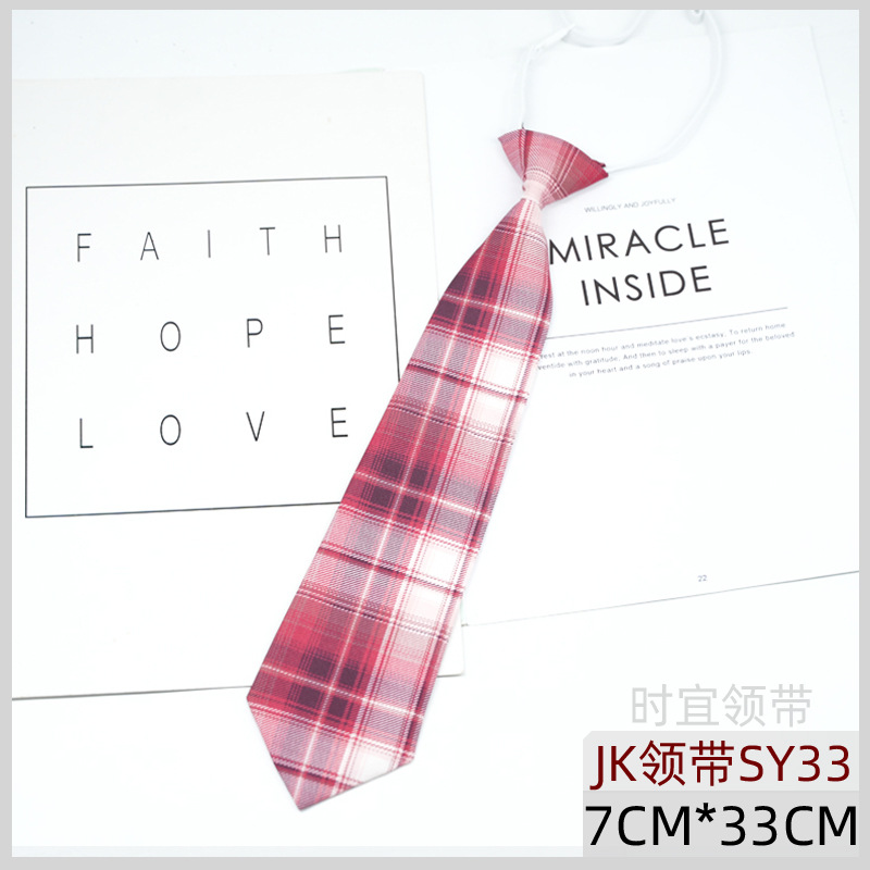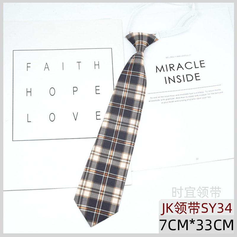 JK 넥타이 여성 한국식 일본식 대학 스타일 매듭없는 게으른 격자 무늬 학생 교복 유니폼 액세서리 트렌디 그레이 레드 브라운스토어 가기