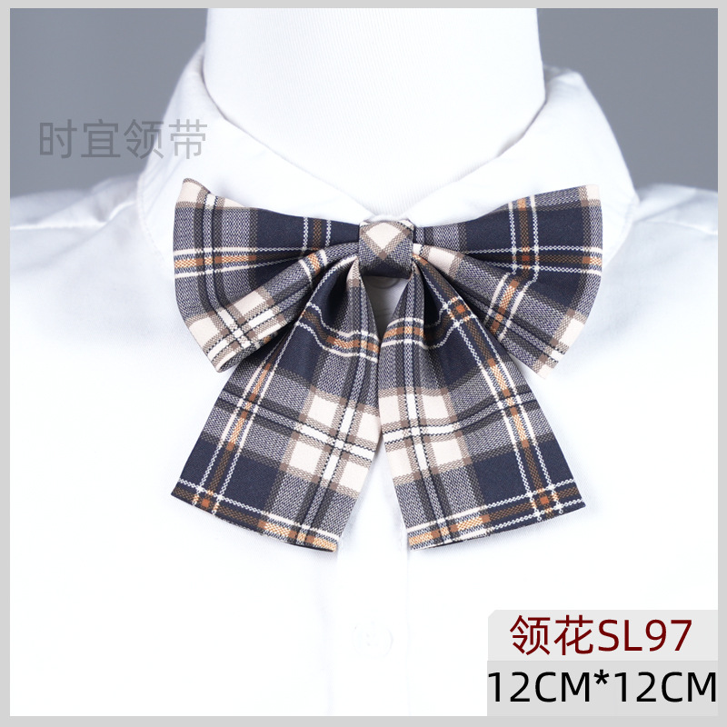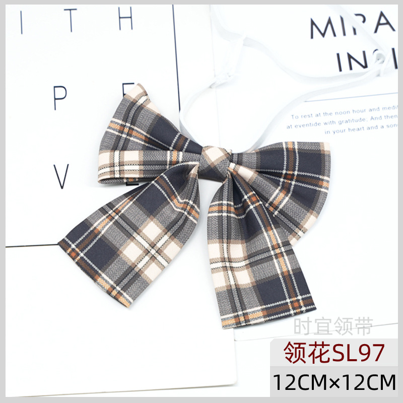 JK 넥타이 여성 한국식 일본식 대학 스타일 매듭없는 게으른 격자 무늬 학생 교복 유니폼 액세서리 트렌디 그레이 레드 브라운