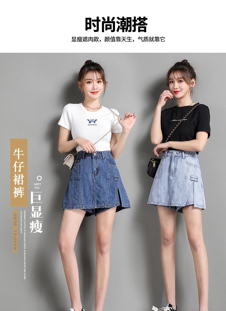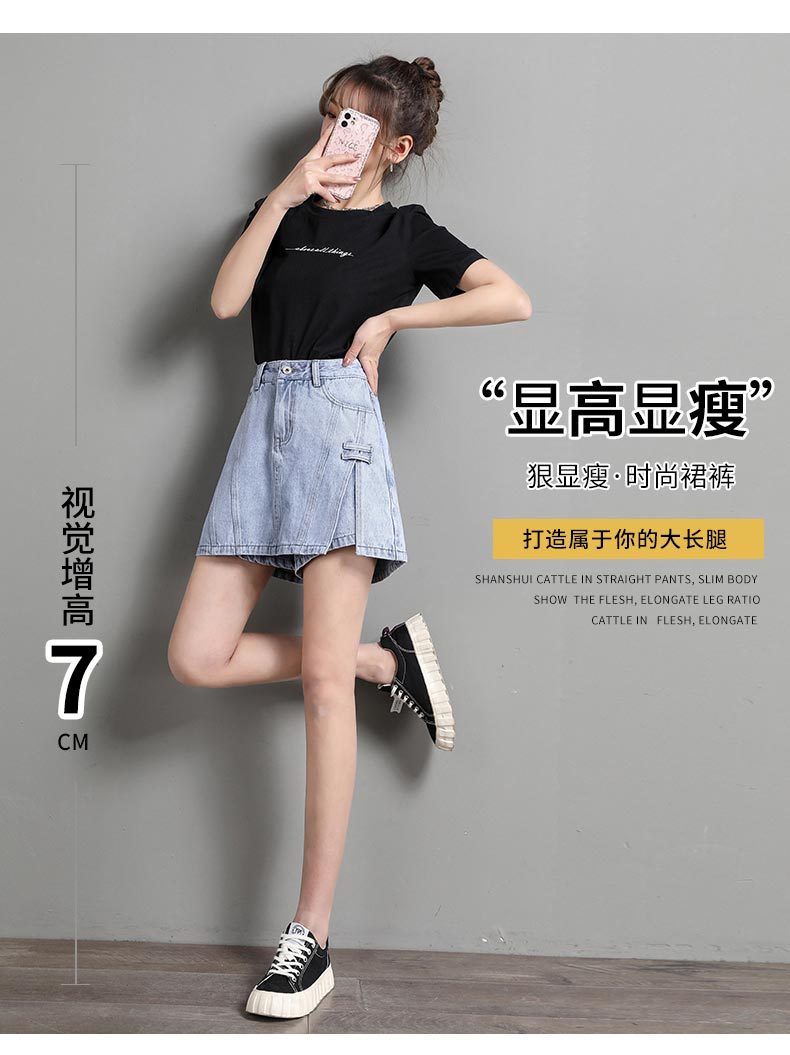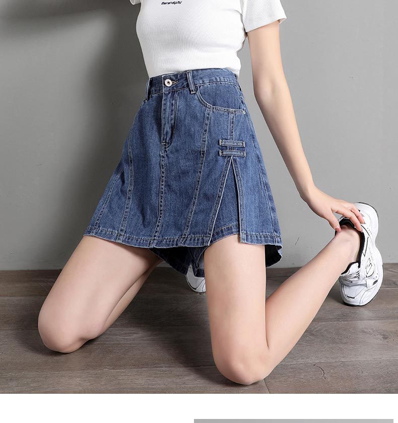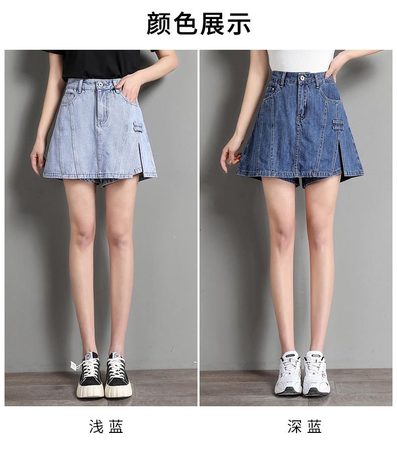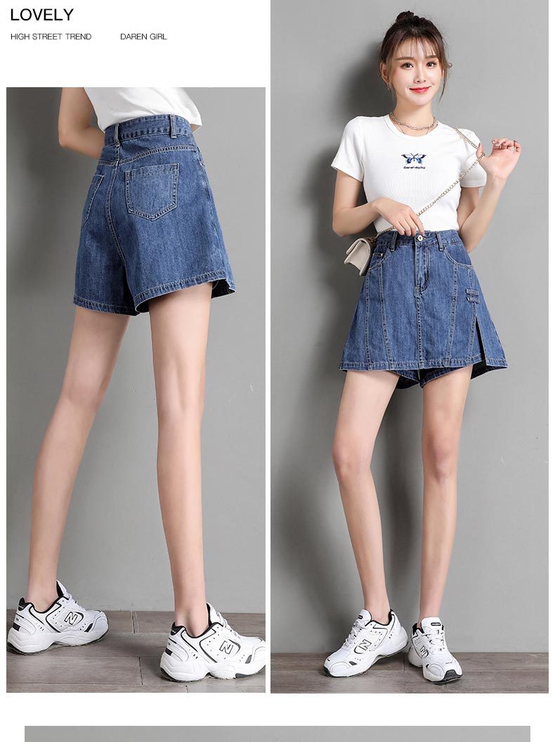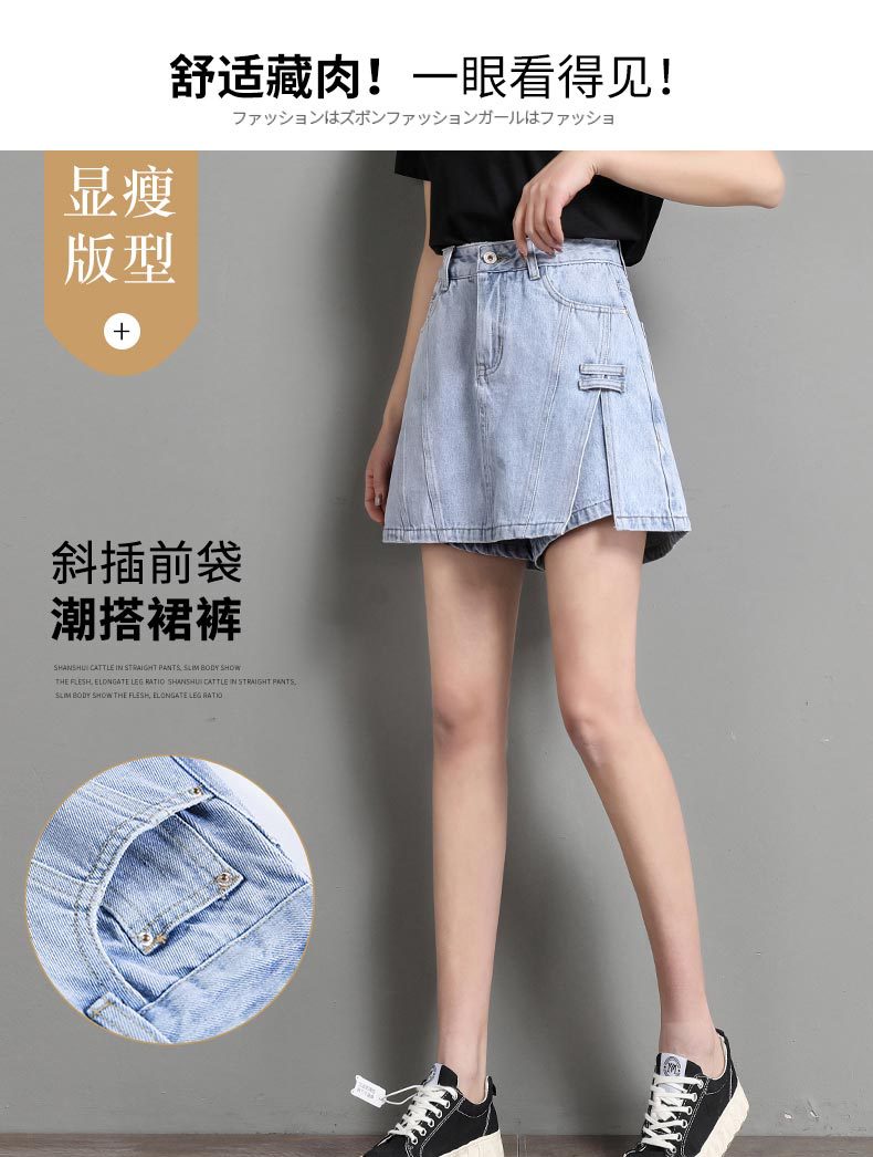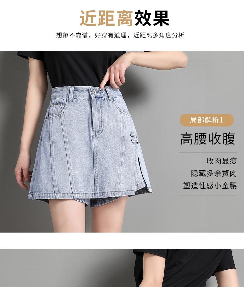 여성용 여름 슬릿 데님 반바지, 하이웨이스트 슬리밍 A라인 팬츠 스커트, 힙 커버, 작은 사이즈, 페이크 투피스 와이드 레그 스커트스토어 가기