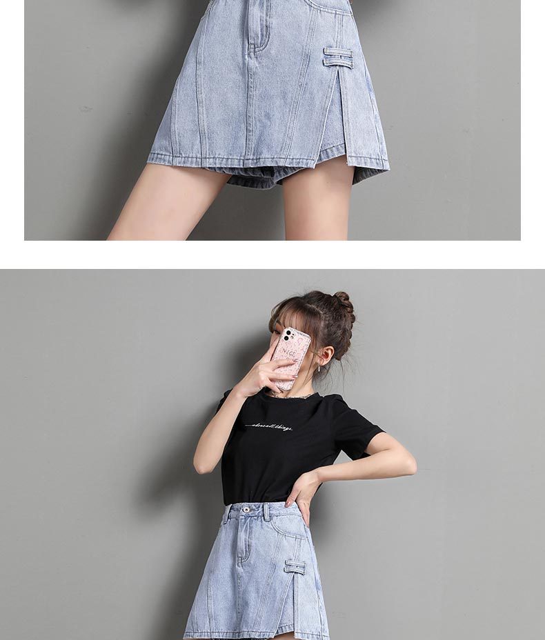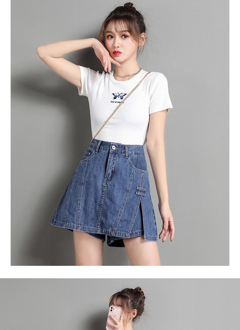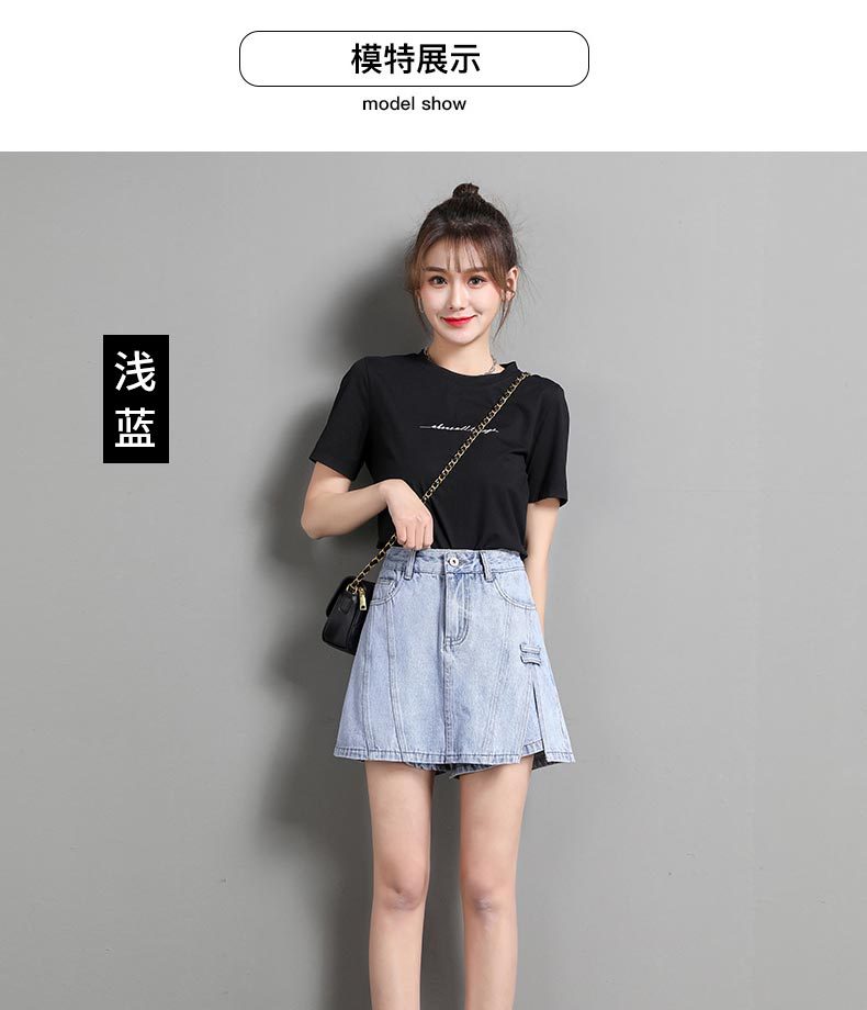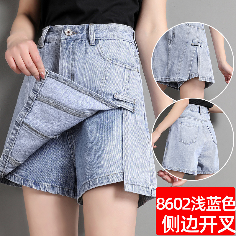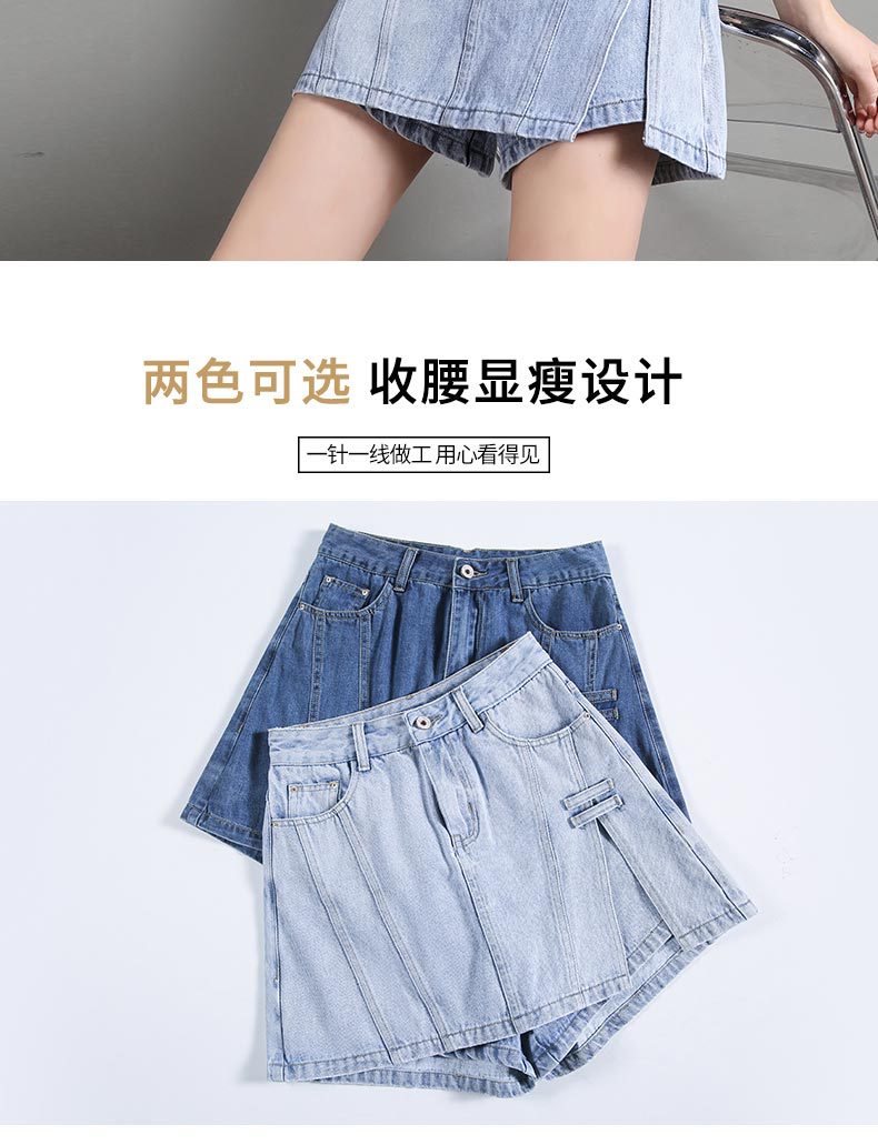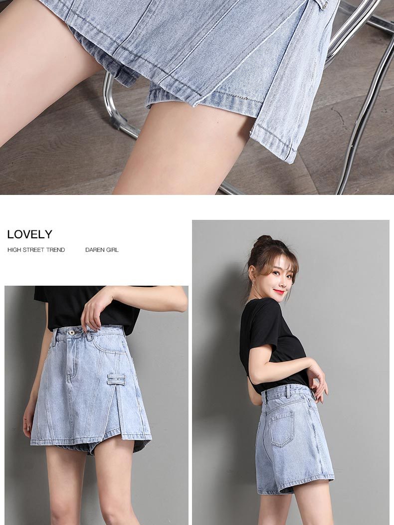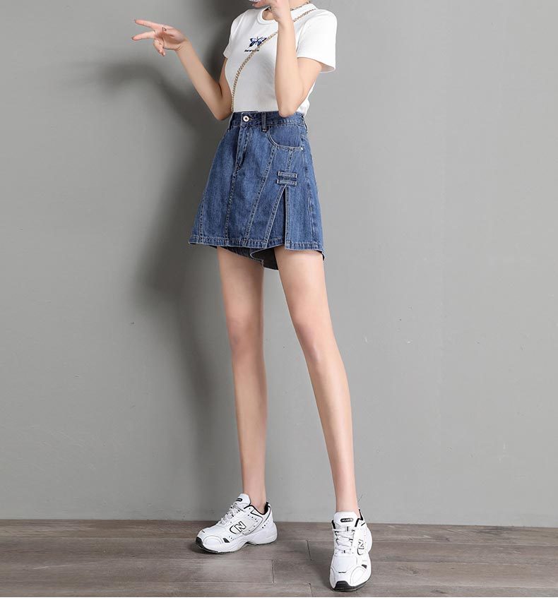 여성용 여름 슬릿 데님 반바지, 하이웨이스트 슬리밍 A라인 팬츠 스커트, 힙 커버, 작은 사이즈, 페이크 투피스 와이드 레그 스커트스토어 가기