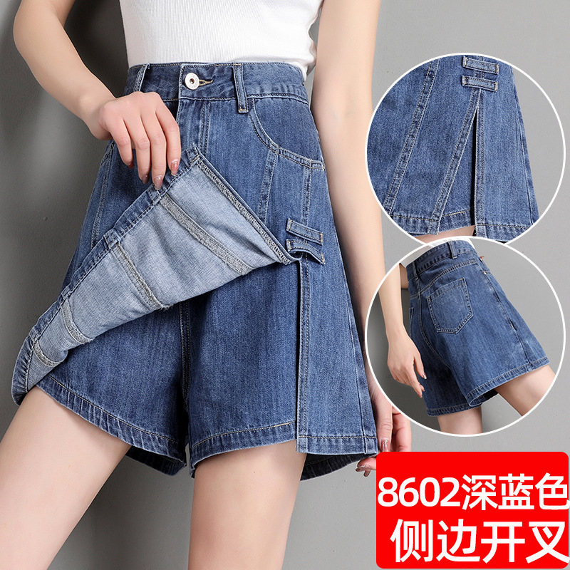여성용 여름 슬릿 데님 반바지, 하이웨이스트 슬리밍 A라인 팬츠 스커트, 힙 커버, 작은 사이즈, 페이크 투피스 와이드 레그 스커트