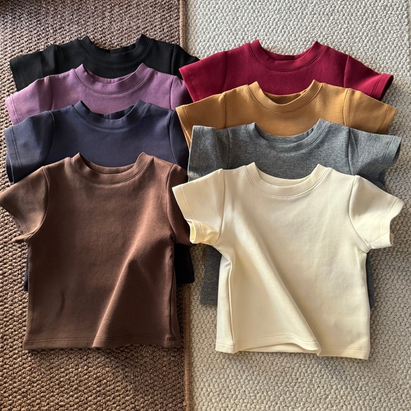 6 색 여아용 셔츠 2025 여름 어린이 캐주얼 다목적 코튼 짧은 슬림 반팔 이너 반팔 티셔츠스토어 가기