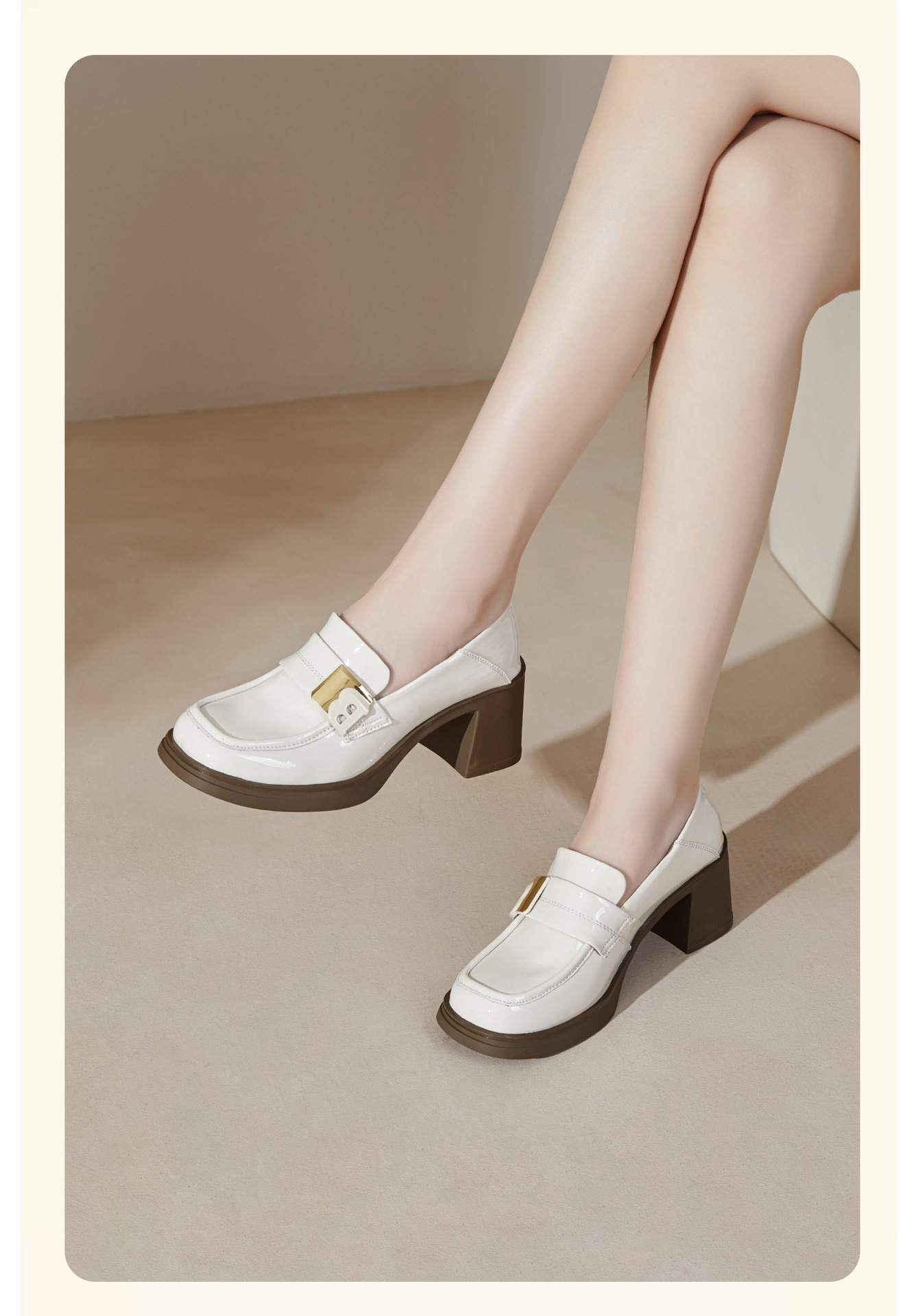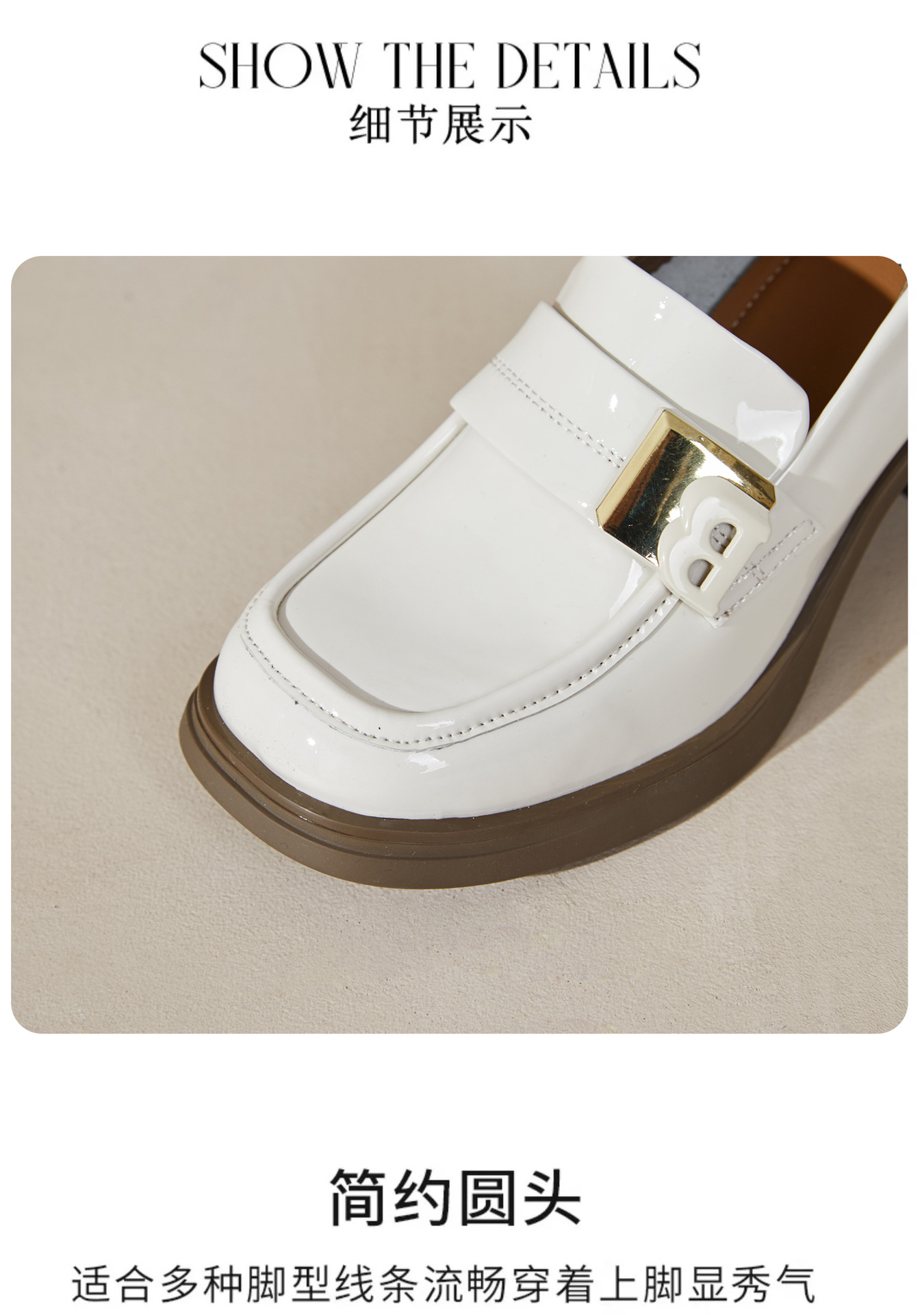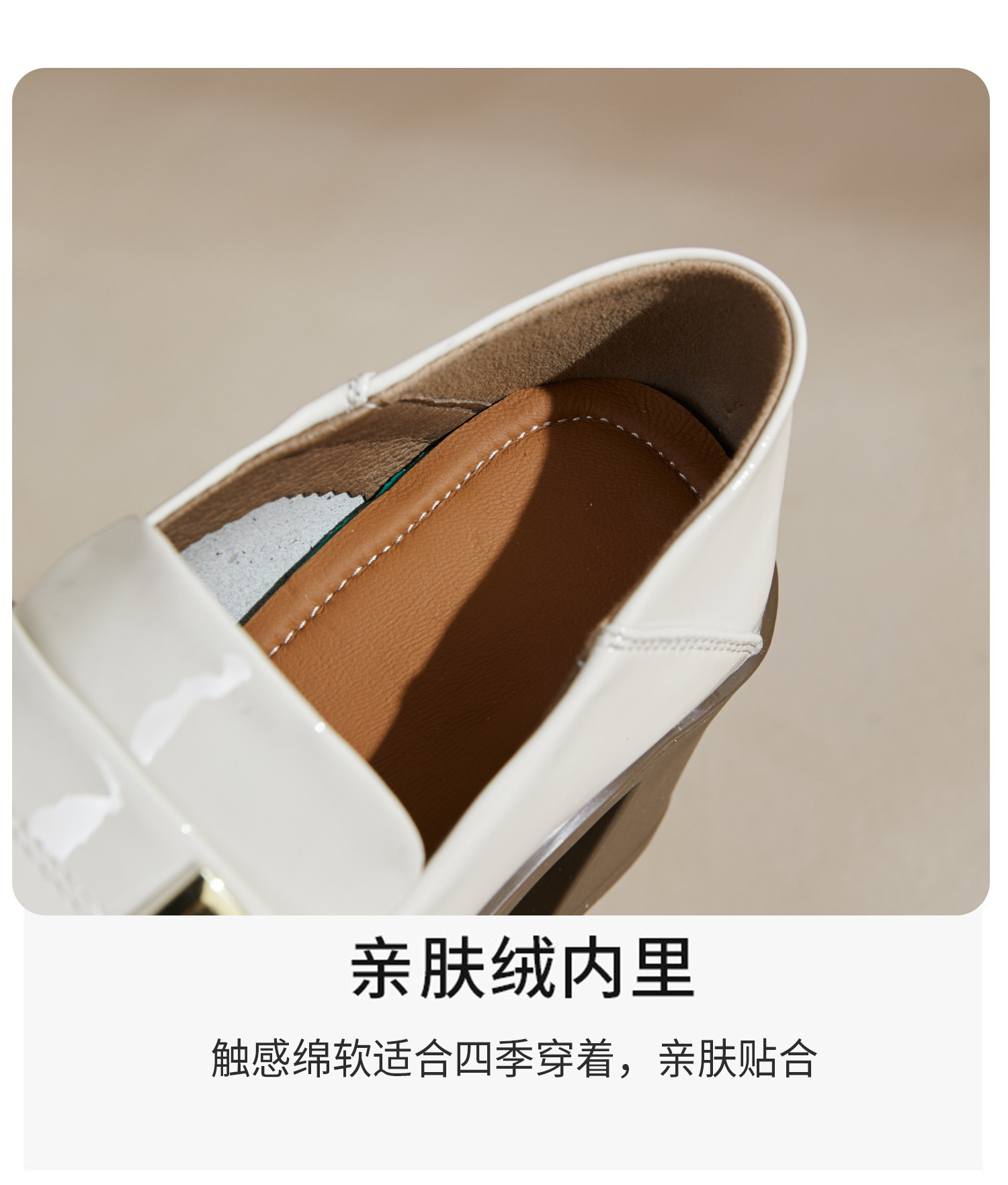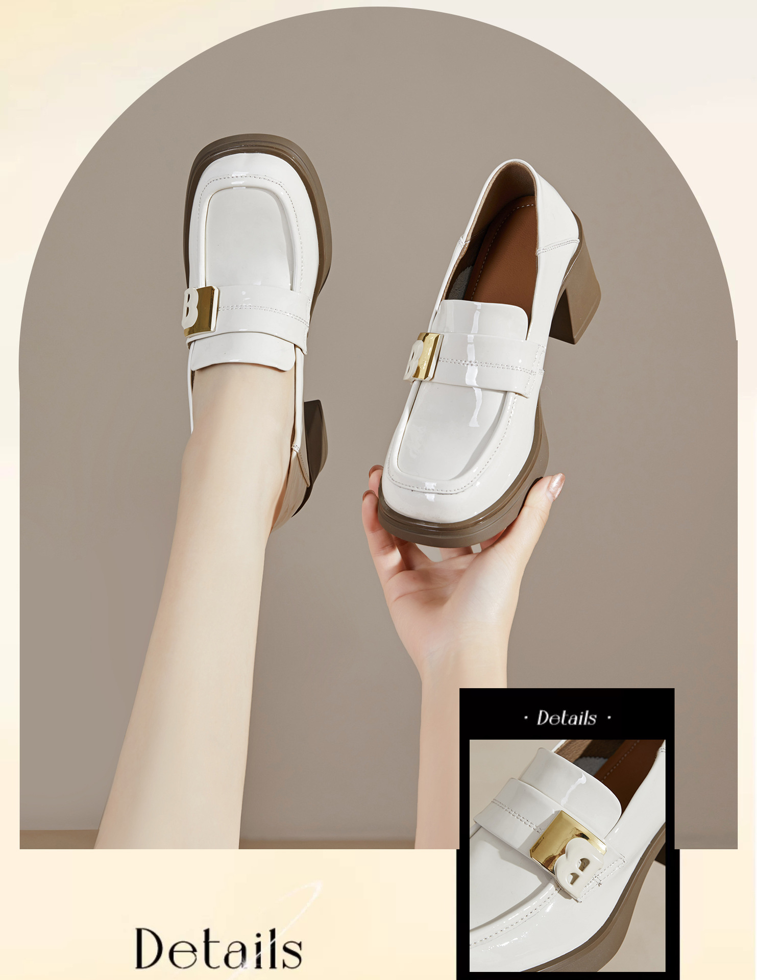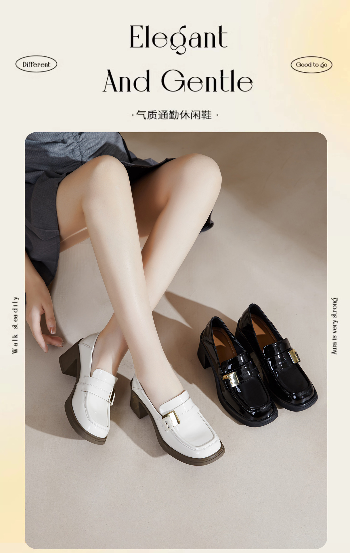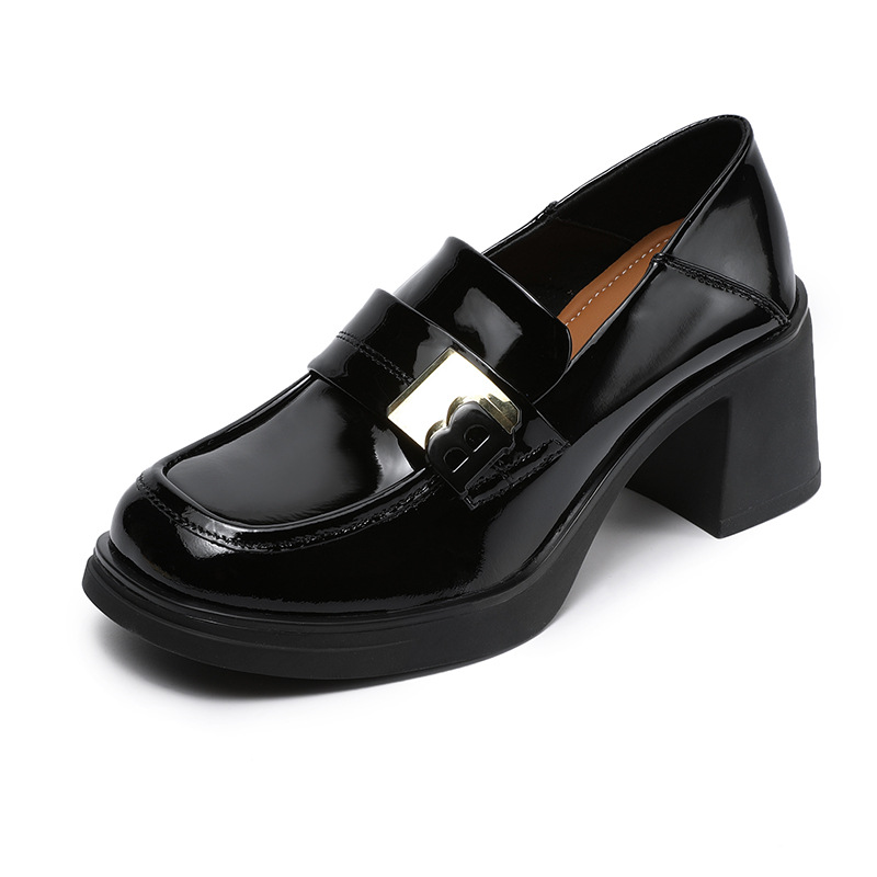 봄 2025 새로운 특허 가죽 굵은 뒤꿈치 여성 스퀘어 헤드 원 페달 가죽 로퍼 영국식 가죽 신발스토어 가기