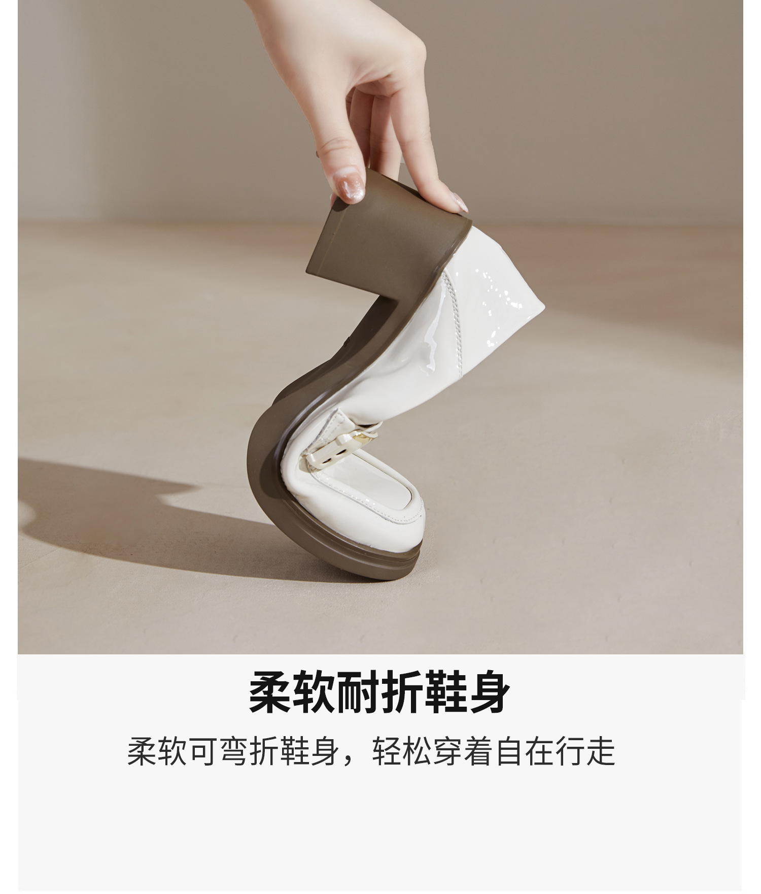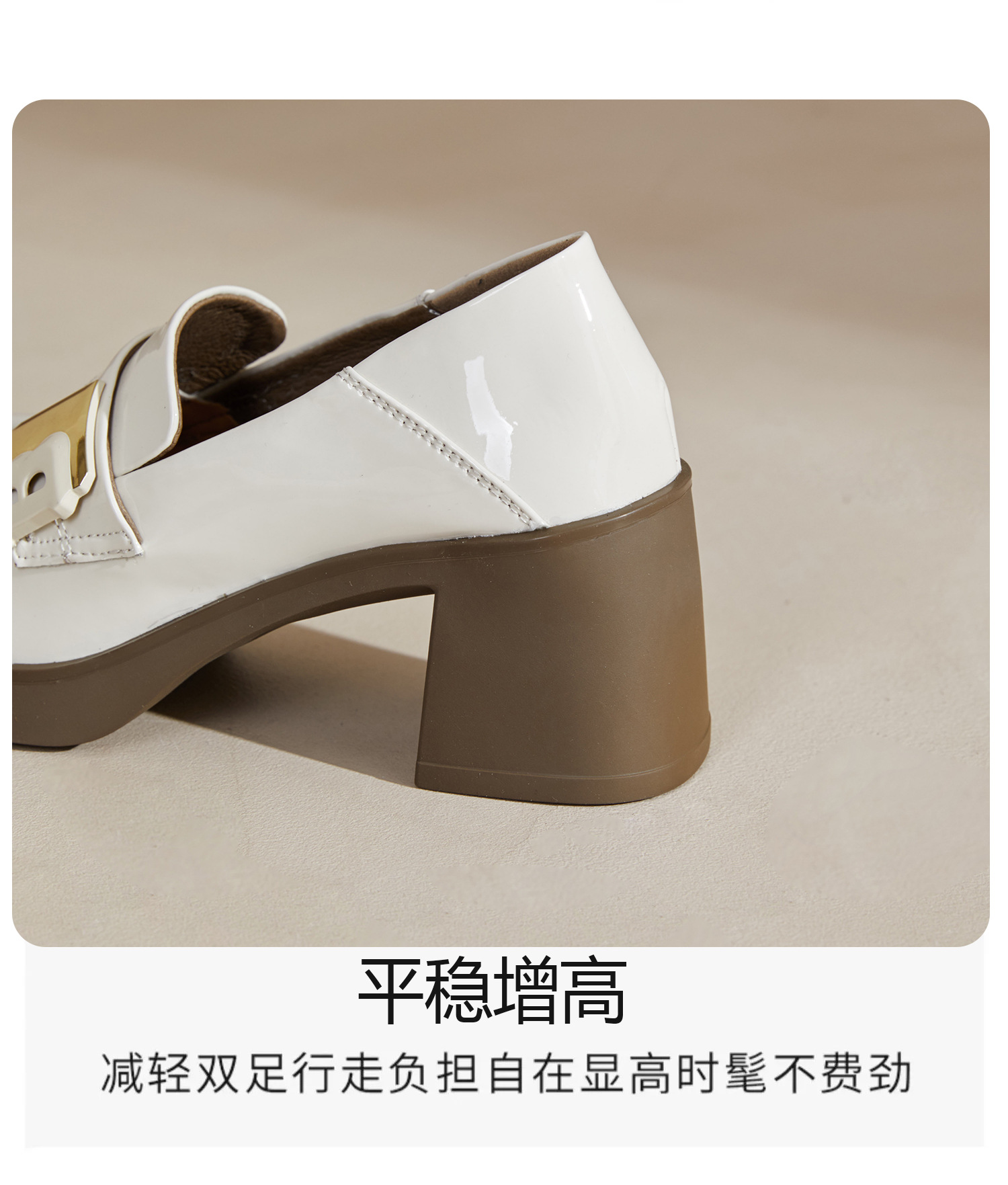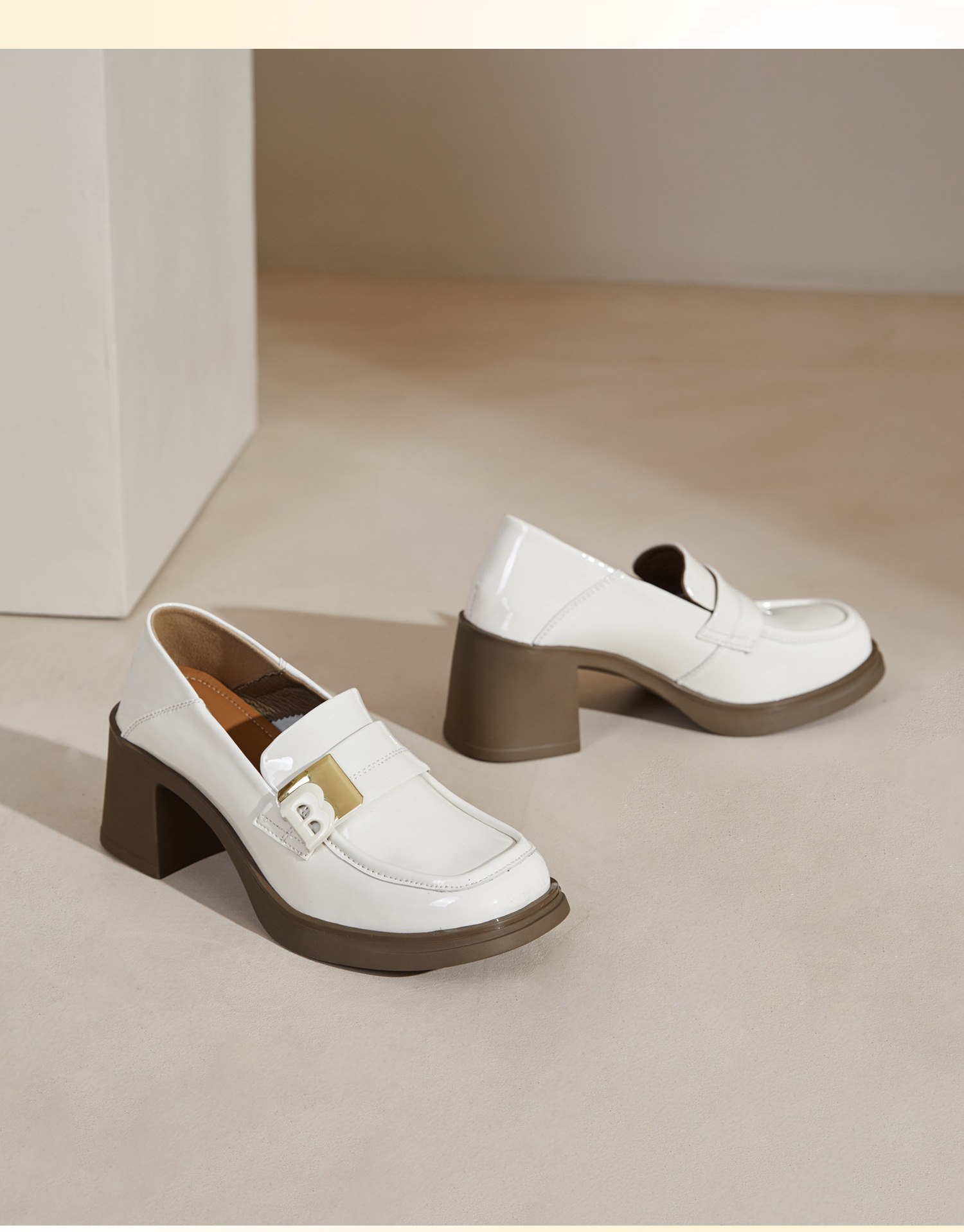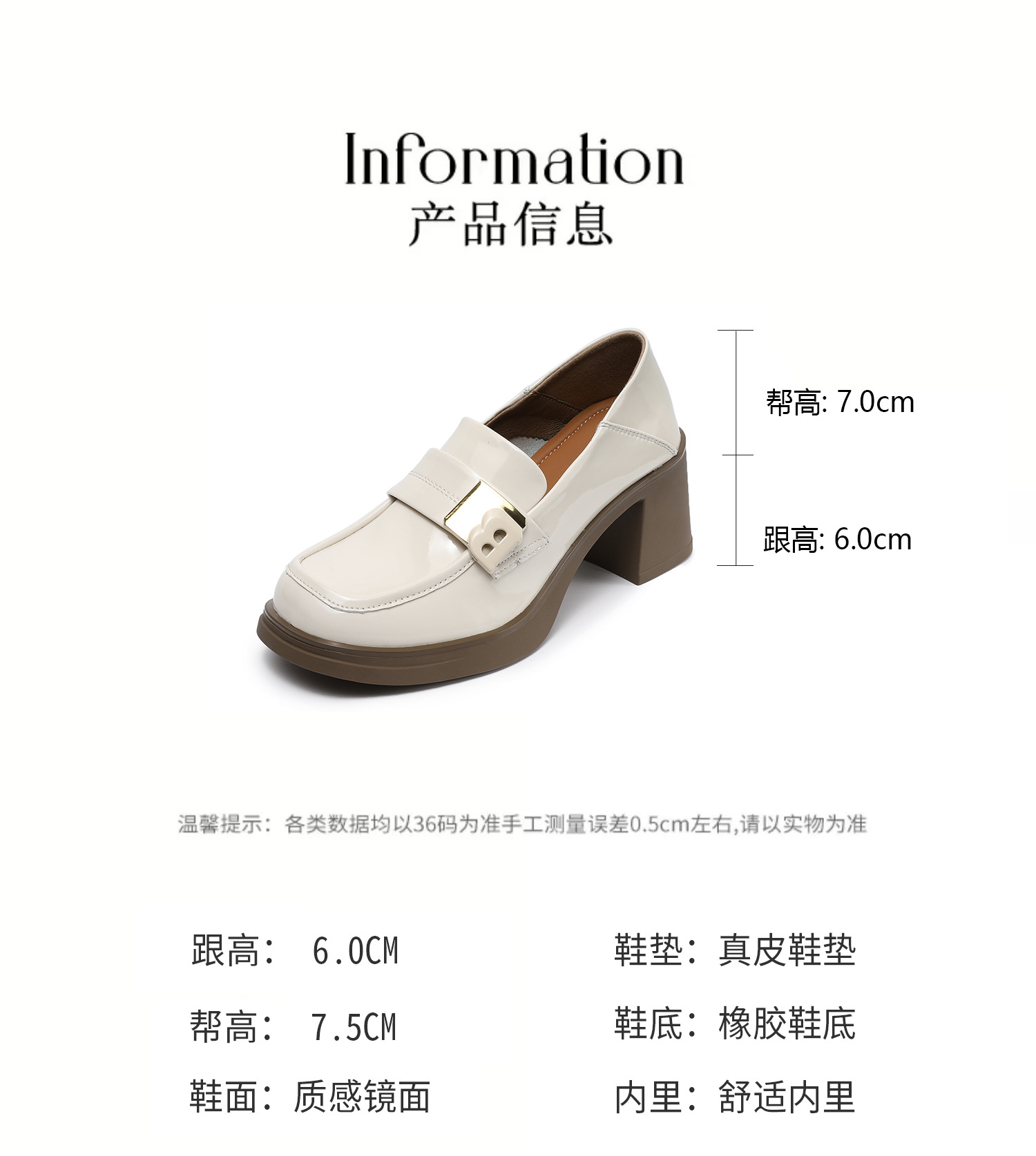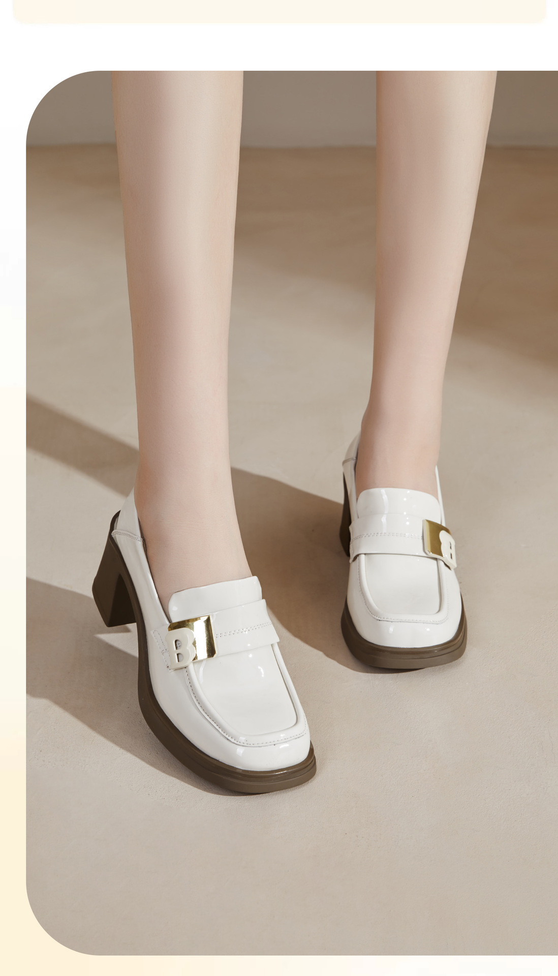 봄 2025 새로운 특허 가죽 굵은 뒤꿈치 여성 스퀘어 헤드 원 페달 가죽 로퍼 영국식 가죽 신발스토어 가기
