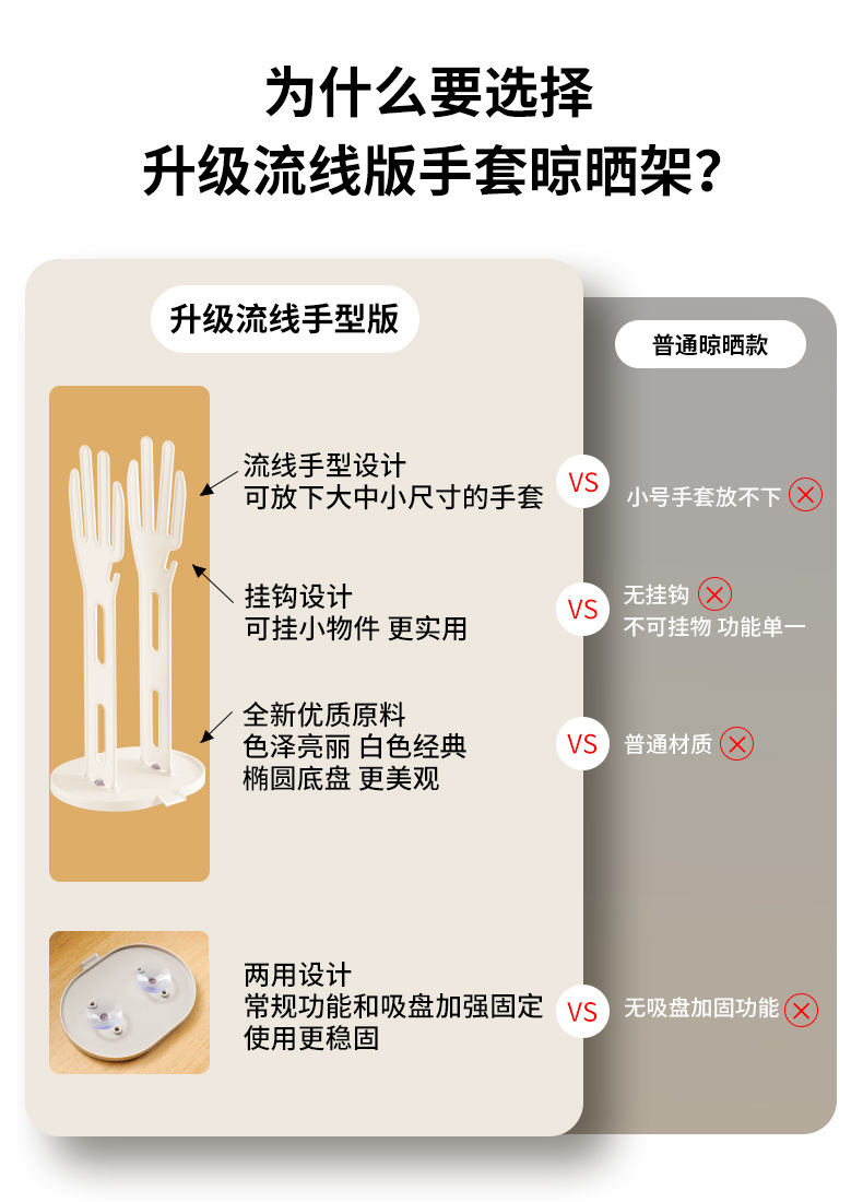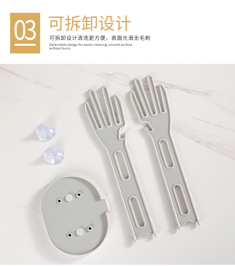 • 商品名称:流线手型带挂钩可拆卸置物架双吸盘抹布手套晾干沥水架