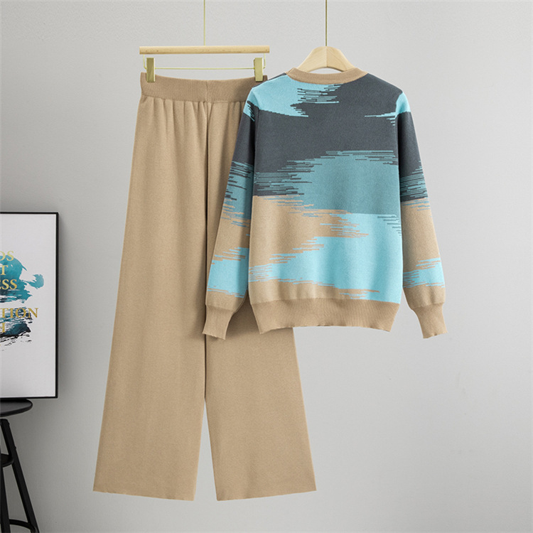 국경 2025 가을과 겨울 새로운 컬러 매칭 스웨터 바지 여성 세트 플러스 사이즈 슬리밍 우아한 캐주얼 니트 투피스 세트스토어 가기