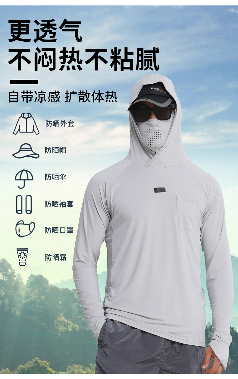长袖网眼男士防晒衣 2024新款防紫外线耐磨钓鱼纯色快干防晒服