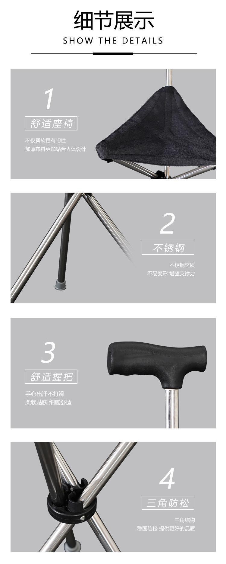 노인을위한 여행 지팡이 접이식 의자 휴대용 목발 의자 미끄럼 방지 경량 다기능 하이킹 스틱
