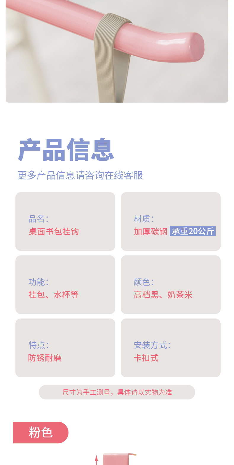 Schoolbag Hook 새로운 학생 데스크 사이드 후크 오피스 옷걸이 데스크탑 내구성 하중 베어링 유니버설 펀칭