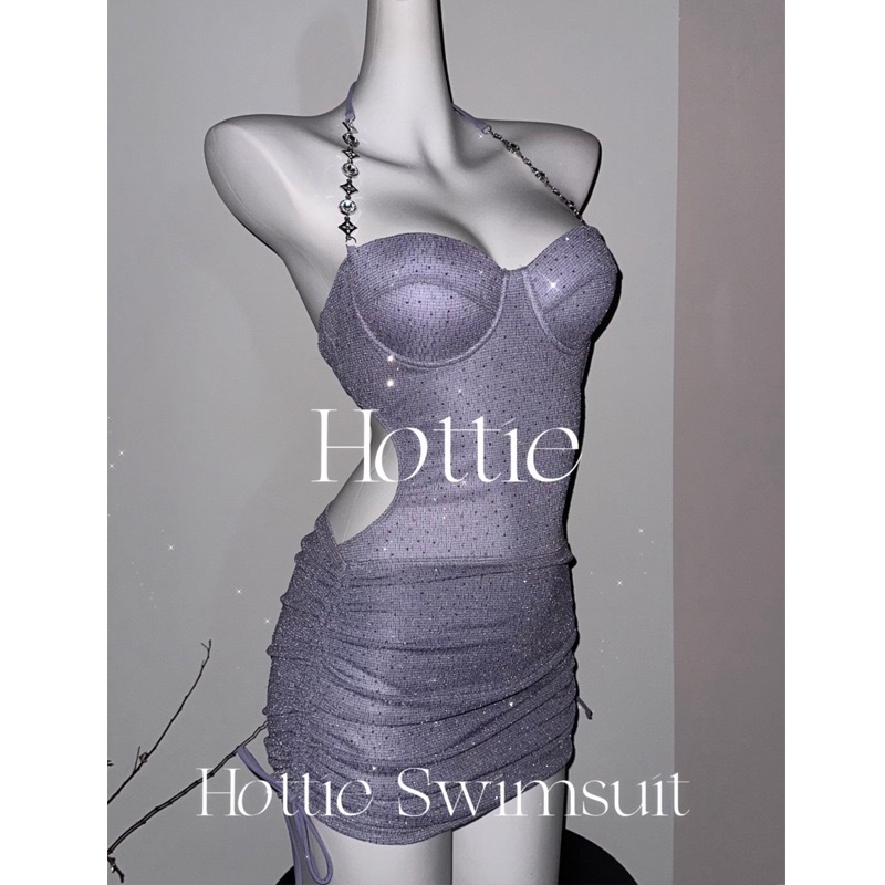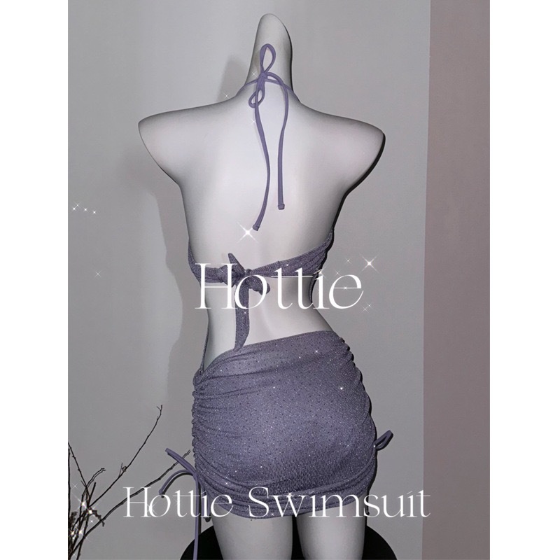 반짝이는 라인스톤 하이엔드 원피스 수영복 투피스 힙 커버 스커트 언더와이어 푸쉬업 섹시 백리스 수영복 4167